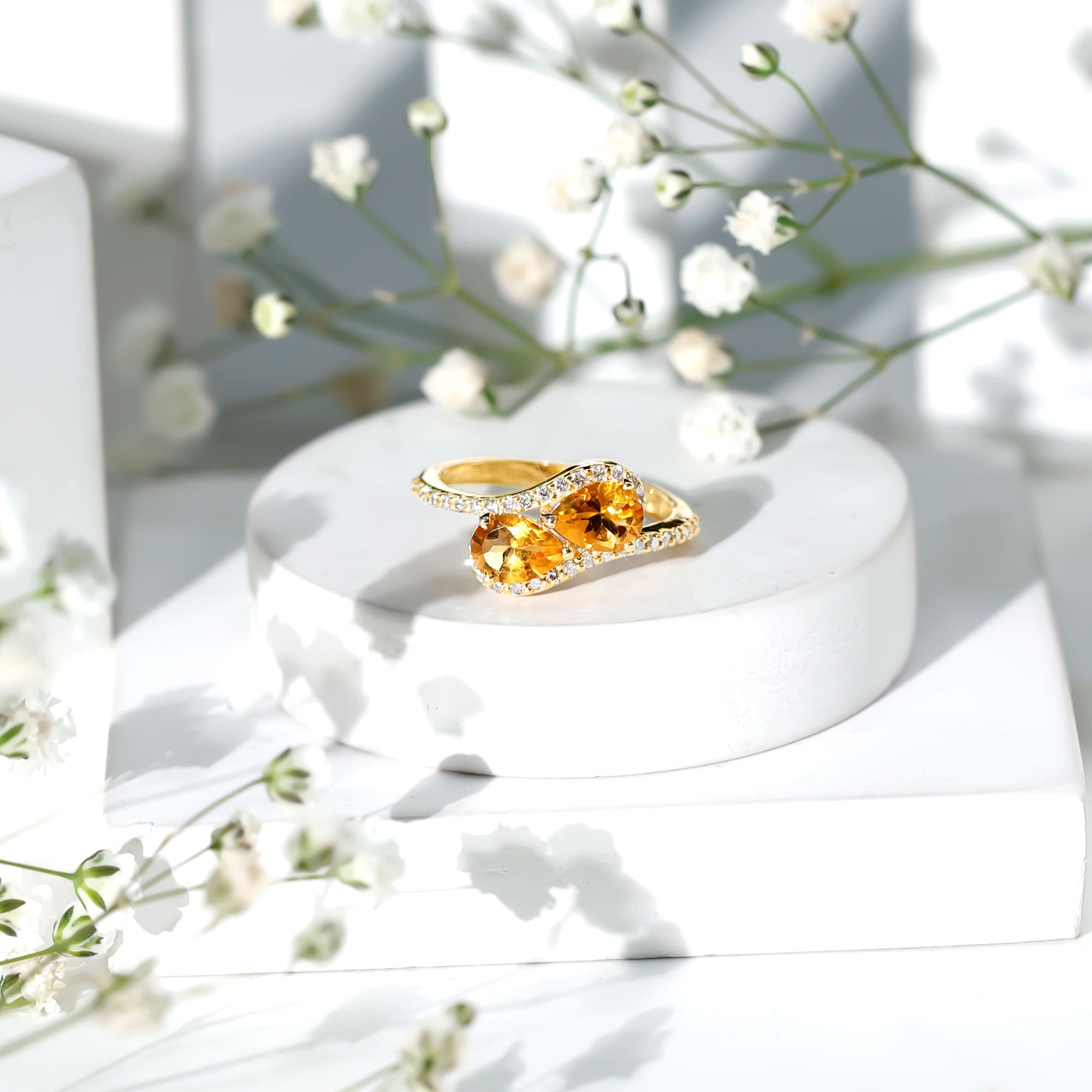 Elevate your elegance with this exquisite Two Stone Engagement Ring, adorned with a Pear Cut Citrine securely set in a Prong Setting, accompanied by Diamond on the Bypass Shank. This Vintage Inspired Ring is expertly crafted with Gold to add a touch of sophistication to your look. Surprise your loved one with this breathtaking Vintage Inspired Two Stone Ring.
