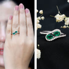 Elevate your elegance with this exquisite Two Stone Engagement Ring, adorned with a Pear Cut Created Emerald securely set in a Prong Setting, accompanied by Diamond on the Bypass Shank. This Vintage Inspired Ring is expertly crafted with various metal types to add a touch of sophistication to your look. Surprise your loved one with this breathtaking Vintage Inspired Two Stone Ring.
