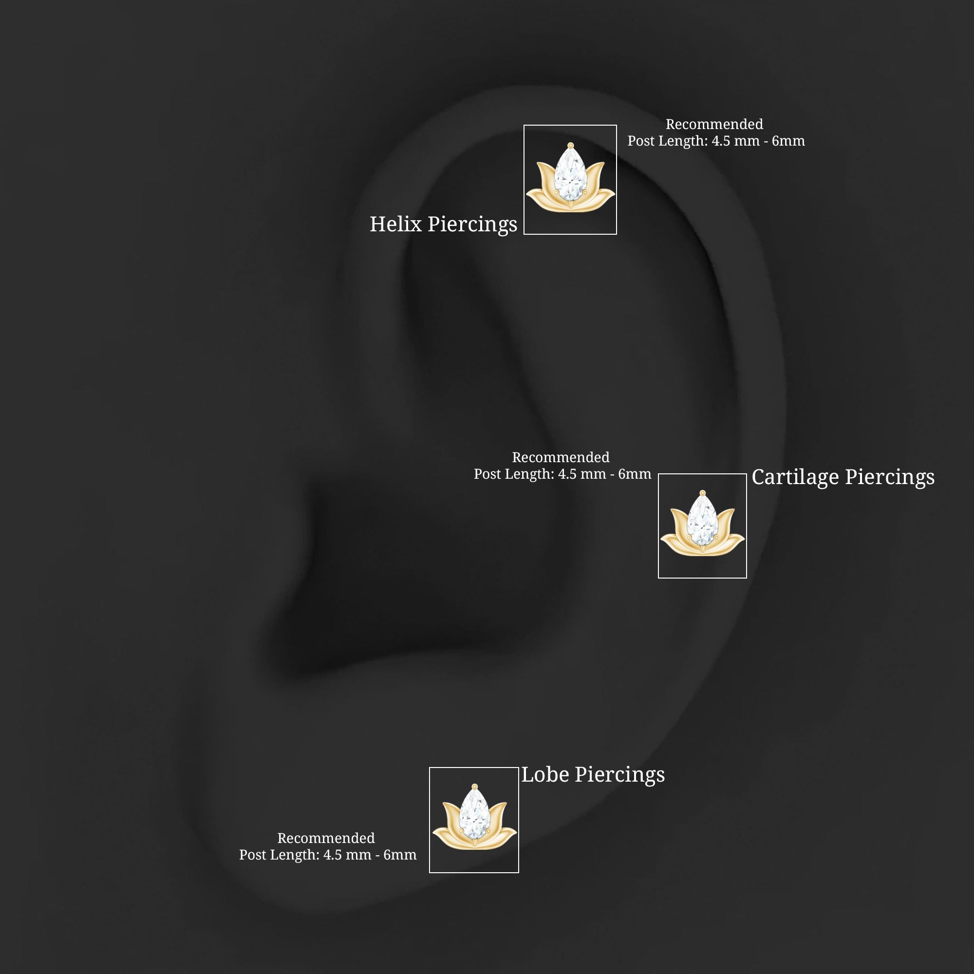 You’ve been missing out on, this statement-maker Diamond Lotus Earring shines all on its own. This Floral Earring showcases a Pear Shape Diamond studded in 3 Prong Setting on a floral design, composed of Solid Metal. Whether worn alone or with others, this Piercing Earring is made to be noticed. This Diamond Earring is perfect for Conch, Cartilage, Helix, or Upper Lobe Piercings, and adds a touch of sophistication to any outfit. Are you ready to step up your style? This Lotus Earring can be paired with any outfit, from a party dress to a casual look, and you are sure to make a stunning look.