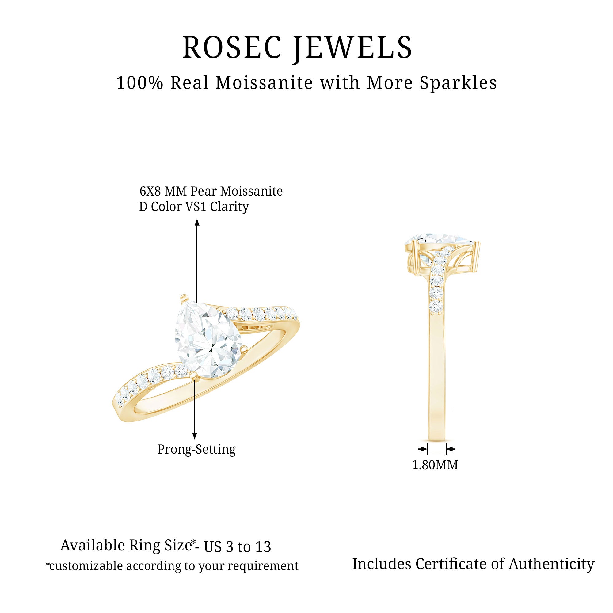 Pear Shape Moissanite Solitaire Bypass Engagement Ring