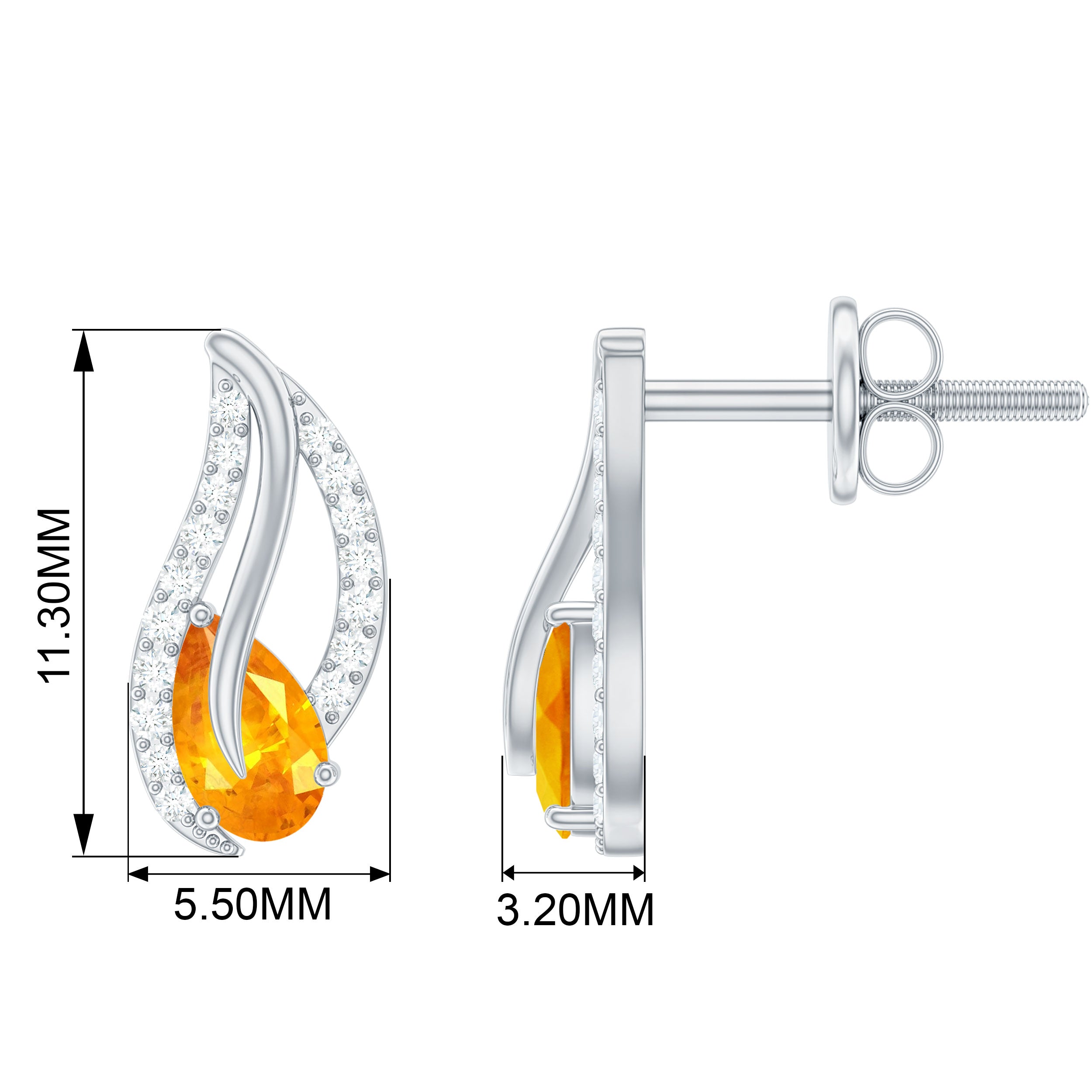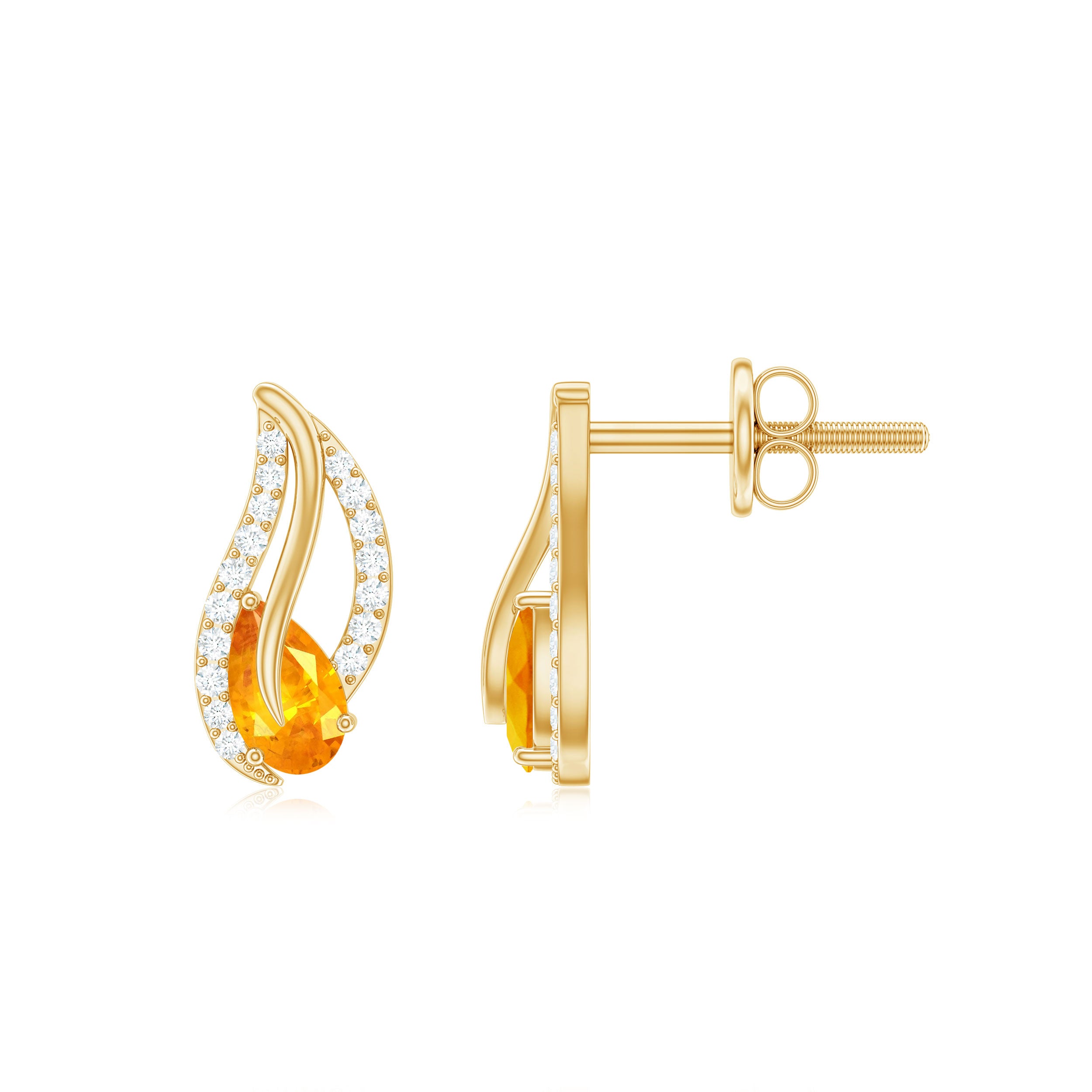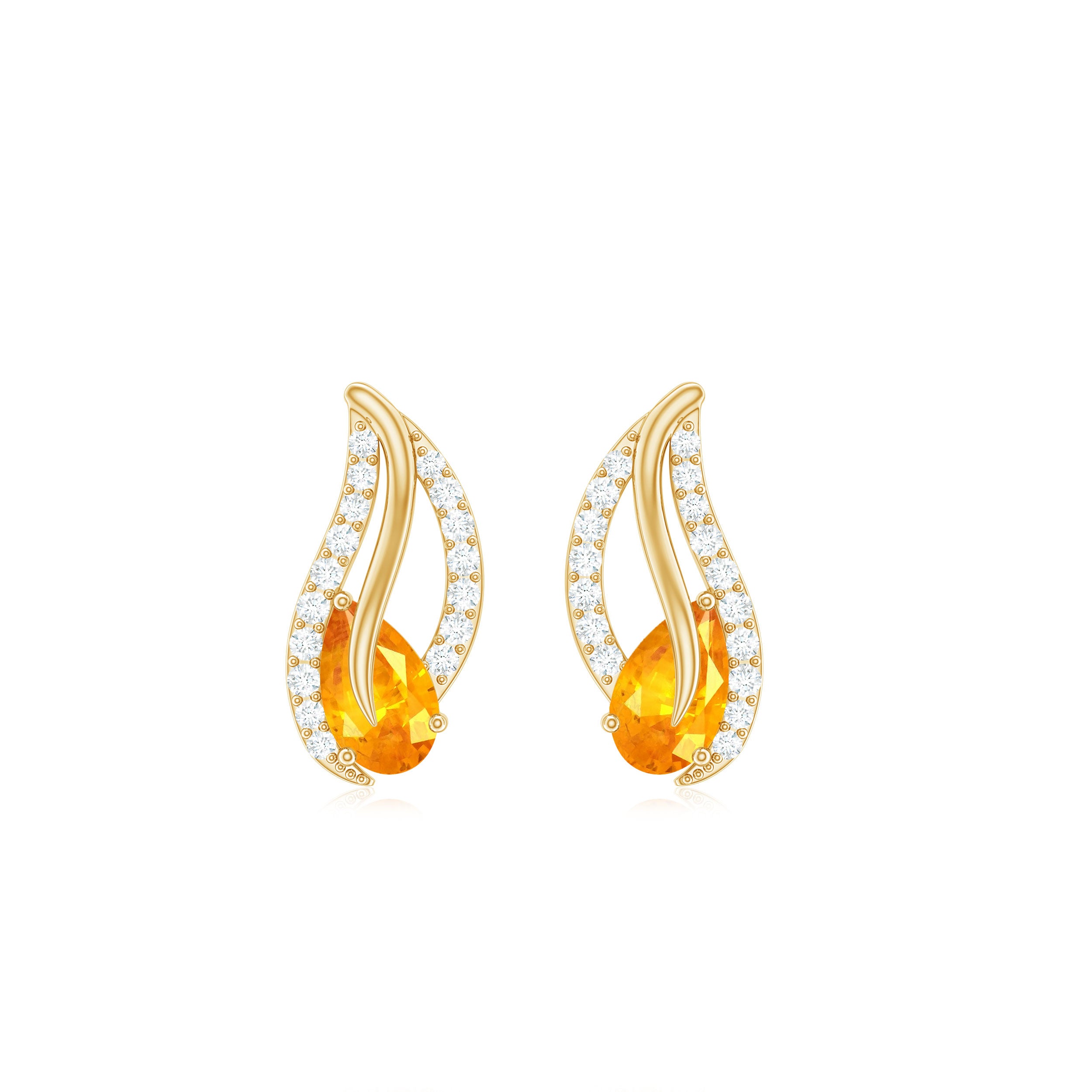 Pear Shape Orange Sapphire and Diamond Leaf Stud Earrings