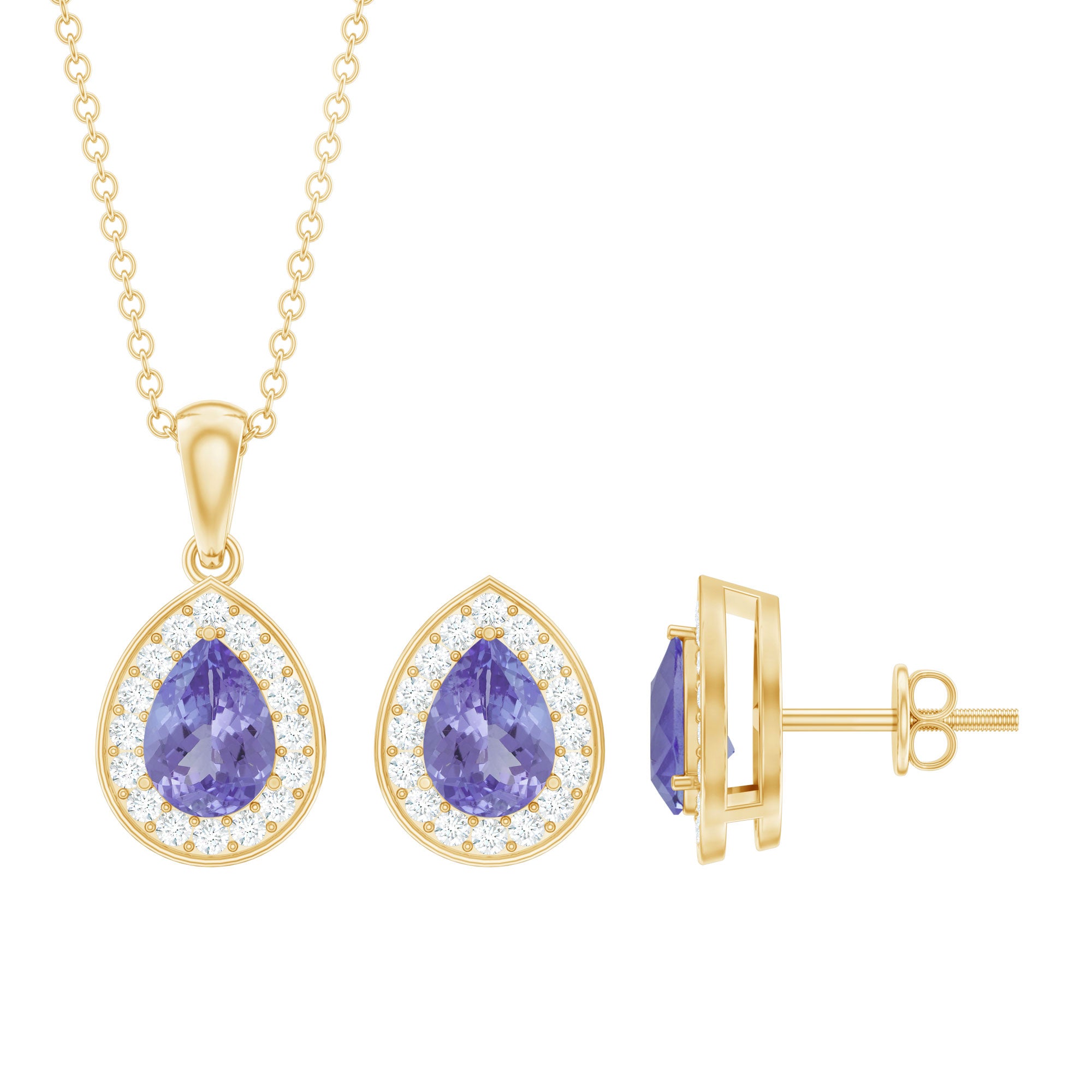 Pear Shape Tanzanite Teardrop Jewelry Set with Moissanite