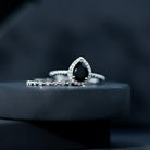Pear Shaped Black Onyx and Diamond Halo Bridal Ring Set With Certificate