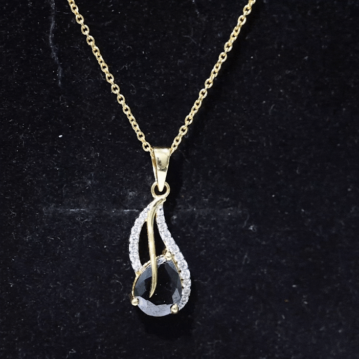 Add a touch of elegance to your everyday look with this beautiful Leaf Pendant Necklace, crafted from Gold and adorned with a shimmering Pear Cut Black Onyx as the Solitaire, accented by Diamond gems. This charming piece of jewelry is the perfect accessory to elevate any outfit and is sure to make you feel stylish and sophisticated.