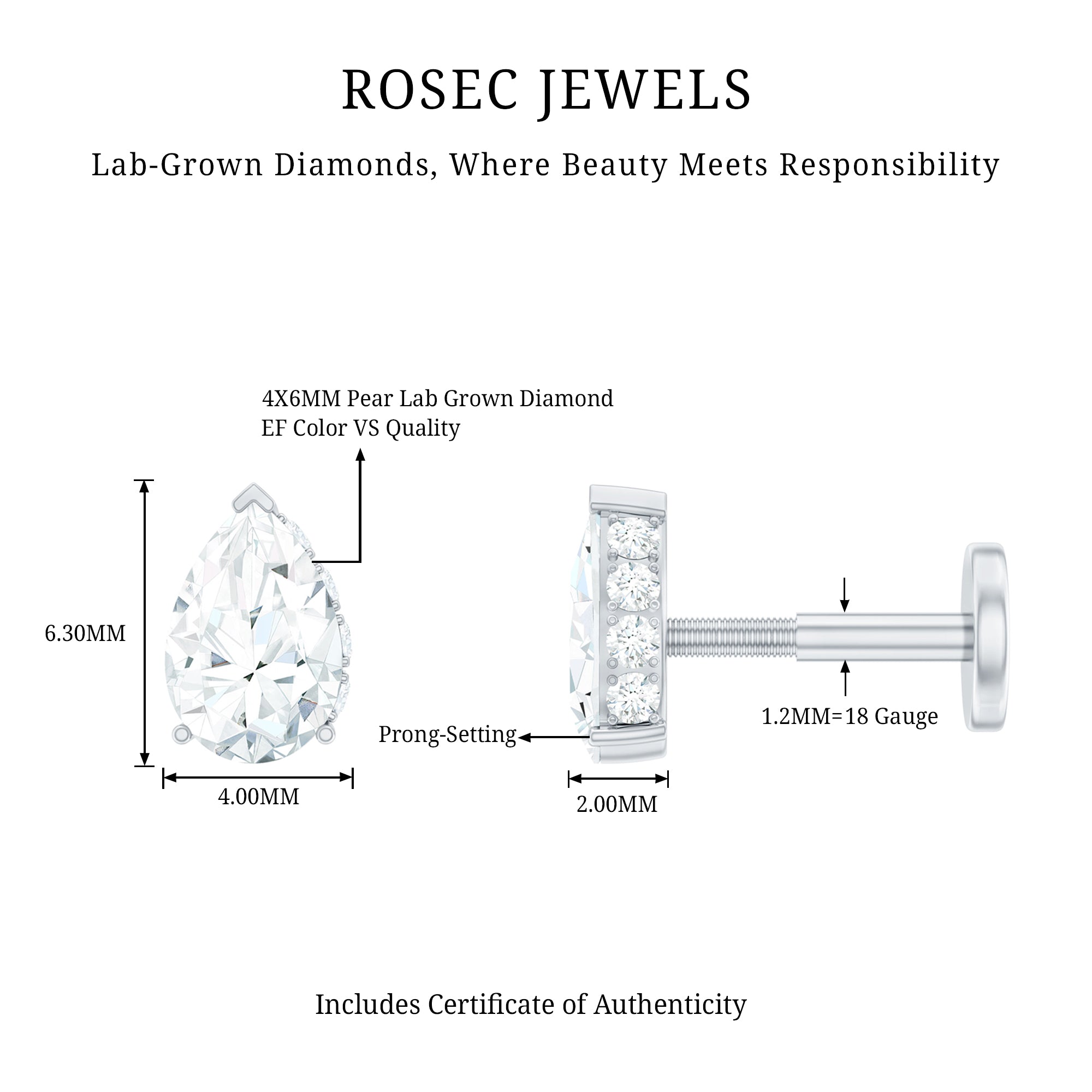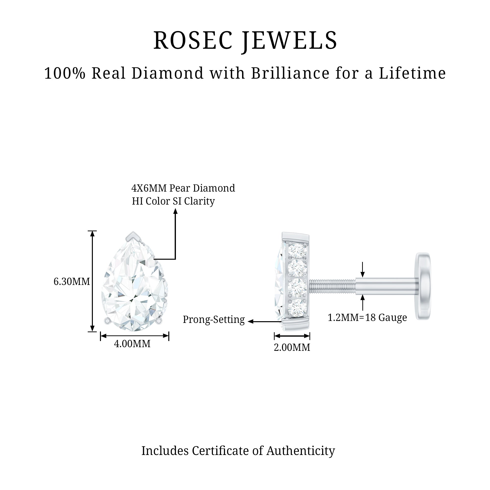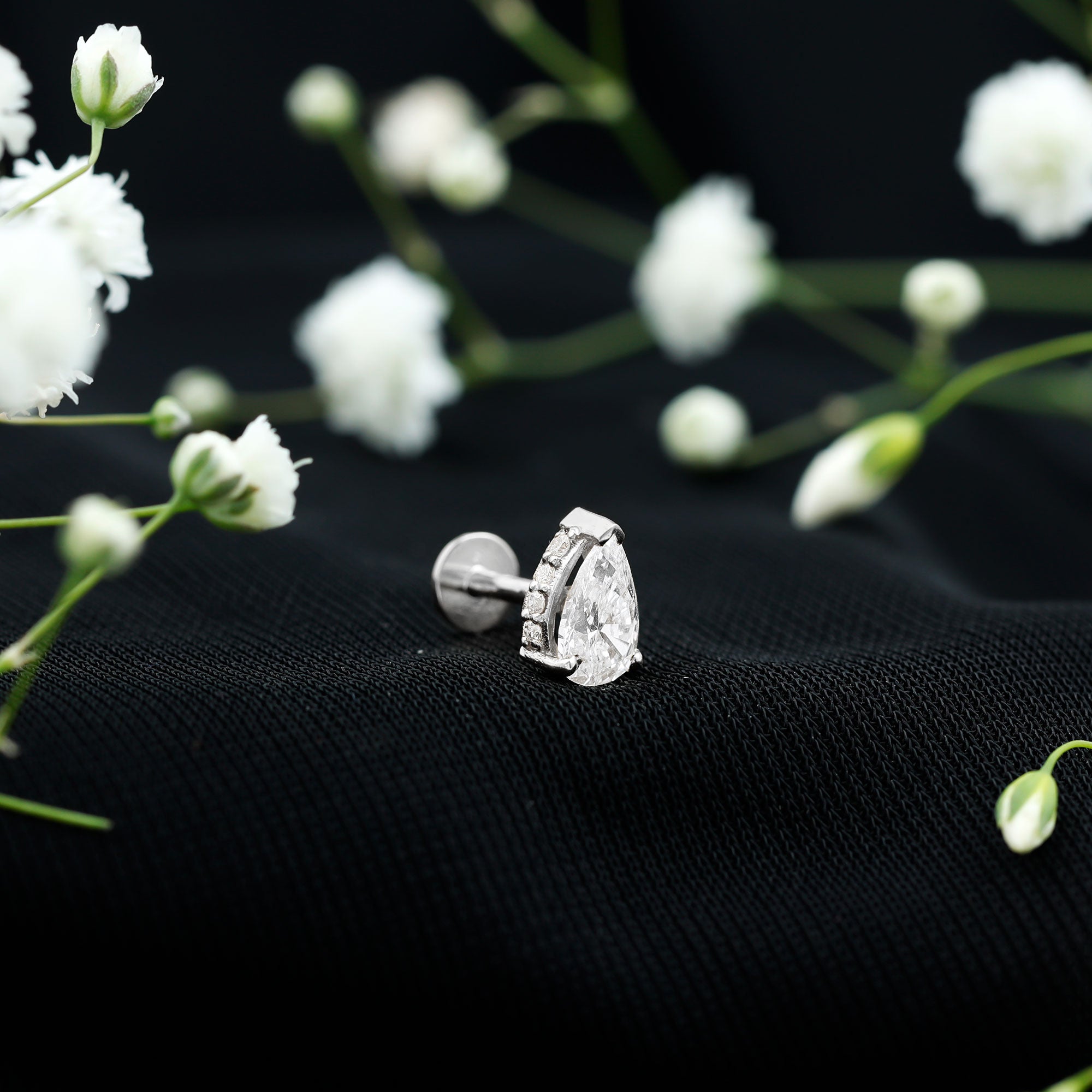 This sparkly Diamond Solitaire Tragus Earring is perfect to elevate your ear stack with a pinch of sparkle. This ear piercing earring showcases 4X6 MM Pear Shape Diamonds secured by 3 Prong Setting, while dainty Round Diamonds are embellished on the half side of the setting. You can wear this Pear Diamond Earring on your Helix, Cartilage, Tragus, Conch, or Upper Lobe Piercings. With a flat back closure, this piece will be intact in place. Gift it to your special one as a birthday, anniversary, graduation, or bridesmaid gift and make their day extra special. Whether worn solo as a statement piece or paired with other earrings for a curated ear look, it seamlessly fits both minimalistic and bold styles. A tribute to the elegance of minimalist jewelry, accentuated by the timeless sparkle of HI-SI quality diamonds. This Solitaire Cartilage Earring comes beautifully packaged, ready to celebrate one of life’s most unforgettable moments. With various metal choices and finishes available, it can be tailored to showcase your unique style.