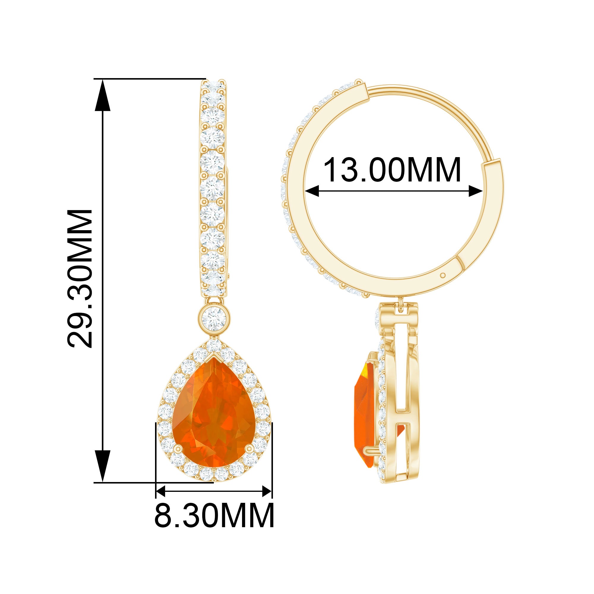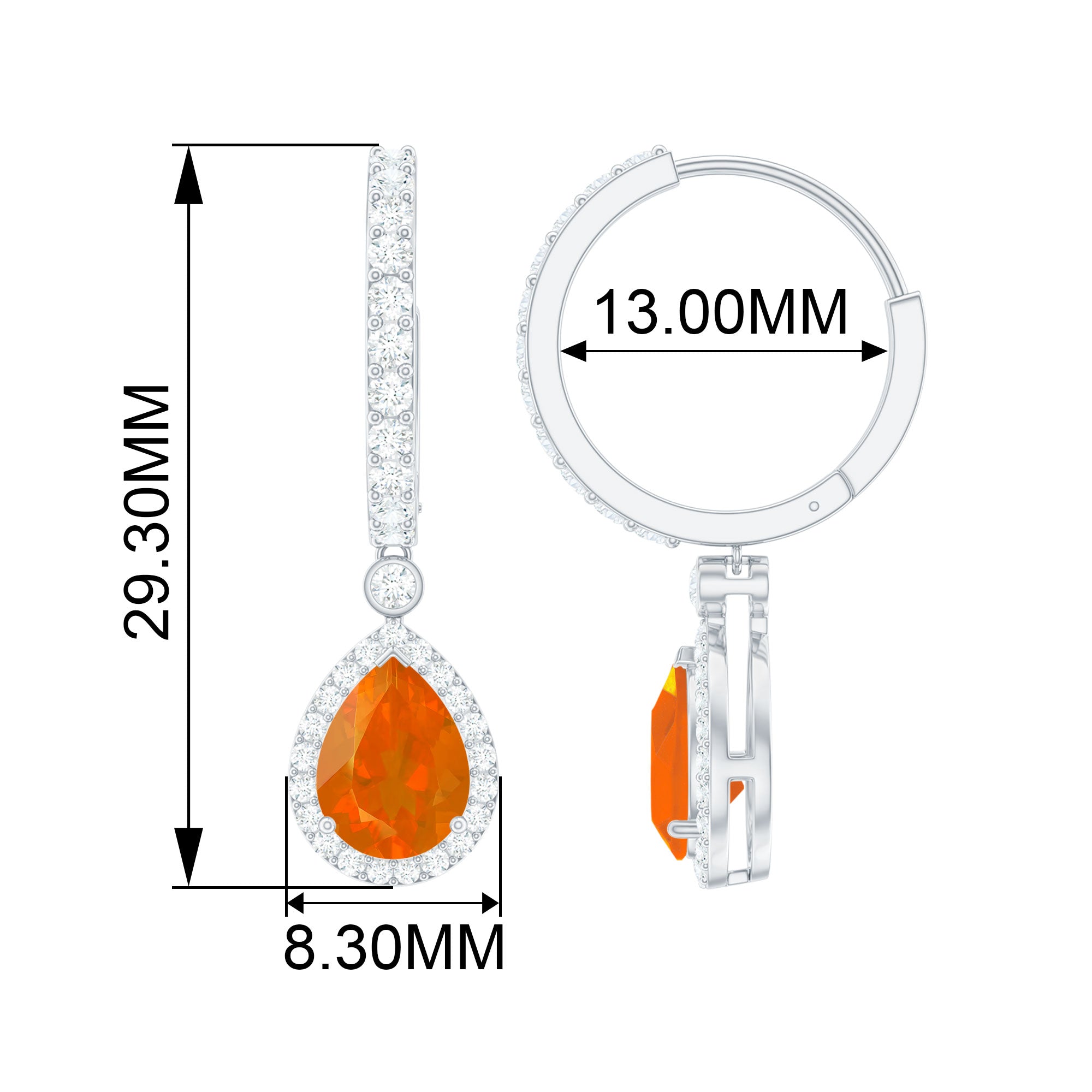 Pear Shaped Fire Opal Hoop Drop Earrings with Moissanite Halo