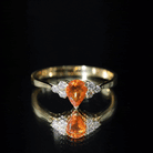 Shine elegantly with this stunning and glistening Teardrop Ring. The Pear Cut Fire Opal in Claw Setting with Diamond as Trio on Solitaire Ring.