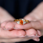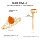 Pear Shaped Fire Opal Solitaire Ring with Diamond Trio