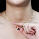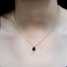 Add a bold yet elegant touch to your everyday look with this striking Black Diamond Pendant Necklace. Designed with simplicity in mind, this Teardrop Necklace features a stunning 7X9 MM pear shaped lab created black diamond. Set securely in prong setting, the gemstone catches light subtly, revealing its faceted beauty in every angle and movement. Handcrafted in 14K yellow gold plated silver, this Solitaire Pendant Necklace dangles gracefully from a strong cable chain that rests comfortably along the neckline. A cute rabbit ear bail adds a delicate detail to the design, enhancing the pendants sophisticated charm without overpowering its simplicity. The teardrop shape of the stone brings softness and grace to the bold black hue, creating a balance between strength and elegance. It offers a modern take on classic style, minimal yet full of personality. This Pear Shaped Pendant is ideal for those who appreciate understated luxury and love pieces that tell a story of quiet confidence and refined taste. Presented in a premium jewelry box and complete with a certificate of authenticity, this Womens Black Diamond Necklace makes a thoughtful gift for birthdays, anniversaries, or simply to celebrate your unique style.