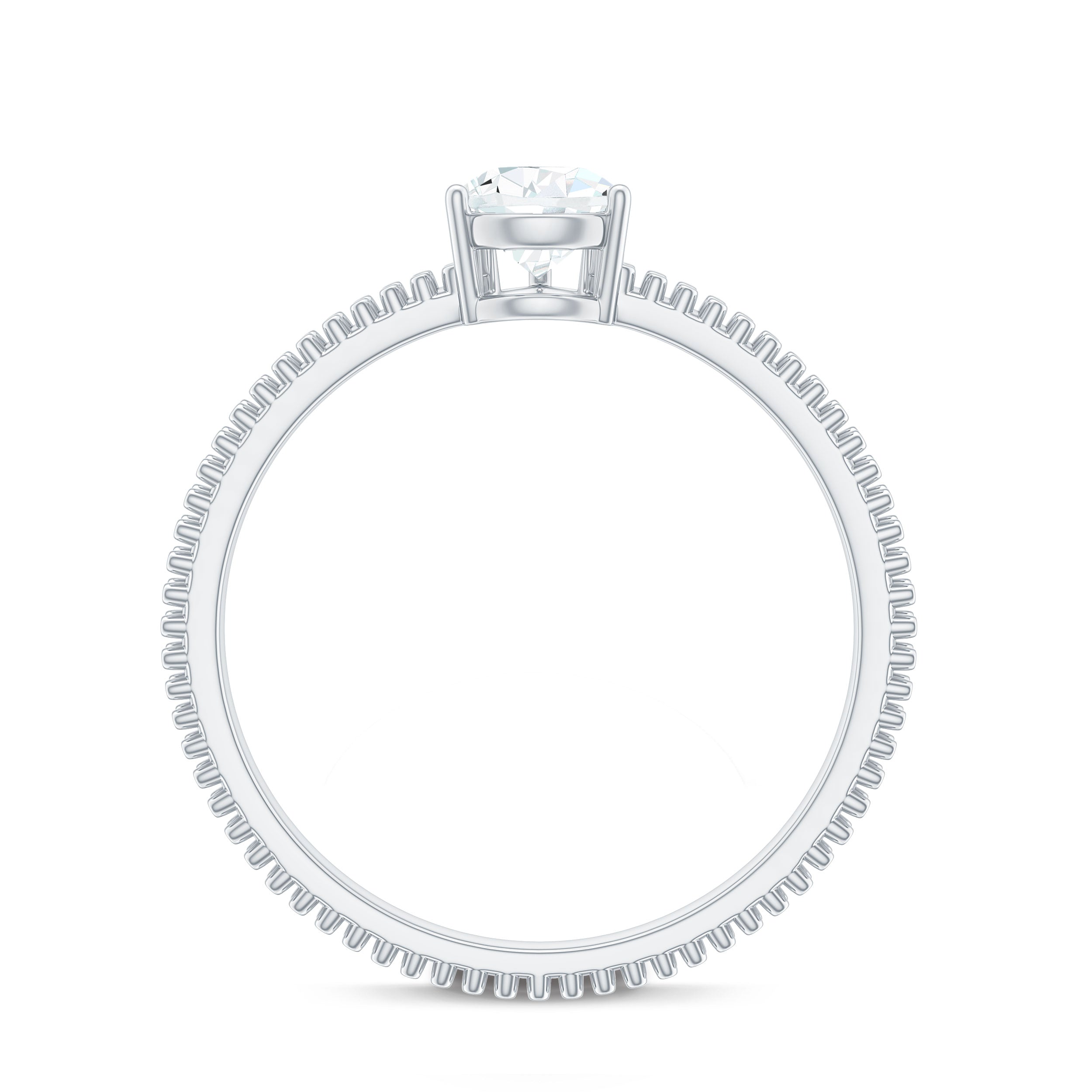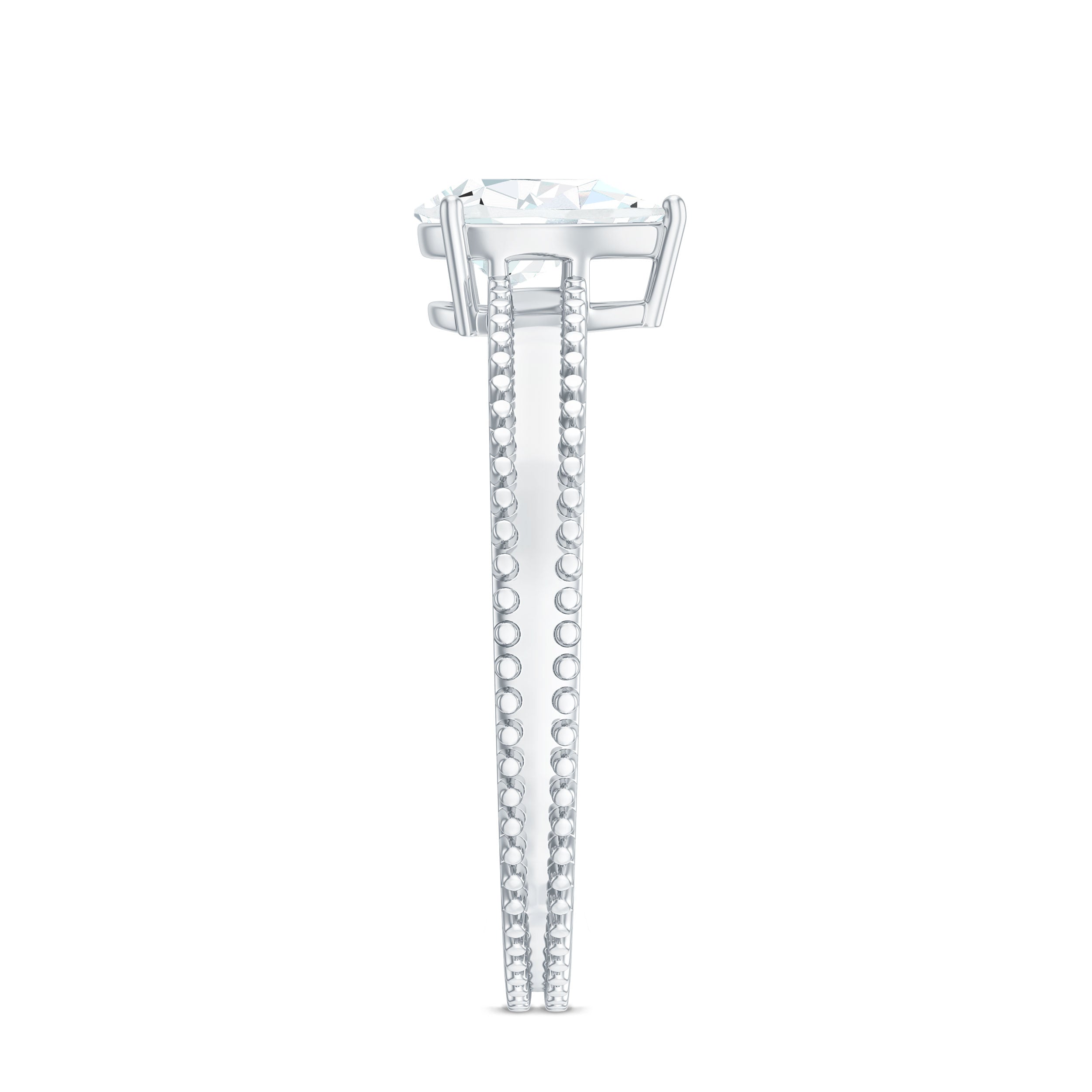 This one-of-a-kind Solitaire Ring is a stunning jewelry piece destined to make a bold statement. At its center, a resplendent Pear Shape lab created diamond gemstone is delicately cradled in a Prong Setting. The addition of intricate beaded detailing surrounding the stone imparts an exquisite touch of elegance and sophistication to this ring.