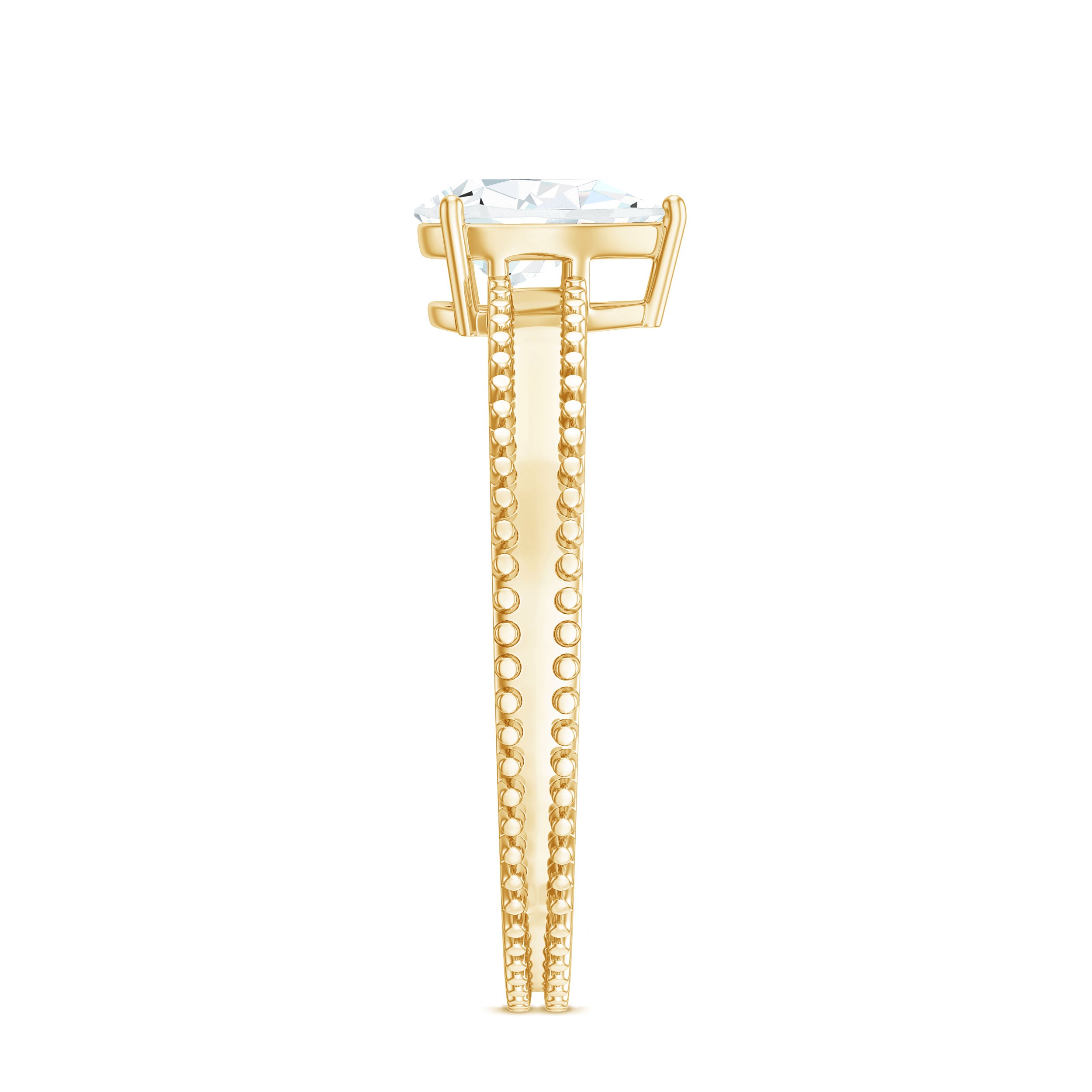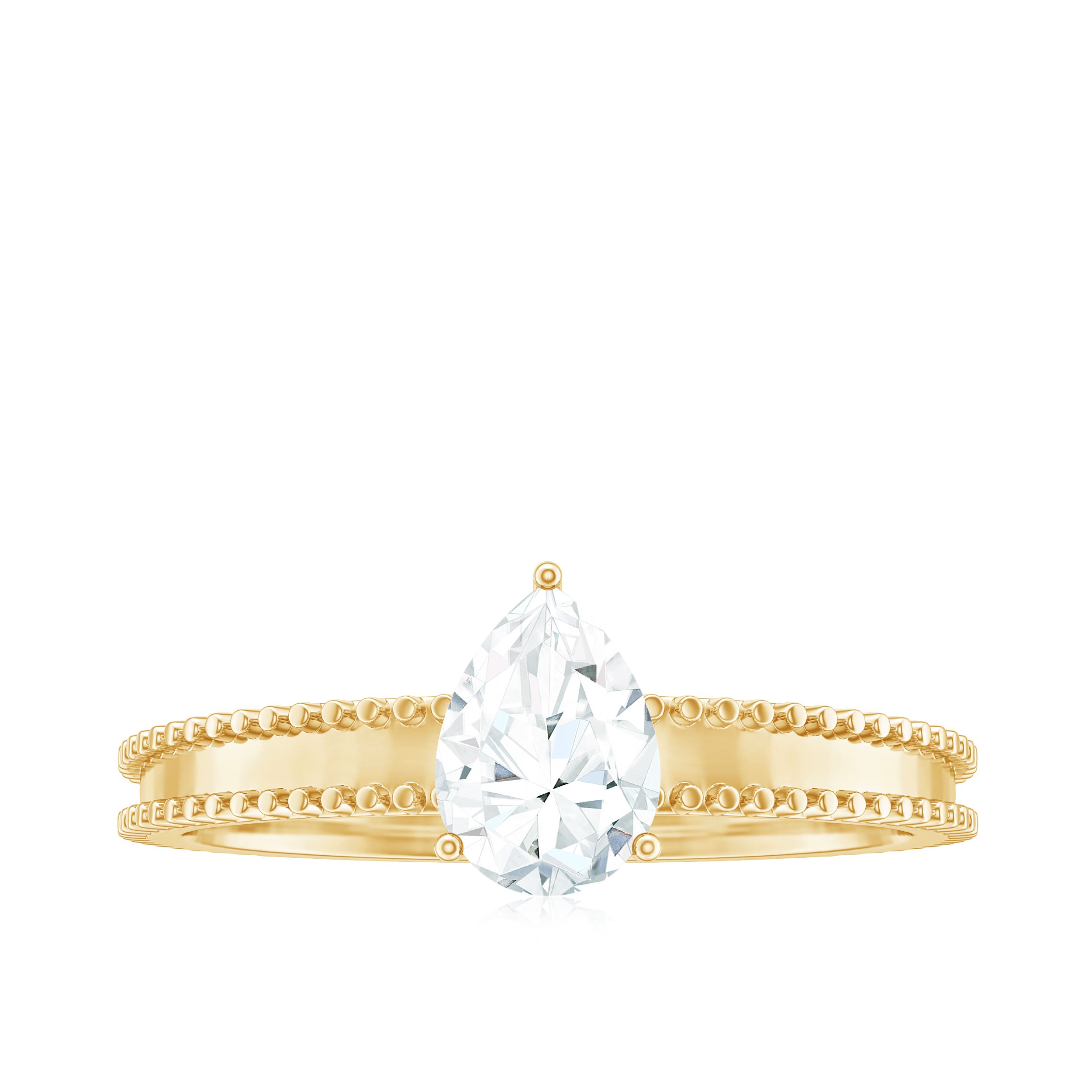 Pear Shaped Lab Grown Diamond Solitaire Ring with Beaded Detailing