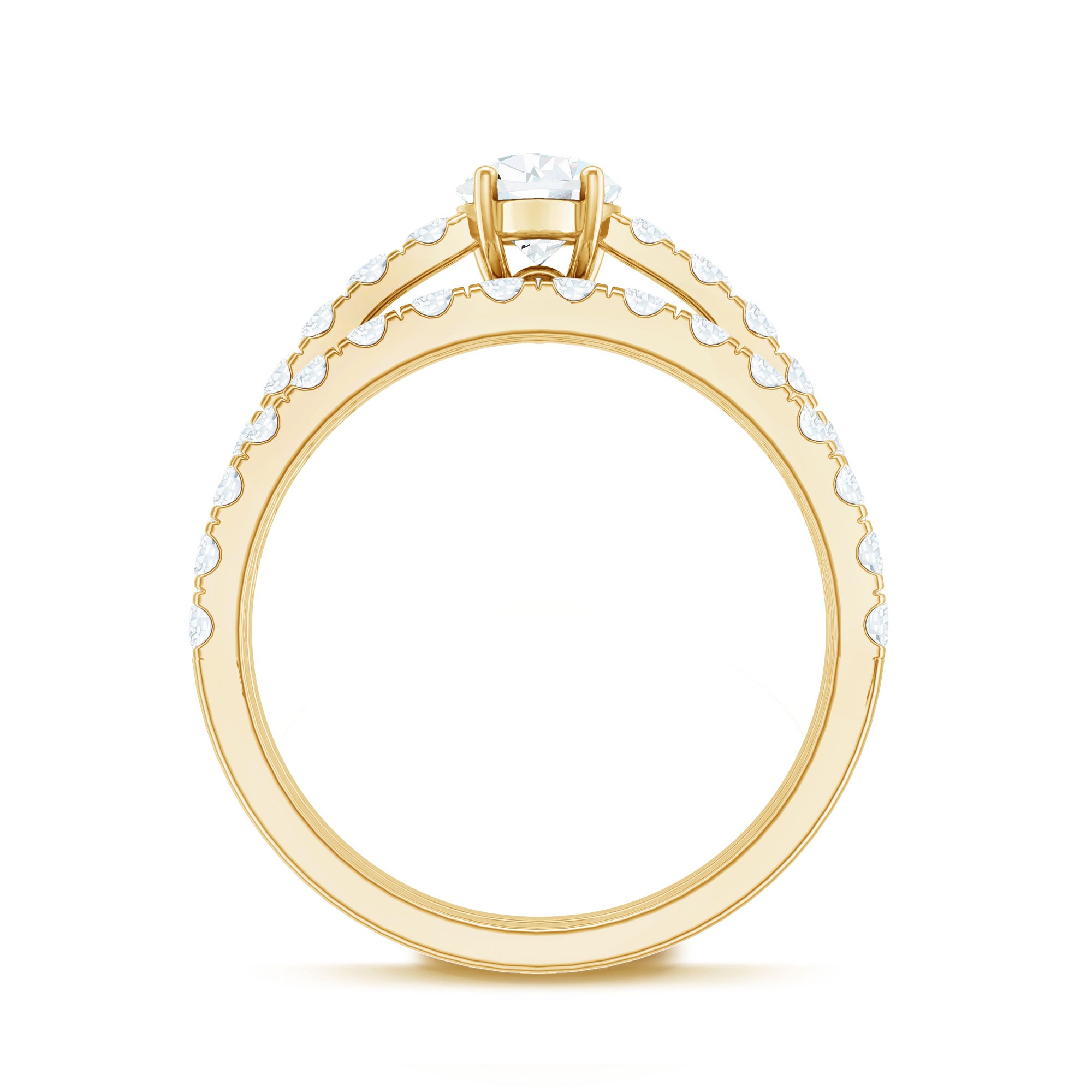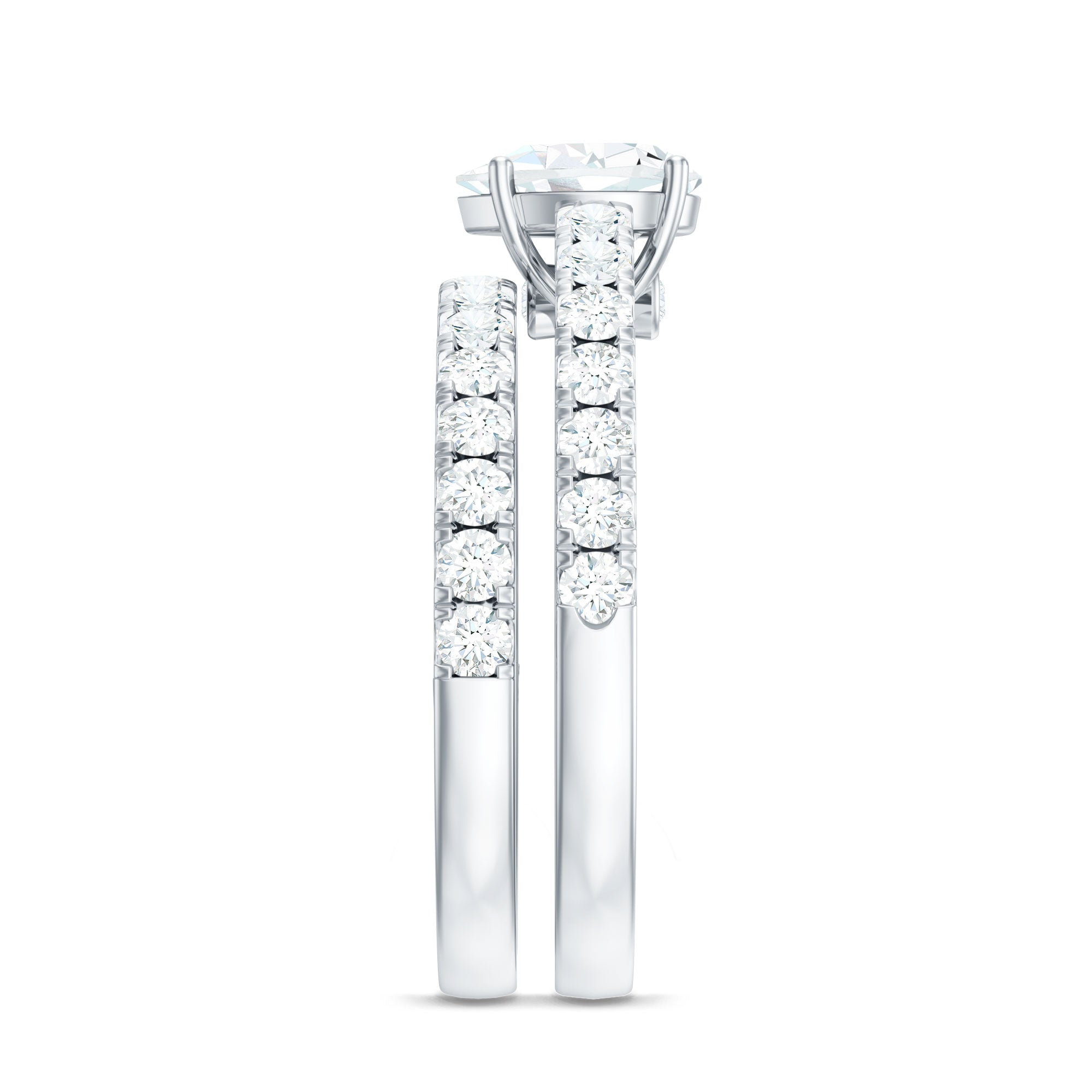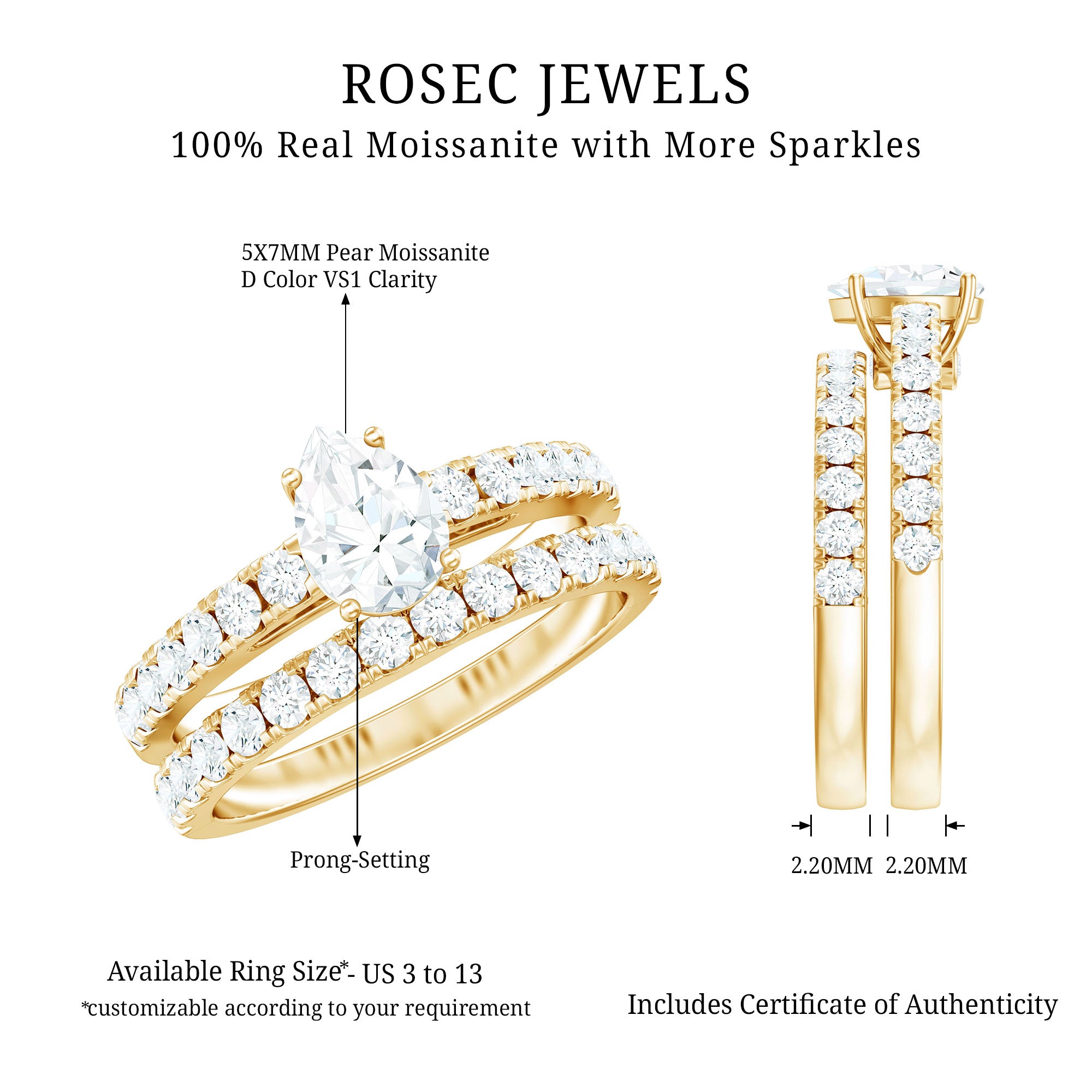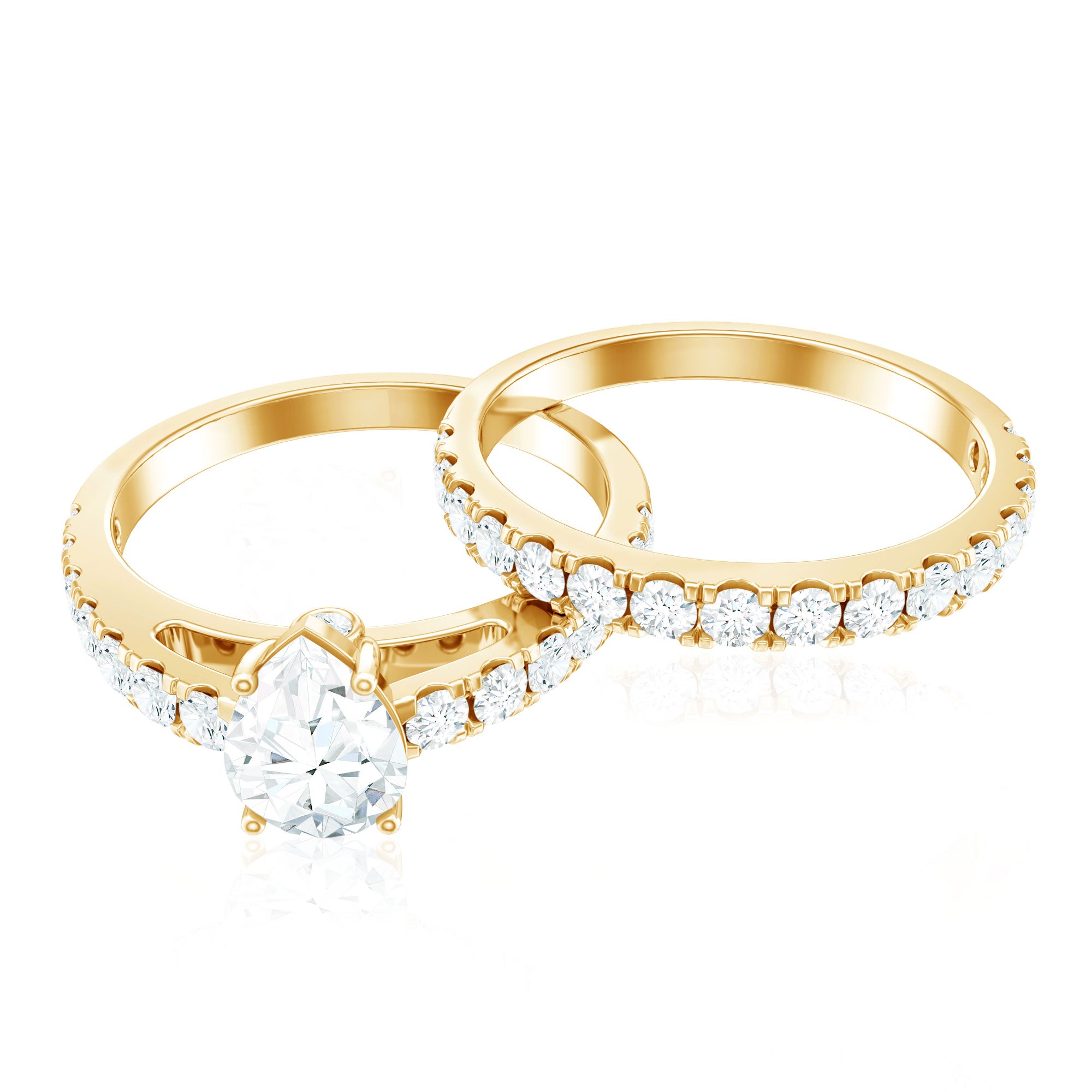 Pear Shaped Moissanite Engagement Ring with Wedding Band