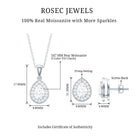 This stunning Moissanite Jewelry Set, featuring modern design and classic pear shapes, is a top pick for brides. With its luxurious diamond-like shine, our Moissanite Necklace Earrings Set is a must-have for your wedding accessory collection. If you are on the hunt for the perfect jewelry for special events, check out this Moissanite Bridal Jewelry Set, expertly made with 14K White Gold Plated Silver. The set comes with earrings and a pendant on a chain, each adorned with a 5X7 MM Pear Shape Moissanite surrounded by smaller round Moissanite stones. The earrings have a secure screw back closure to keep them in place from day to night. This popular necklace and earrings combo is also a fantastic gift for bridesmaids and for someone on their birthday, wedding anniversary. It is ideal for proms, homecoming, mothers of the bride, and any special occasion. The Rosec Jewels Teardrop Pendant and Earrings Set is a memorable gift that will be treasured for years. Its a glamorous and timeless accessory that will elevate your outfit. You will adore wearing this Teardrop Jewelry Set, which comes in a high-quality velvet pouch along with a certificate of authenticity.