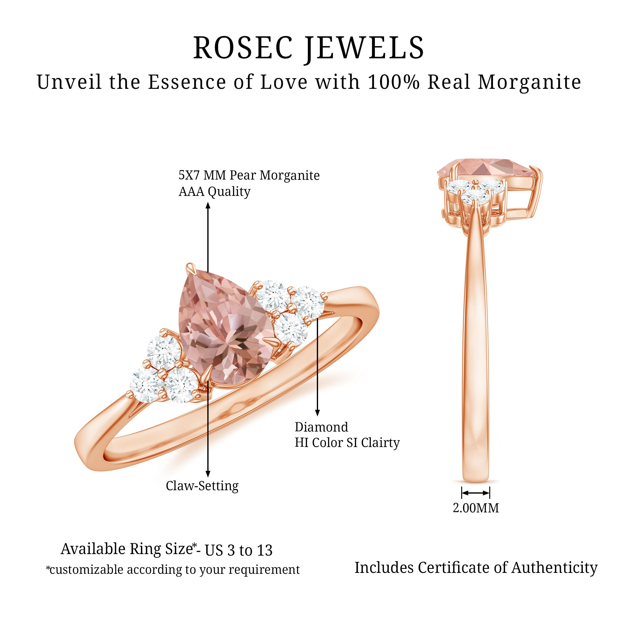 Pear Shaped Morganite Solitaire Ring with Diamond Trio