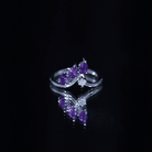 Add a graceful twist to your ring stack with this beautifully designed Engagement Ring Guard, perfect for giving your solitaire or engagement ring a stylish upgrade. Made with care in white gold plated silver, this enhancer is thoughtfully crafted to complement and elevate your existing ring, making it look even more elegant and full of character. The band features a unique chevron shape that wraps smoothly around your center ring, adding both structure and visual interest. On one end, you will find pear shaped amethysts, set securely in prongs to resemble soft, curved leaves. To add just the right touch of brilliance, a round brilliant cut lab grown diamond is set at the center of the Amethyst Stackable Ring. This Wedding Ring Enhancer is made to fit comfortably on your finger while holding your engagement ring securely in place. The smooth band makes it perfect for everyday wear, while the eye-catching details give it that special occasion flair. The combination of AAA quality Amethyst and EF-VS quality lab grown diamond ensures you are wearing something both beautiful and responsibly sourced. Whether you are celebrating an anniversary, upgrading your bridal set, or just want something new to love in your collection, this Chevron Ring adds the perfect touch.
