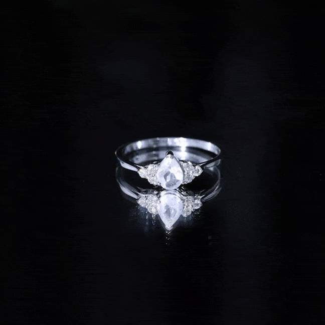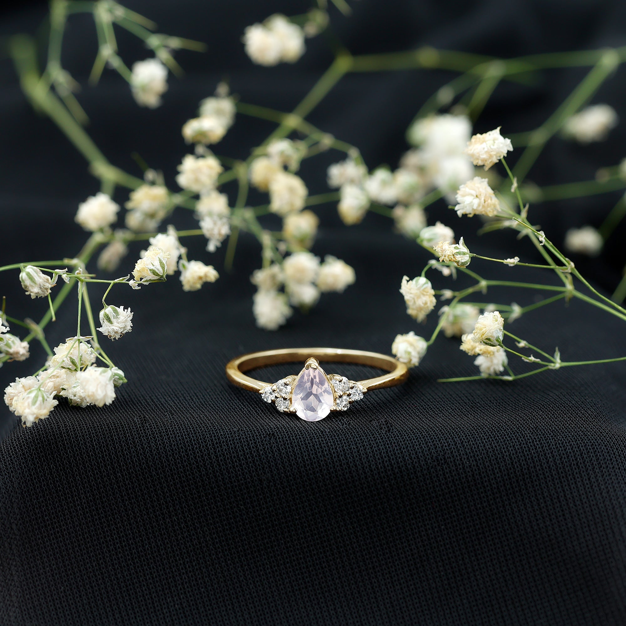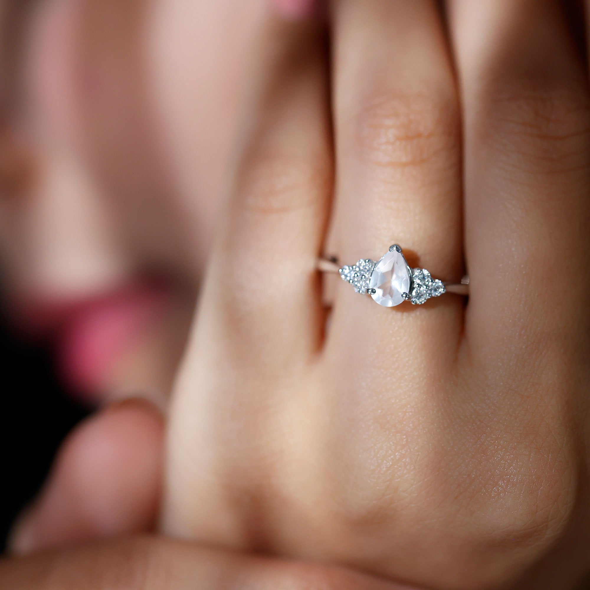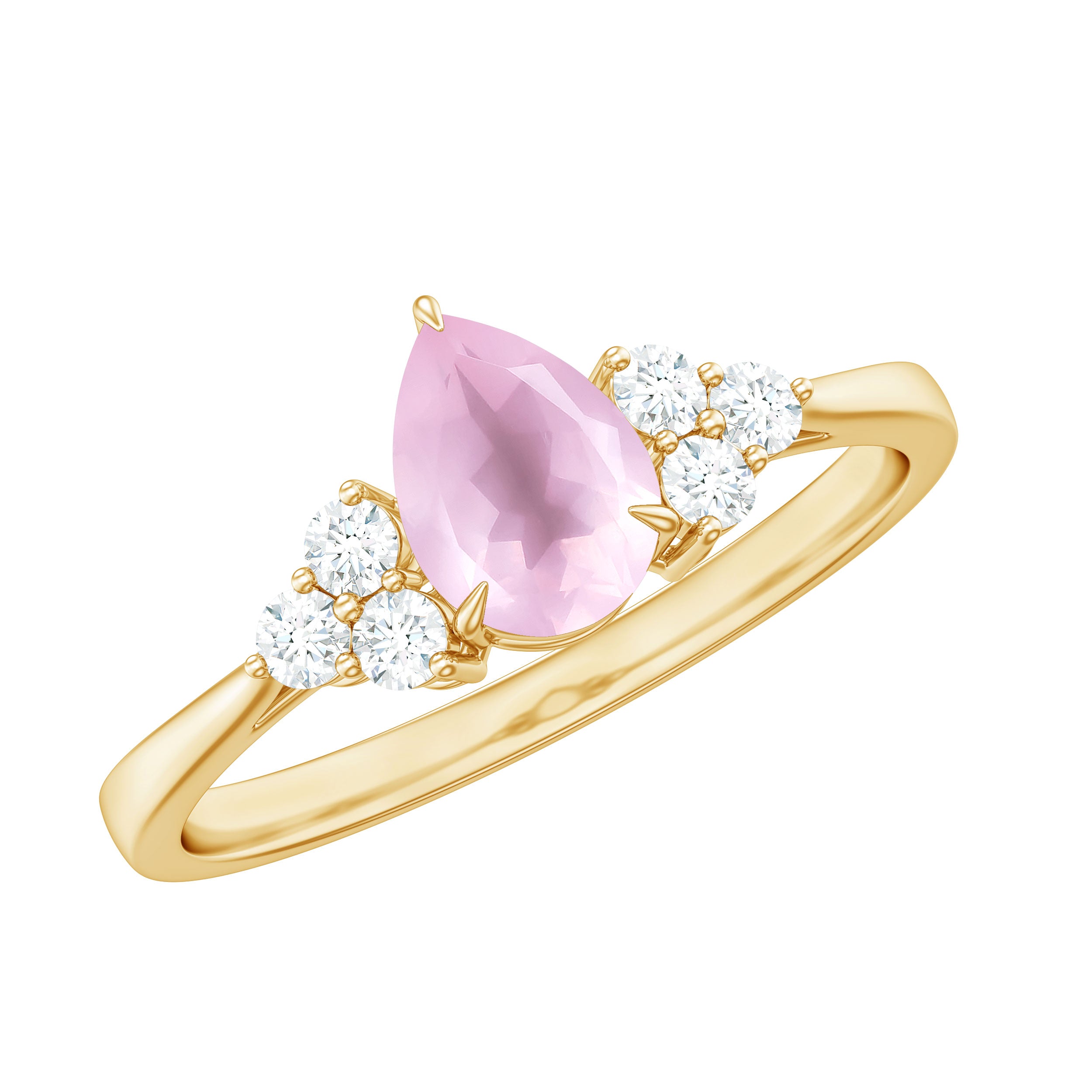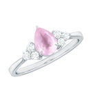 Pear Shaped Rose Quartz Solitaire Engagement Ring with Diamond Trio