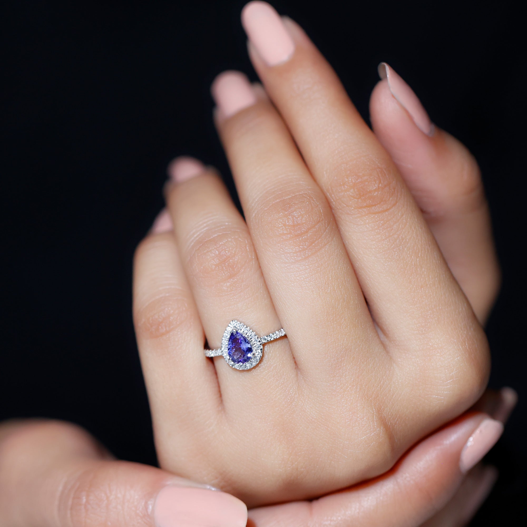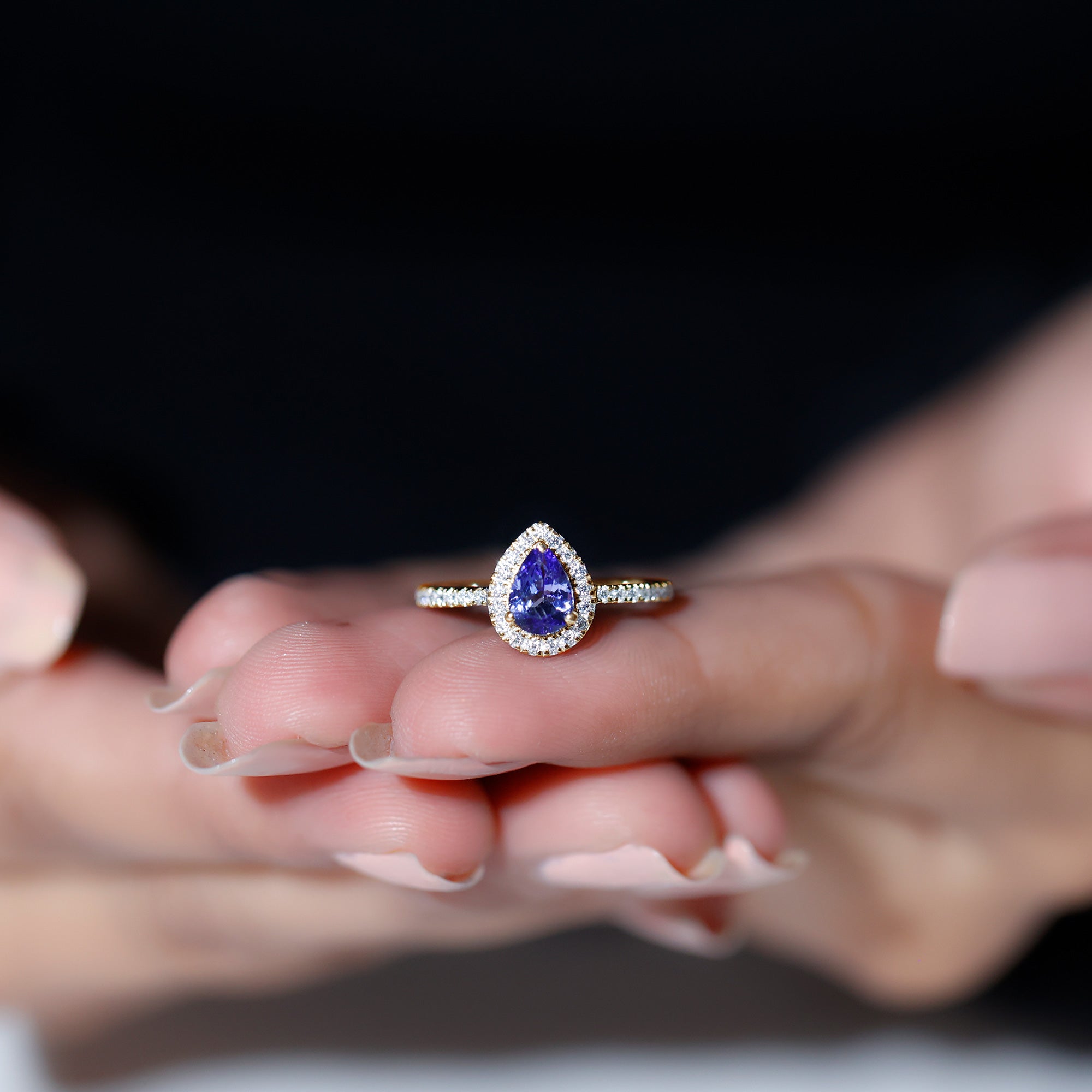 Pear Shaped Tanzanite Halo Engagement Ring with Diamond