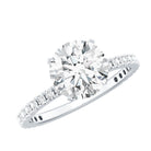 Watch her enchantment unfold as you offer her this captivating Solitaire Engagement Ring. Featuring an 8 MM Round Cut Moissanite set in Peg Head setting, along with flanking Side Stones in a French Pave Setting adding an extra layer of shine to the ring. This Engagement Ring is perfect for initiating a new phase of life with that special one. This shine of D-VS1 Quality Moissanite will make your lady love extra special on the big day. This 2 Carat Moissanite Ring is meticulously crafted in various metal options, embodying a lavish selection for your beloved. This Round Moissanite Engagement Ring will be delivered to you in premium-quality packaging in a signature jewelry box for storage. Your purchase will include the certificate of gemstone authentication to ensure the quality of the ring.