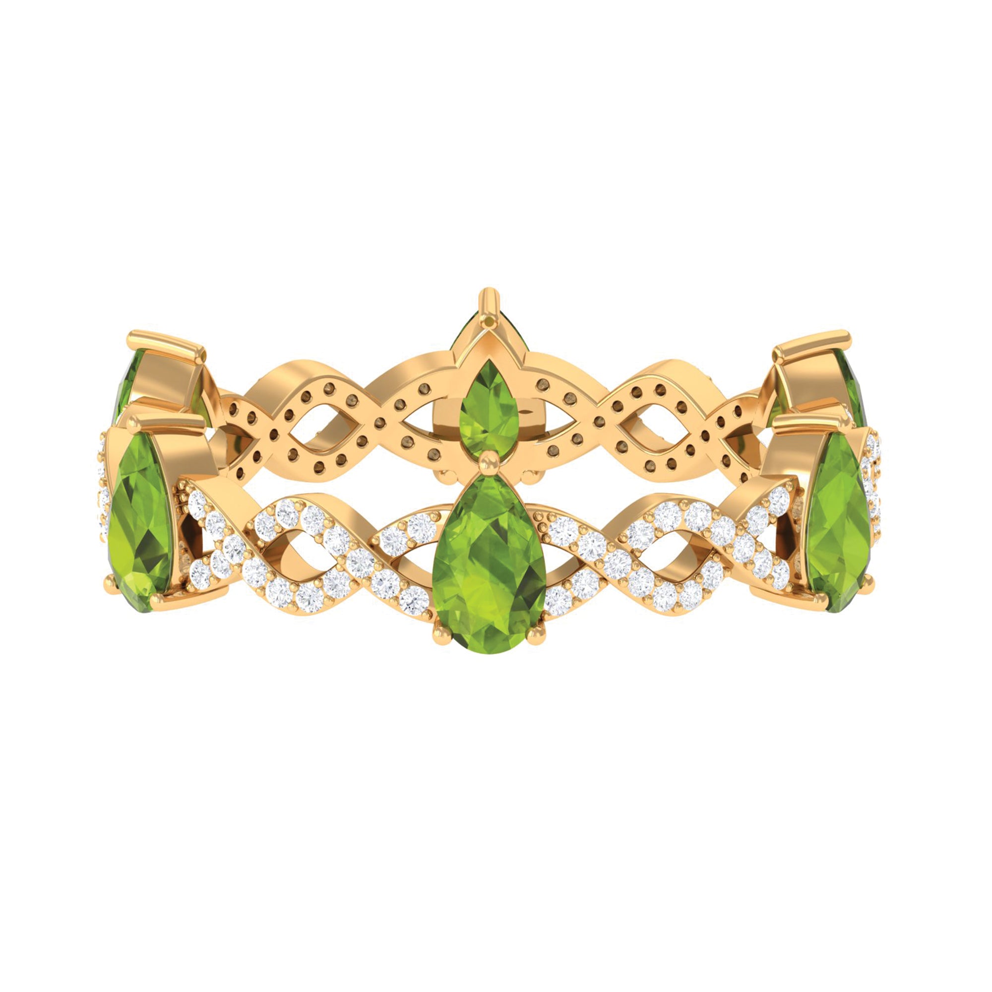 Peridot and Diamond Full Eternity Ring with Crossover Shank