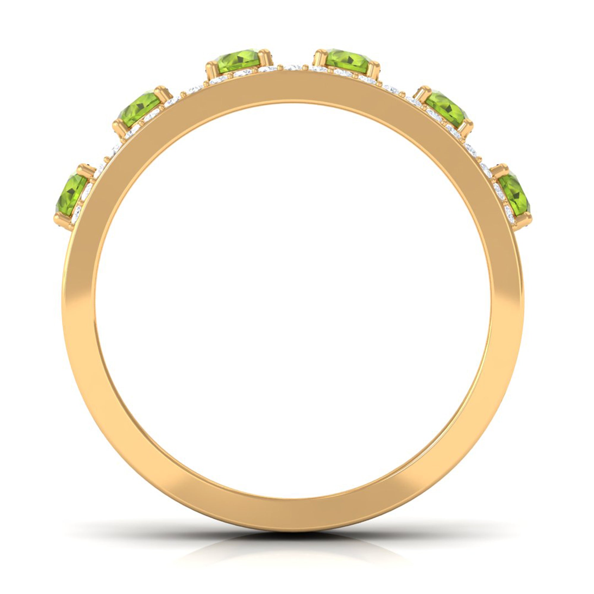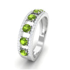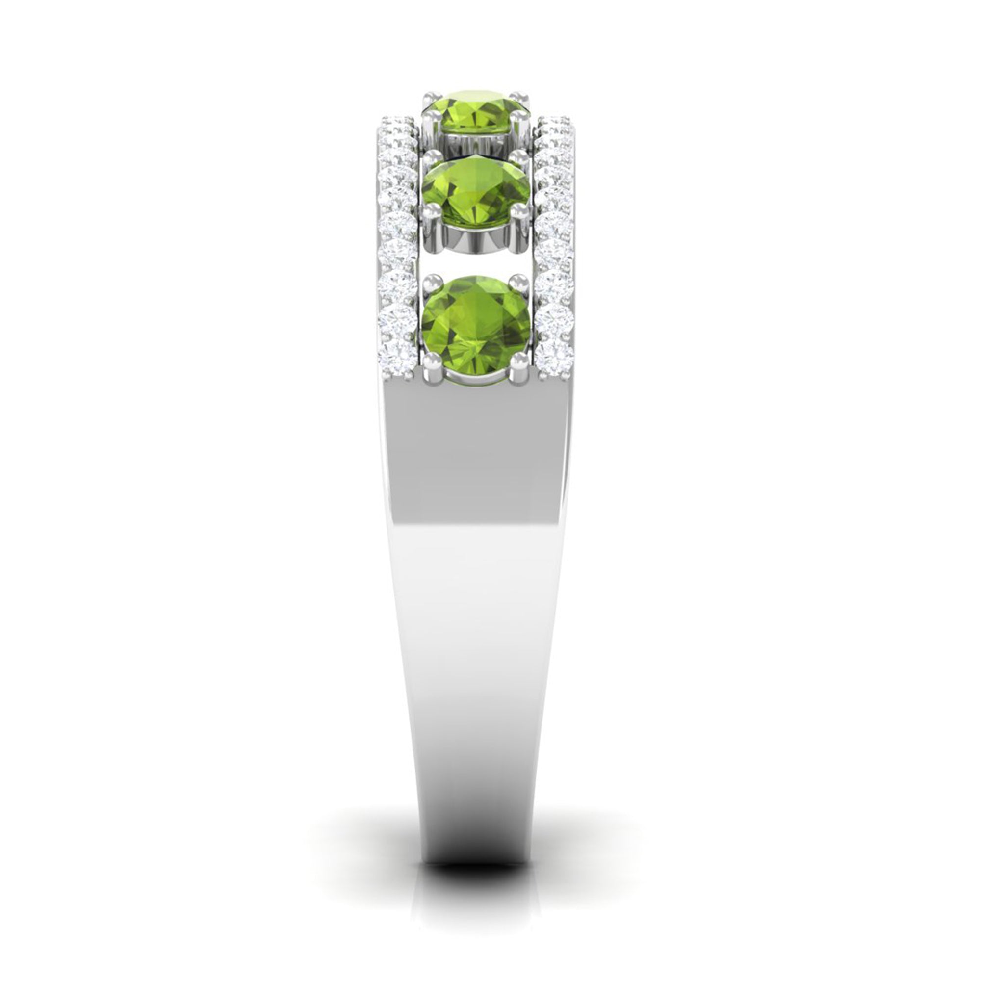 Celebrate your loves journey with this enchanting Peridot Anniversary Ring adorned with shimmering Diamond gemstones. Meticulously crafted to exude elegance, this ring serves as a timeless reminder of your enduring commitment. Whether its a milestone celebration or a heartfelt gesture, this Anniversary Ring is a dazzling and cherished token of your love.