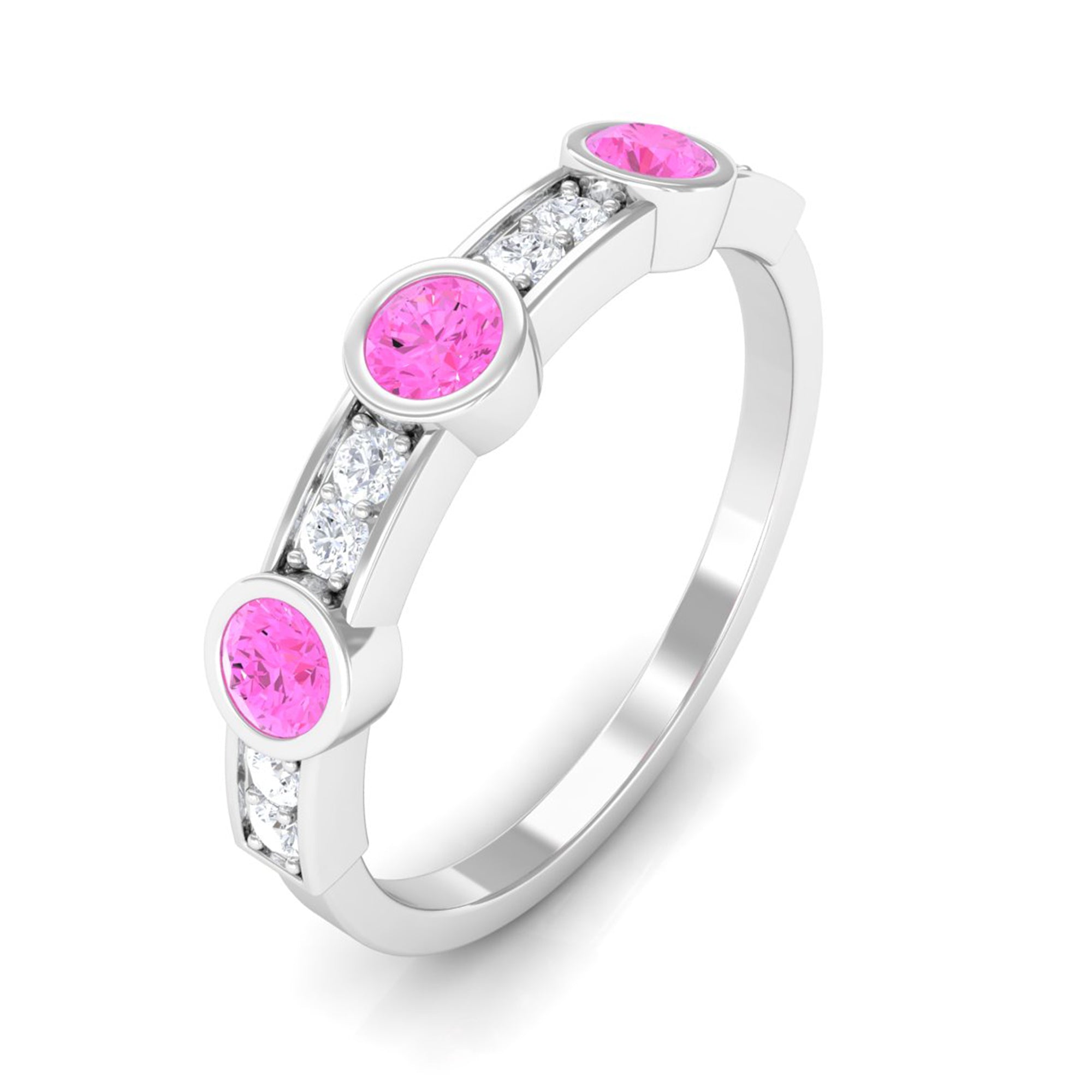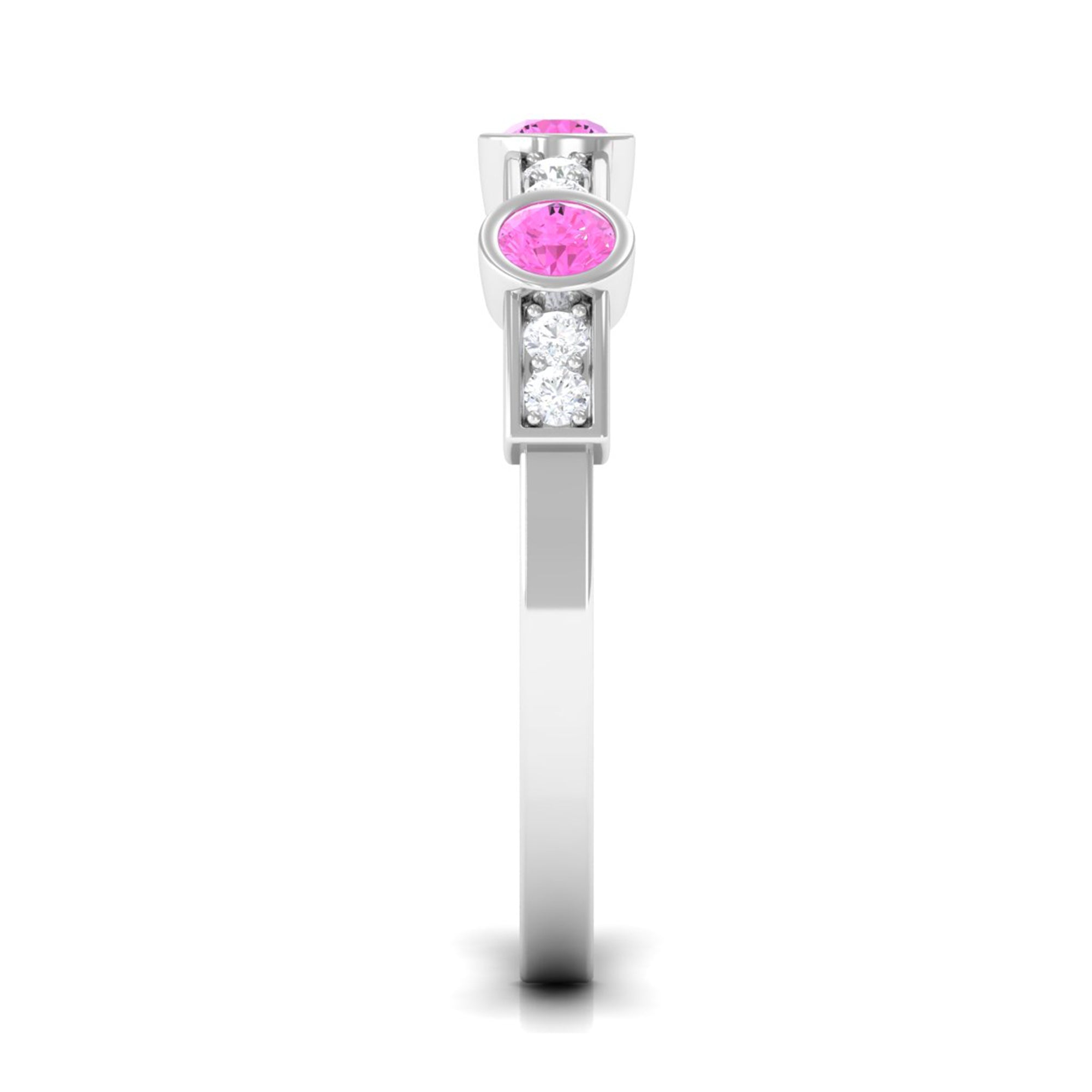 Pink Sapphire and Diamond Minimal Half Eternity Ring