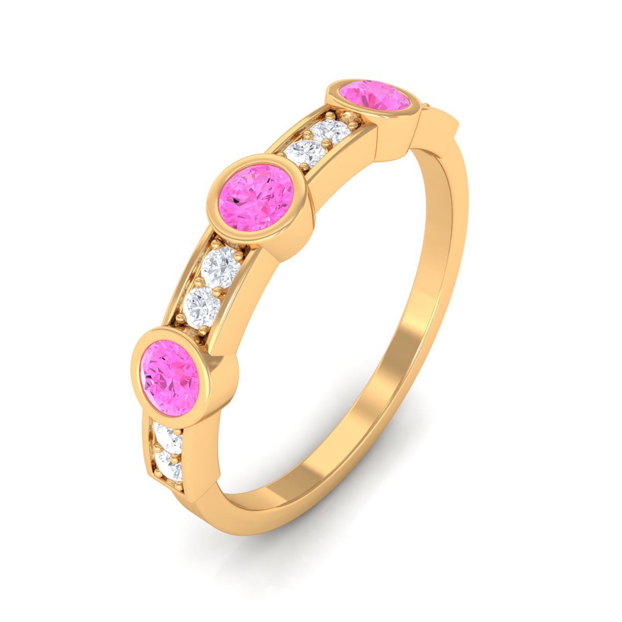 This Minimal Half Eternity Ring is adorned with Pink Sapphire and Diamond gemstones to create a timeless and sophisticated look that will mesmerize all.