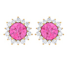 Pink Sapphire and Diamond Sunburst Stud Earrings