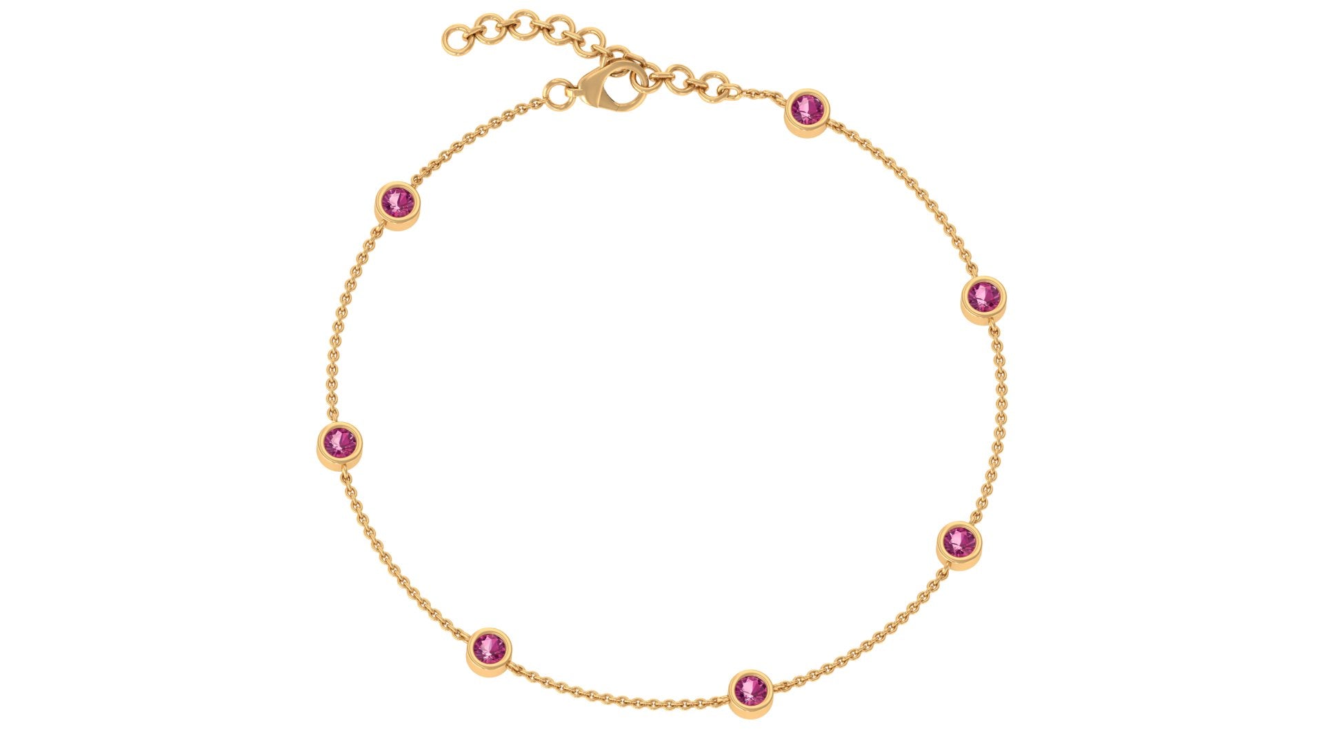 Elevate the elegance of your wrist with this minimalist Pink Tourmaline Bracelet. This exquisite accessory features 3mm round shape Pink Tourmaline gemstones skillfully arranged along a delicate chain in a bezel setting, creating a subtle yet captivating sparkle. The Lobster Claw Closure ensures a secure fit, making this Station Chain Bracelet ideal for everyday wear or special occasions. Rosec Jewels is dedicated to timeless beauty and ethical sourcing, making this Stacking Bracelet a perfect blend of luxury and responsibility. Designed with versatility in mind, this Minimal Chain Bracelet can be worn alone or layered with other pieces for a trendy, stacked look. Its timeless design makes it a wonderful gift for her on any occasion—whether it be a birthday, anniversary, or simply a sincere gesture to convey your affection. Embrace the lasting elegance and adaptability of this Station Bracelet, which ensures that you will always look effortlessly chic and stylish. Its brilliant sparkle is an attractive choice for those seeking a refined enhancement that adds a touch of luxury without overpowering your look. The grace and beauty it reflects in you tell your story and draw attention.