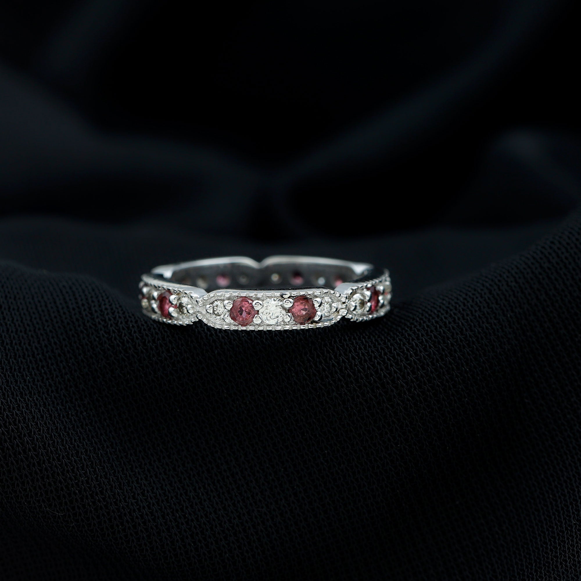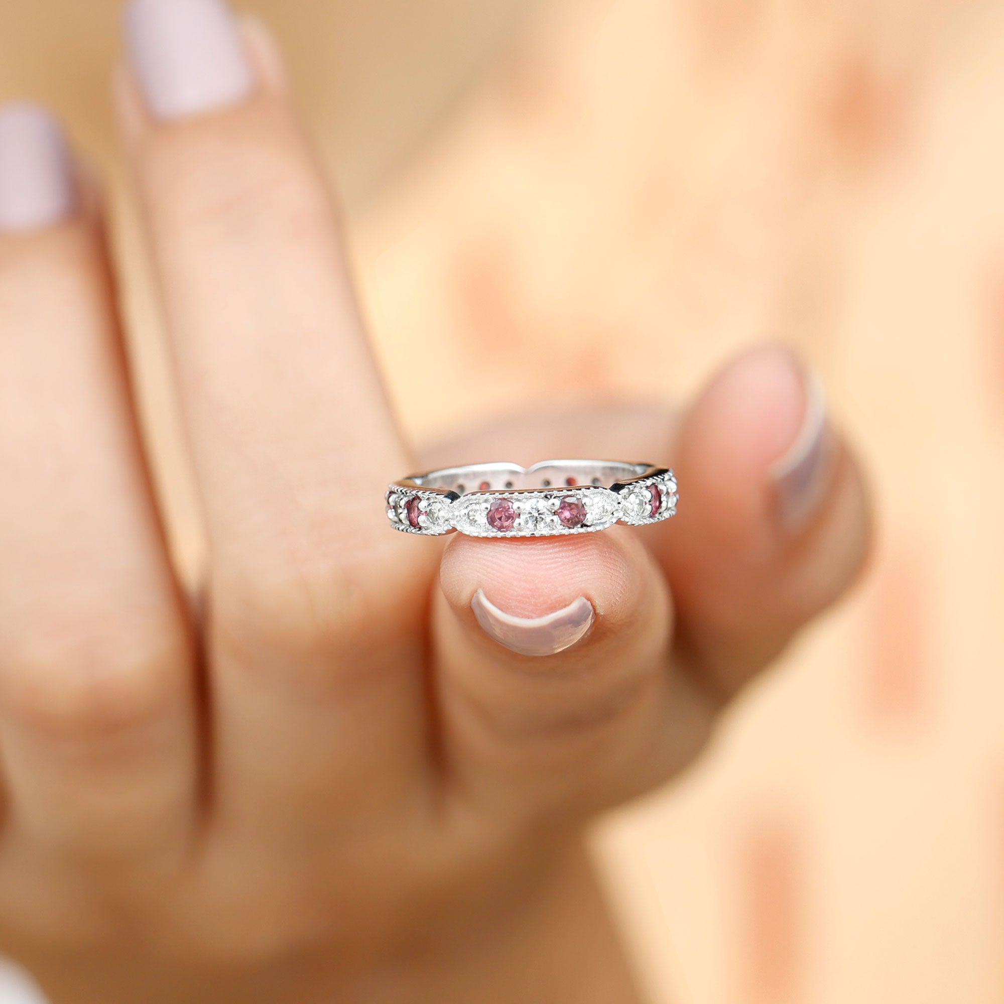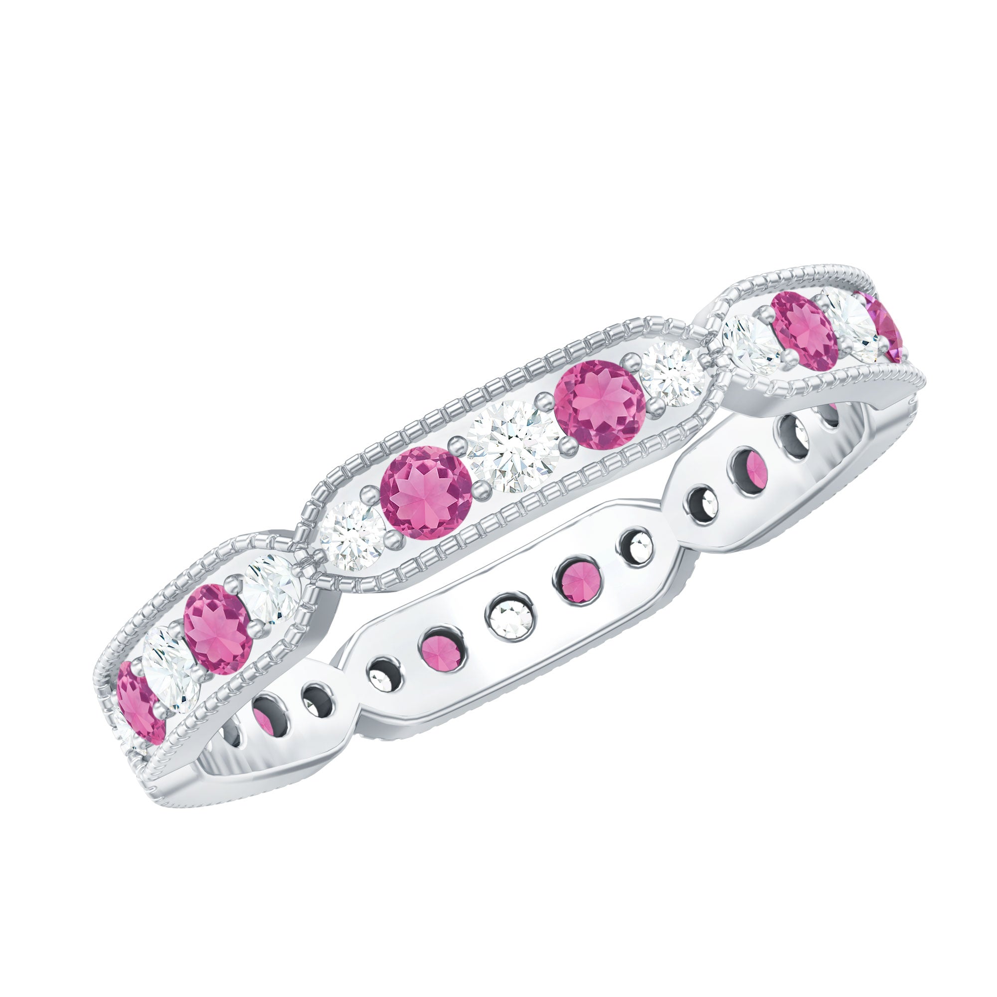 Pink Tourmaline and Diamond Eternity Band Ring