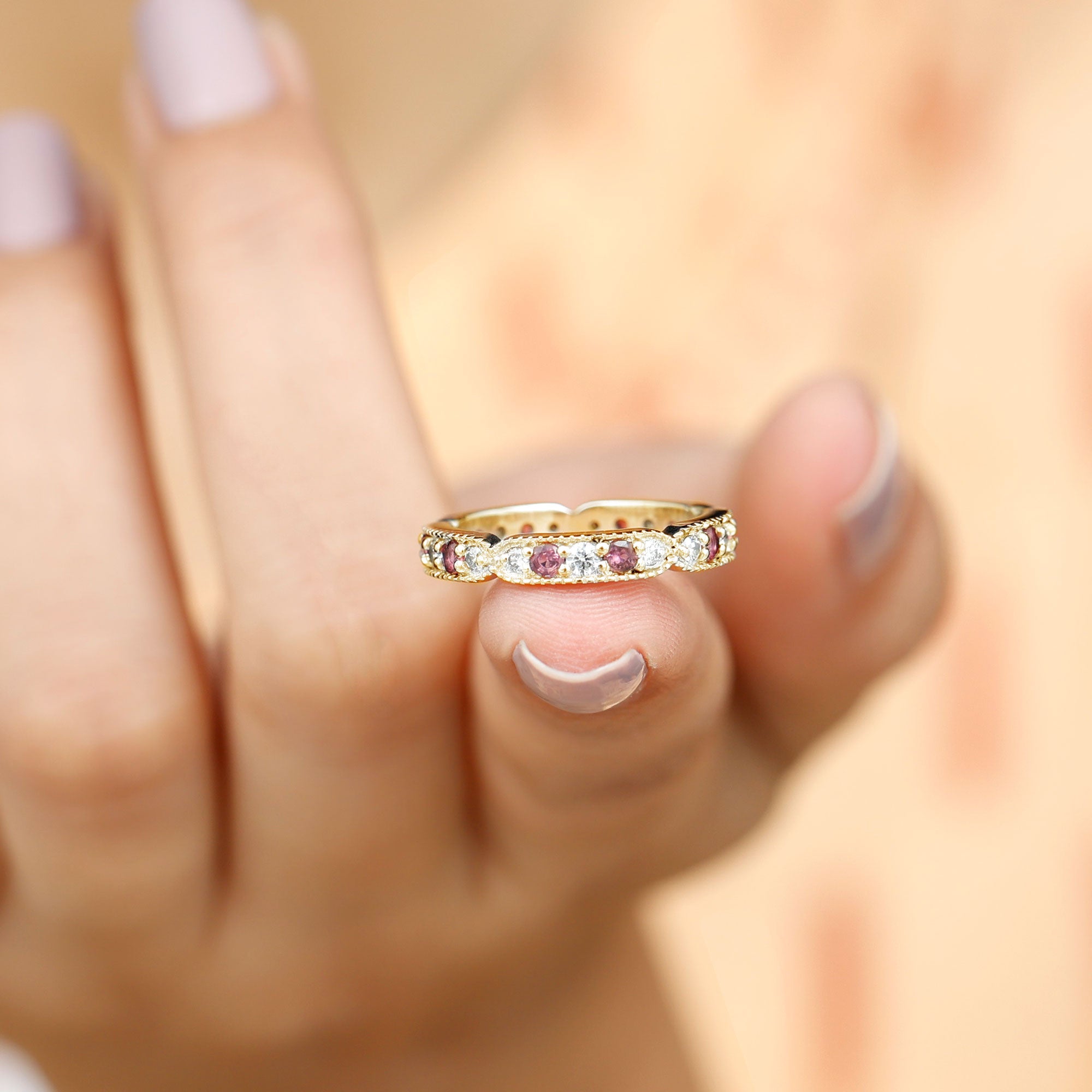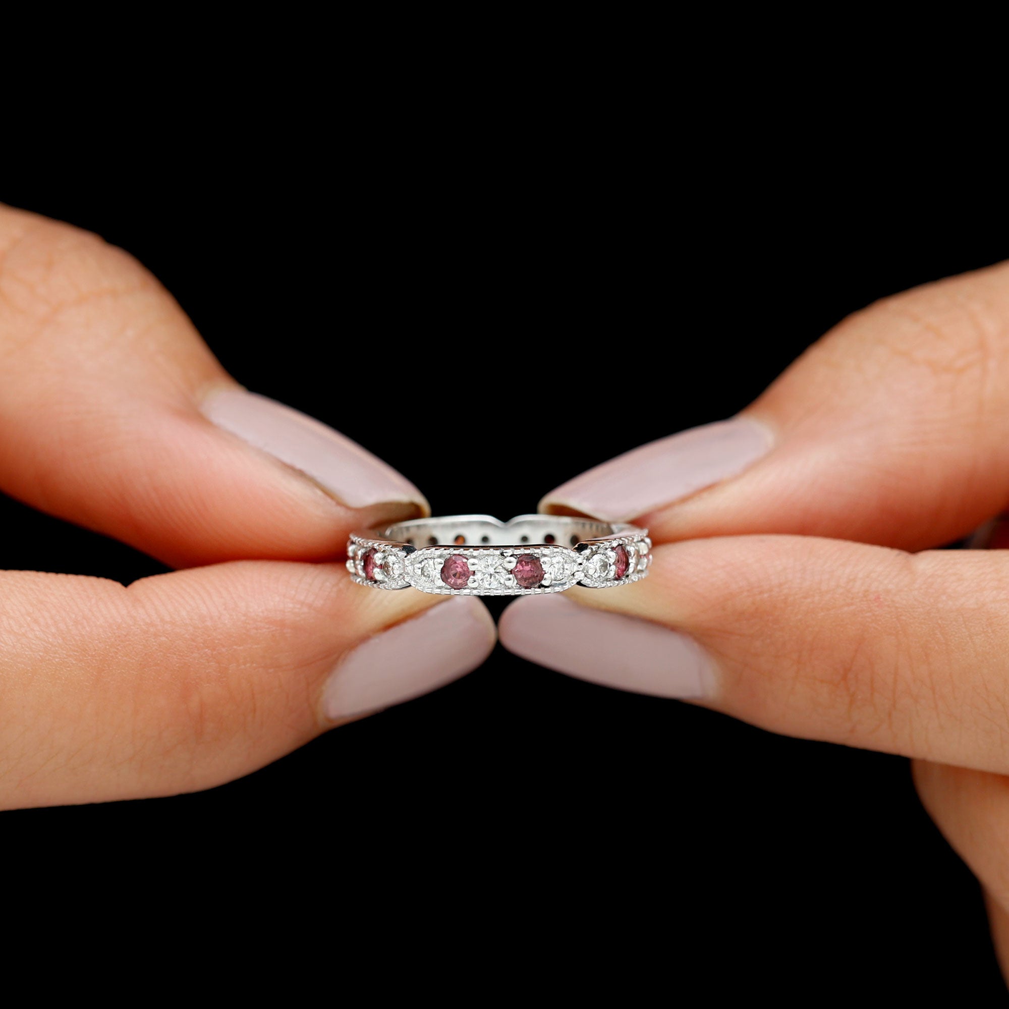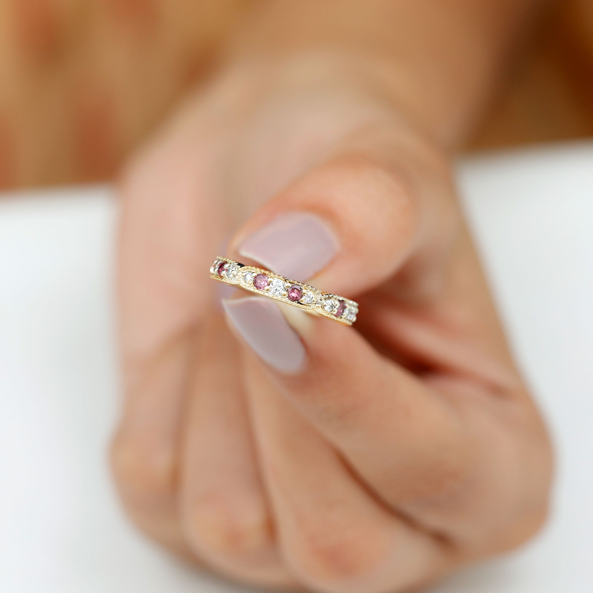 Pink Tourmaline and Diamond Eternity Band Ring