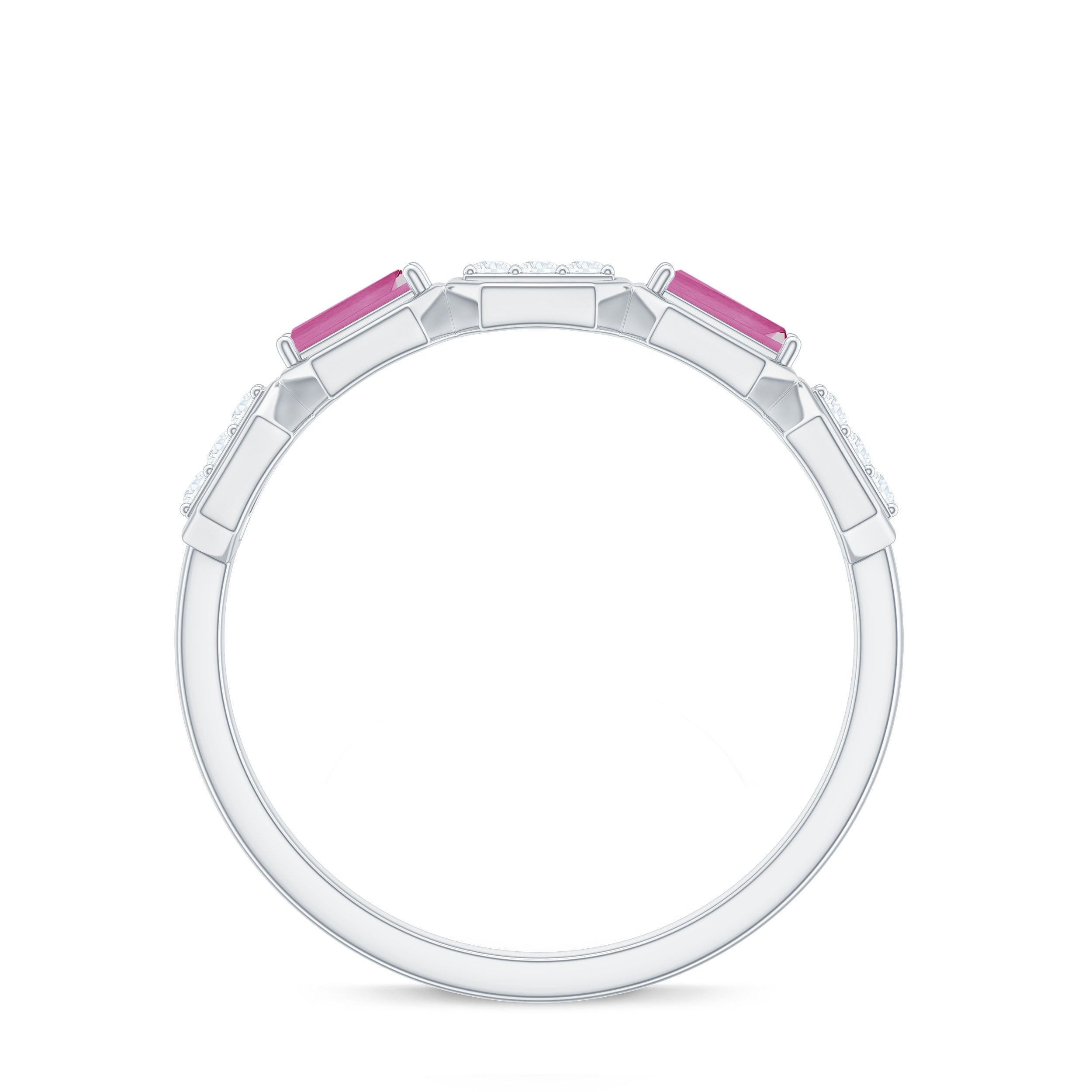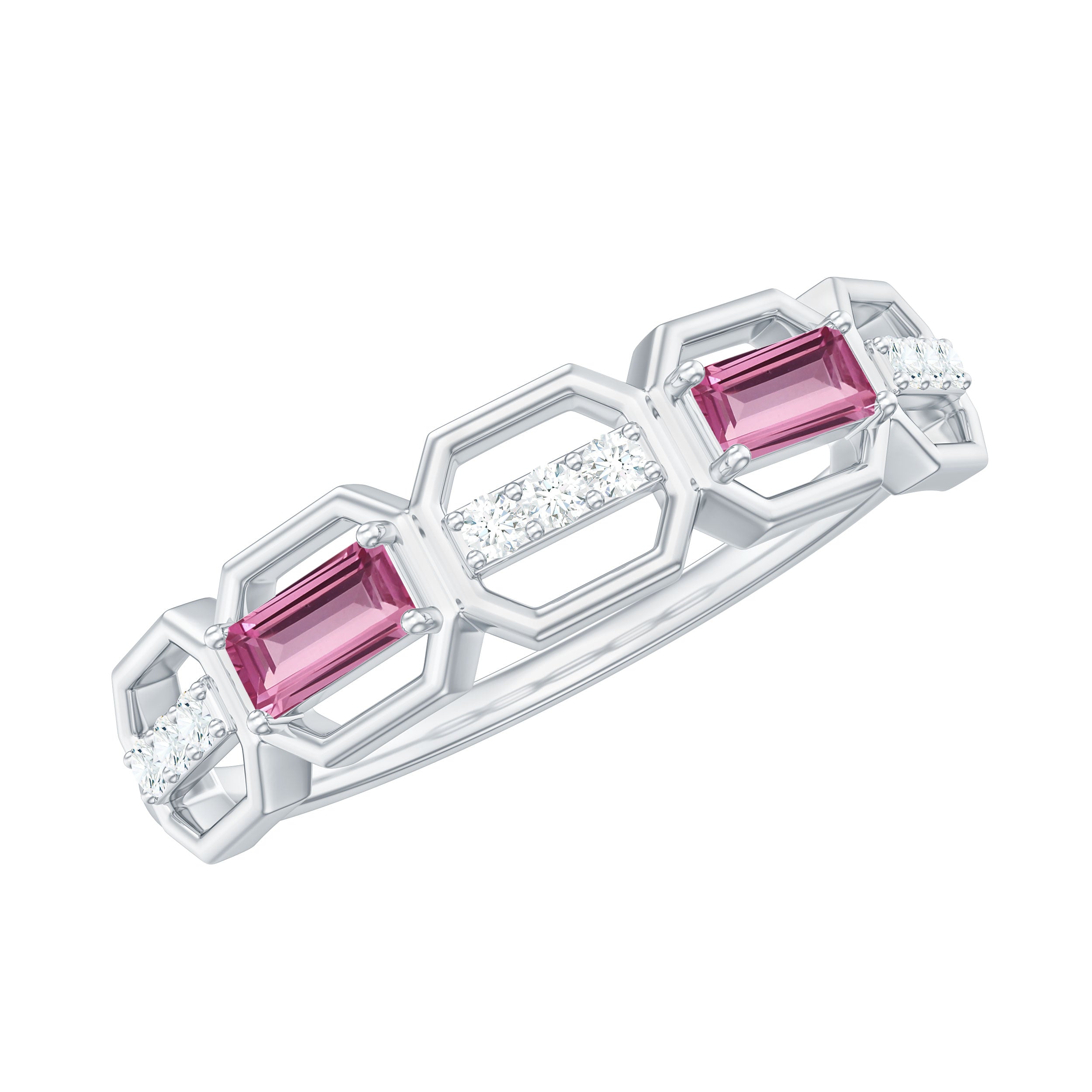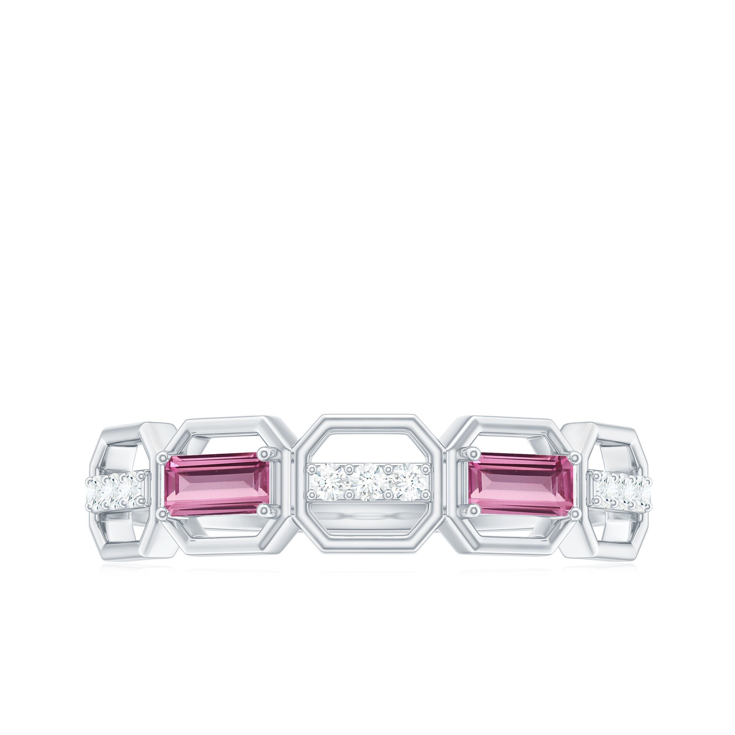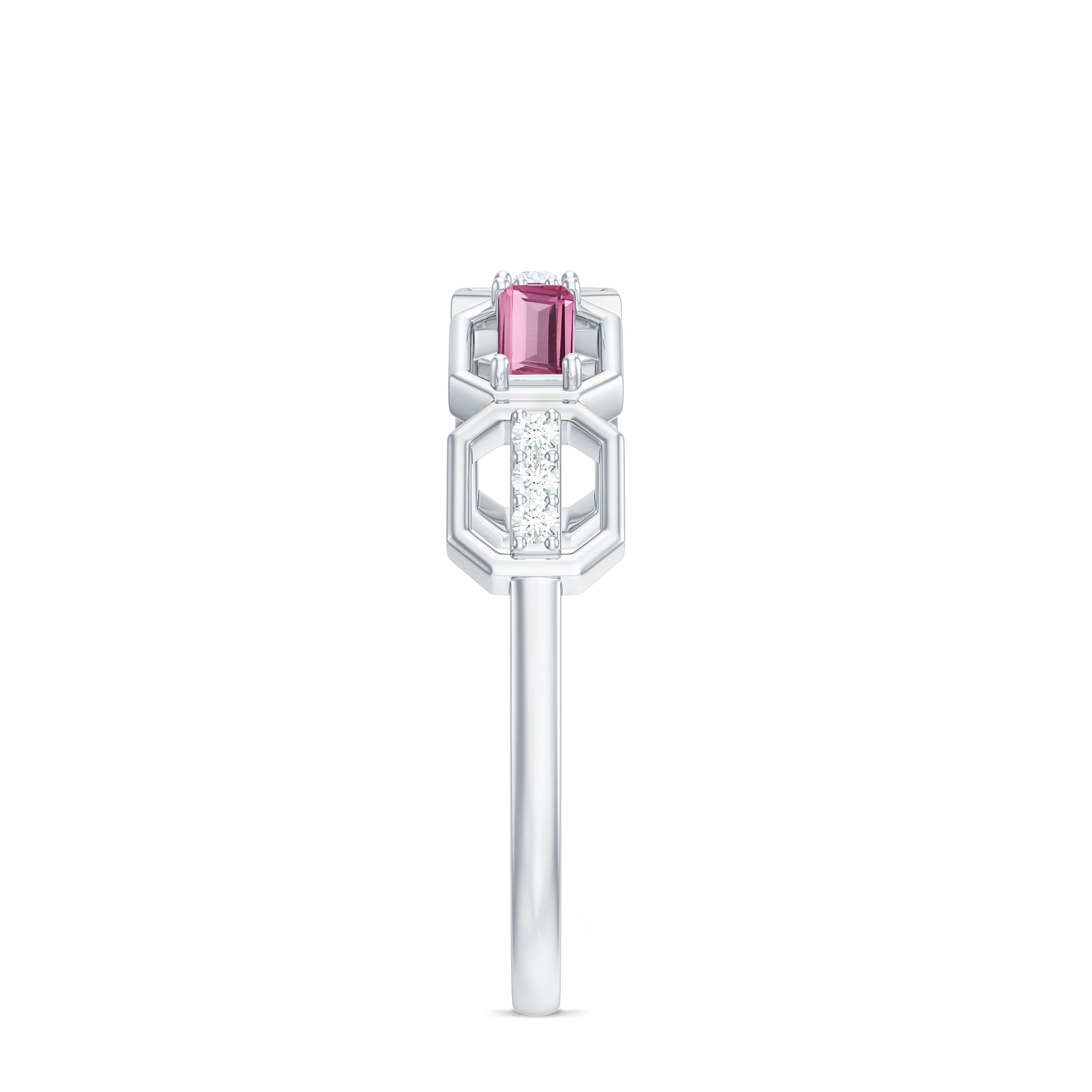 Pink Tourmaline and Diamond Geometric Half Eternity Ring