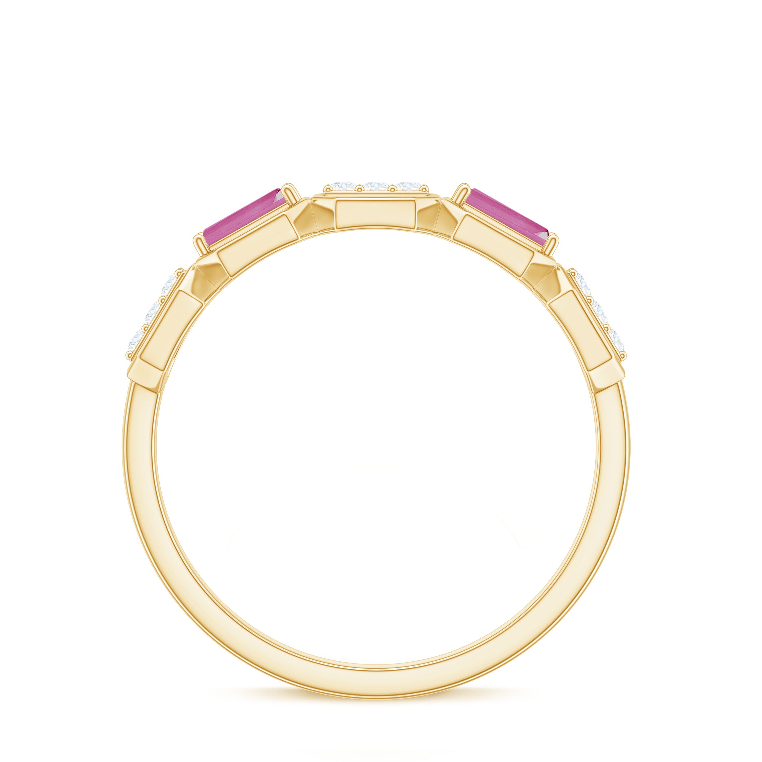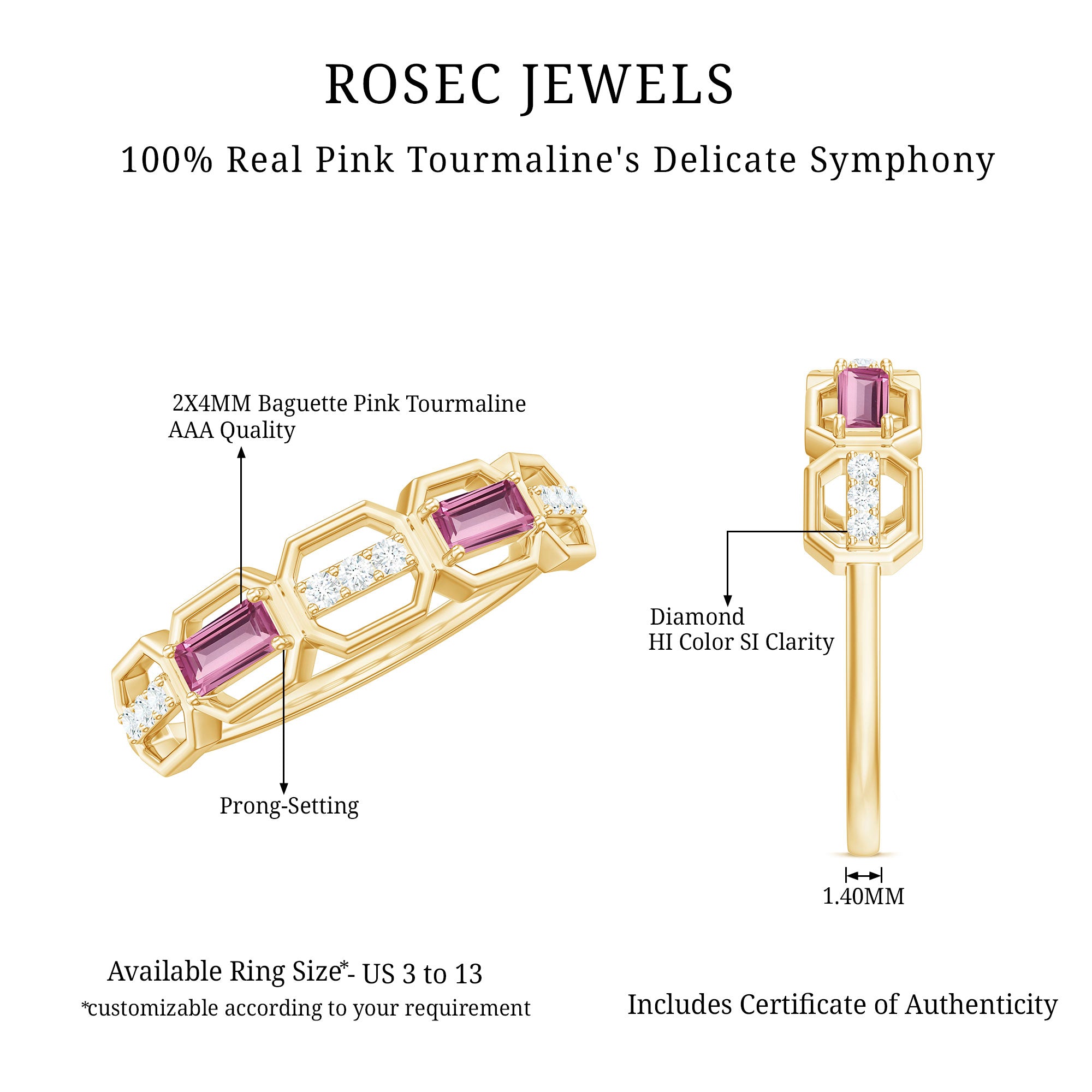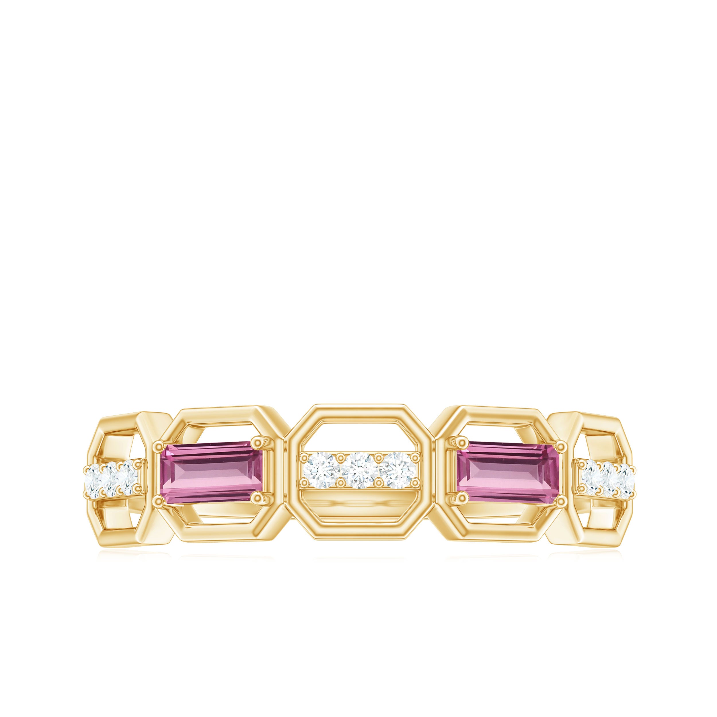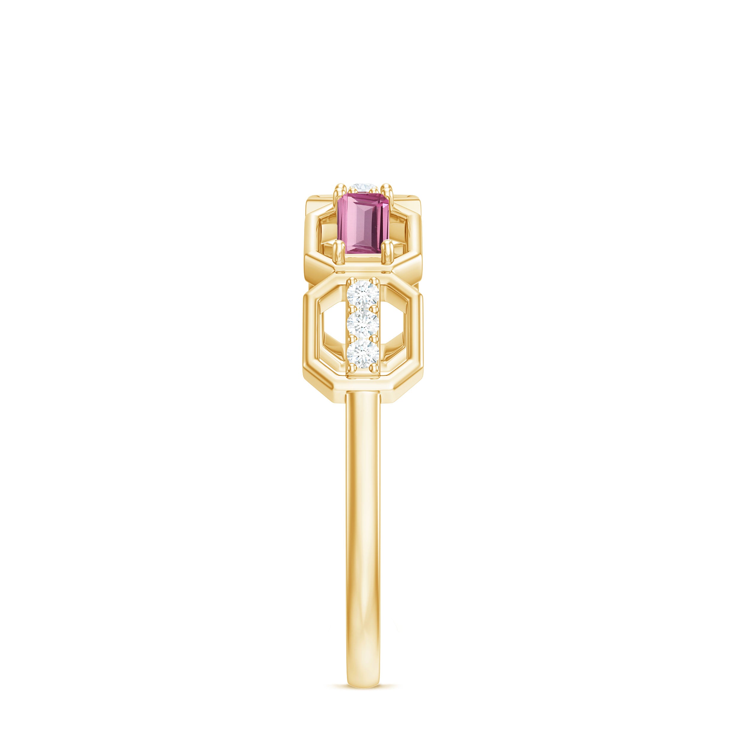 Pink Tourmaline and Diamond Geometric Half Eternity Ring