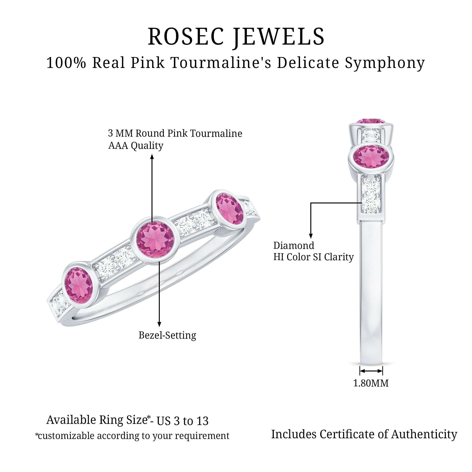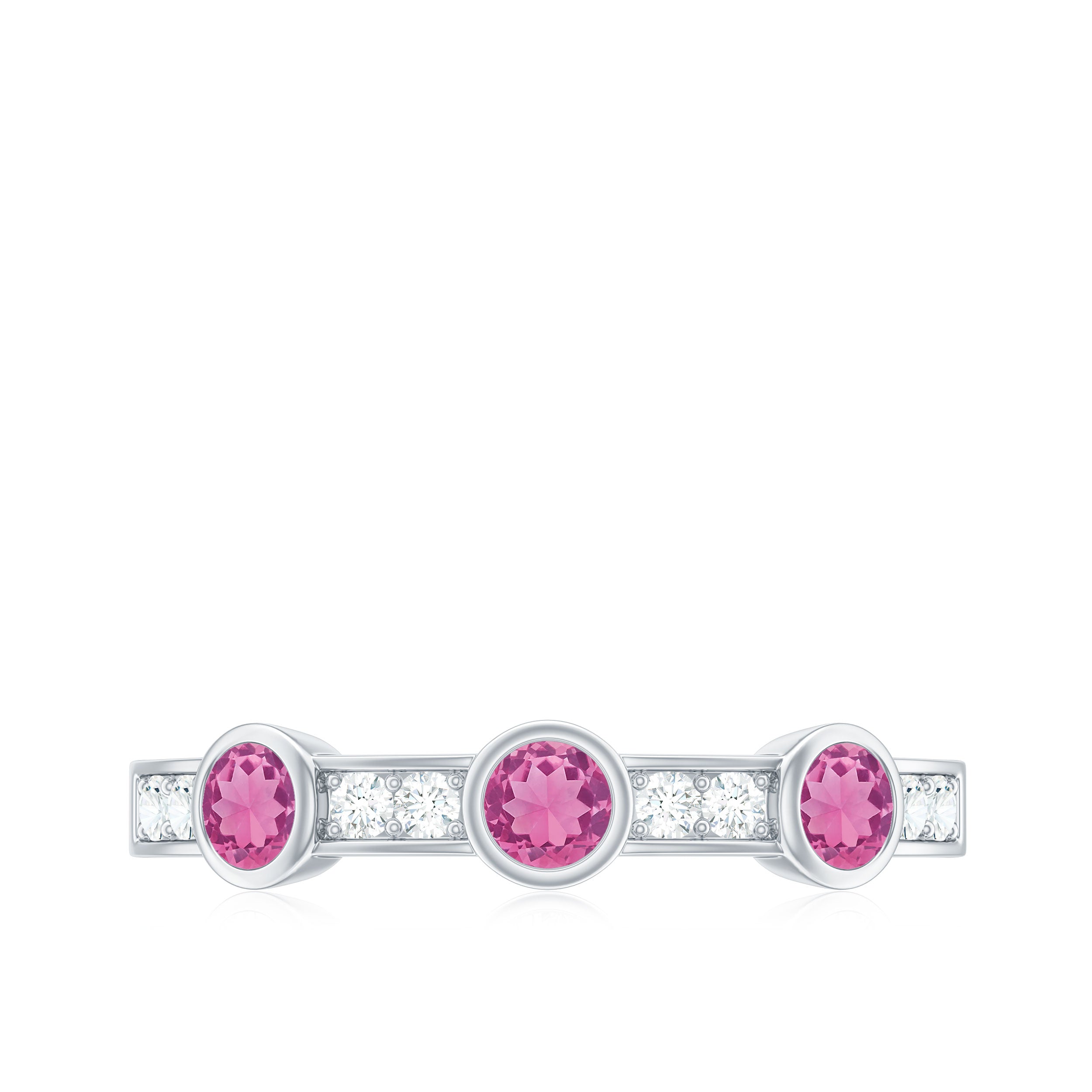 Pink Tourmaline and Diamond Minimal Half Eternity Band Ring