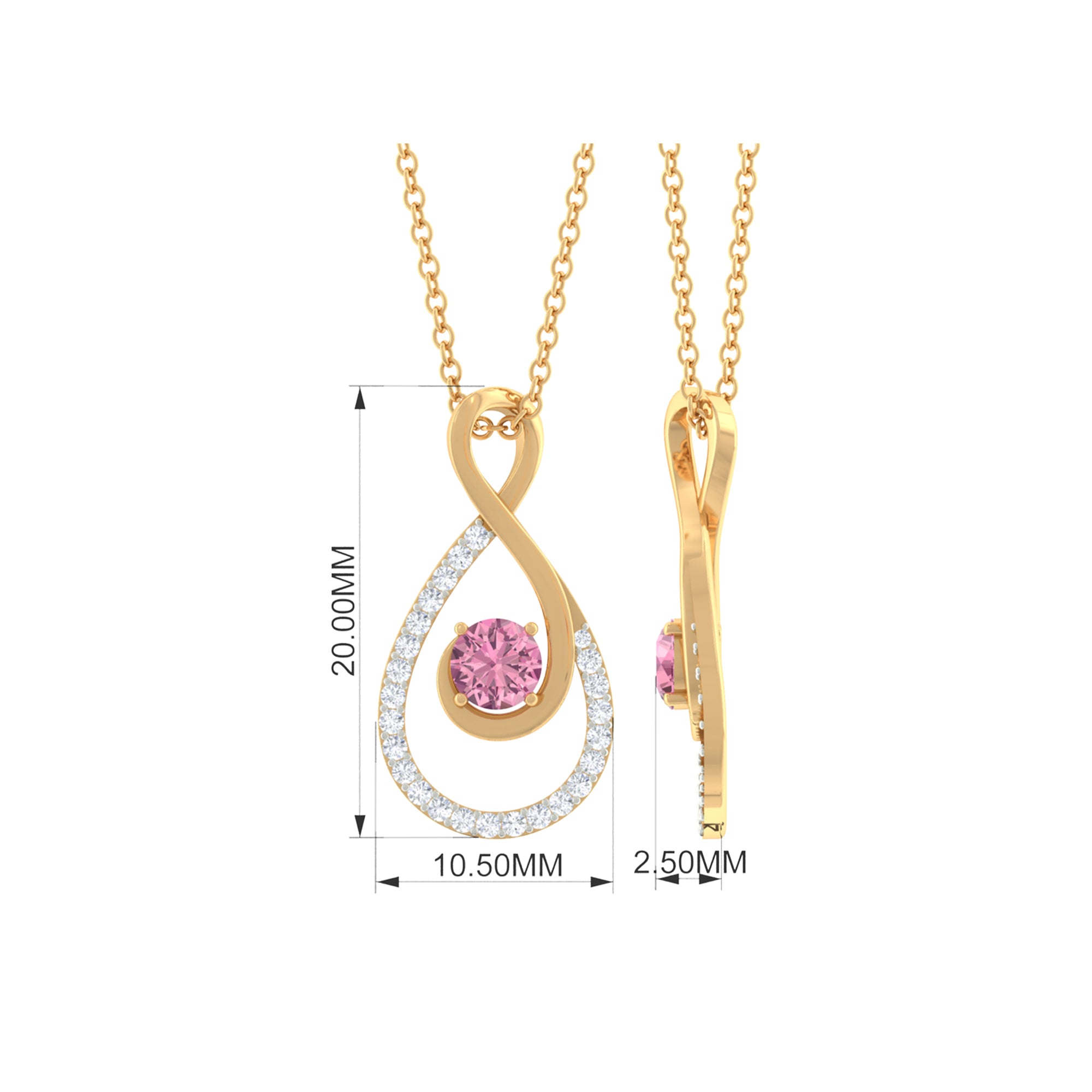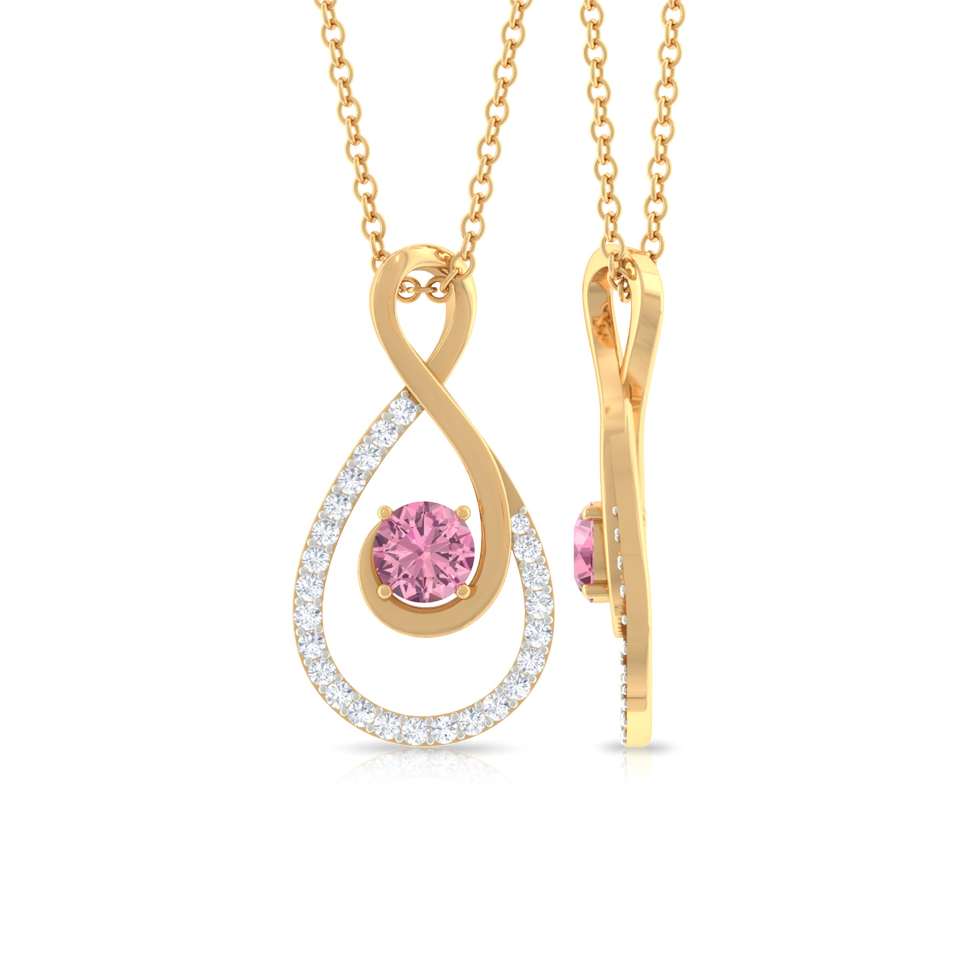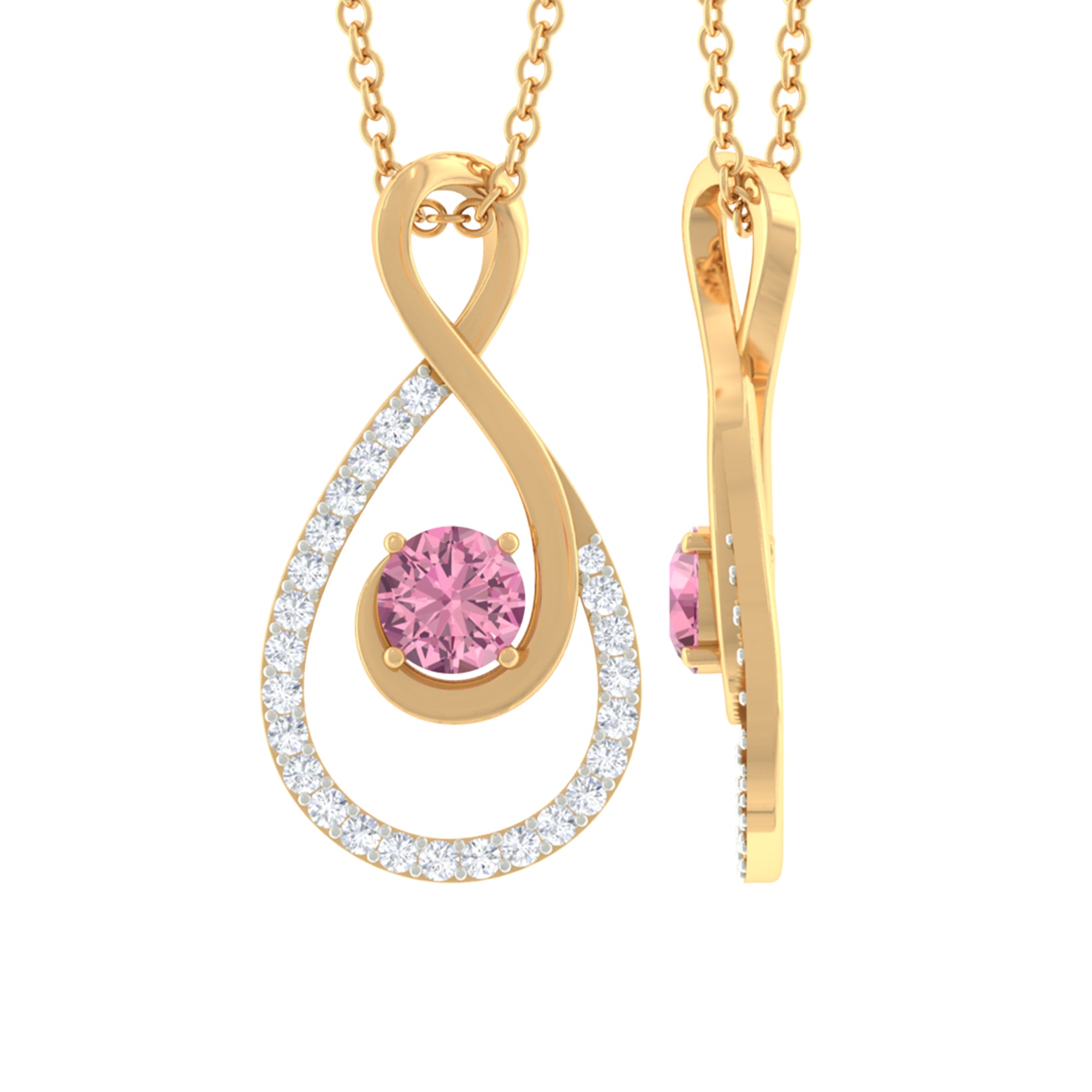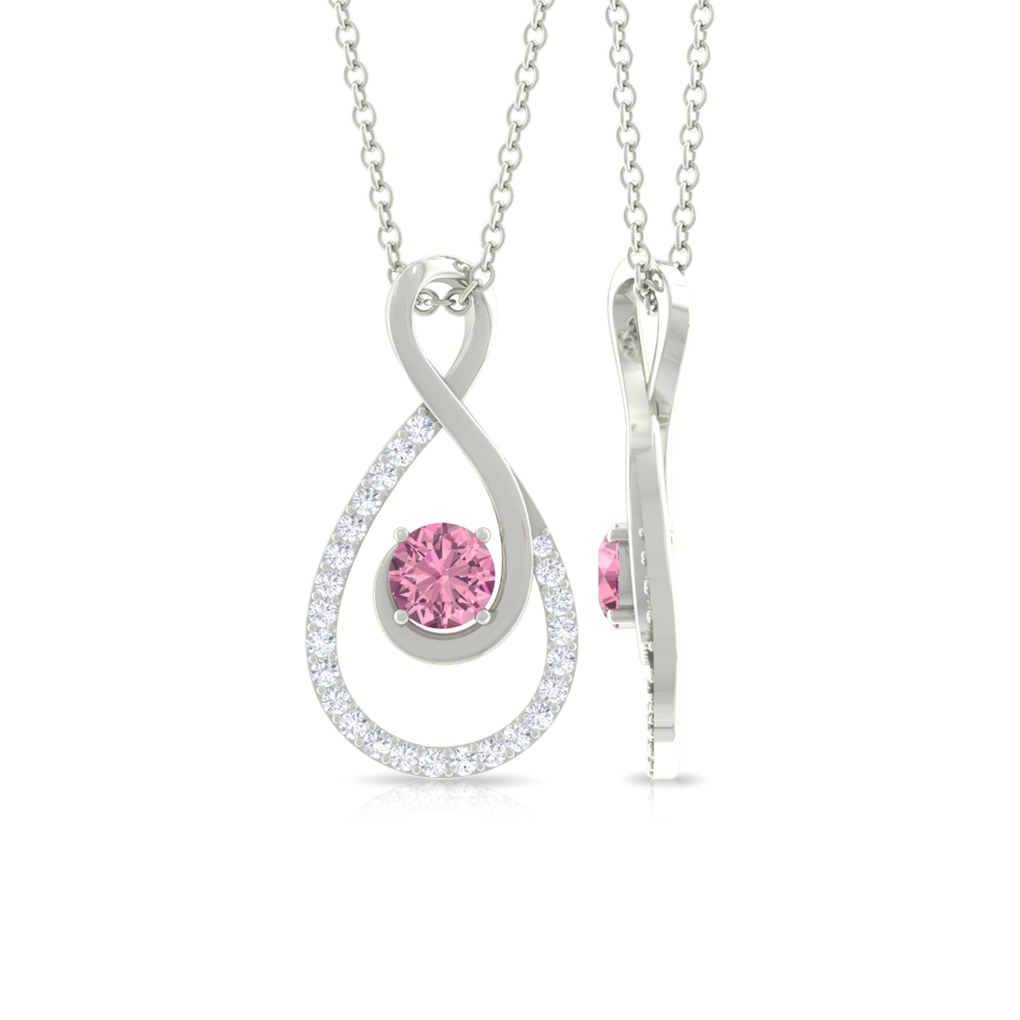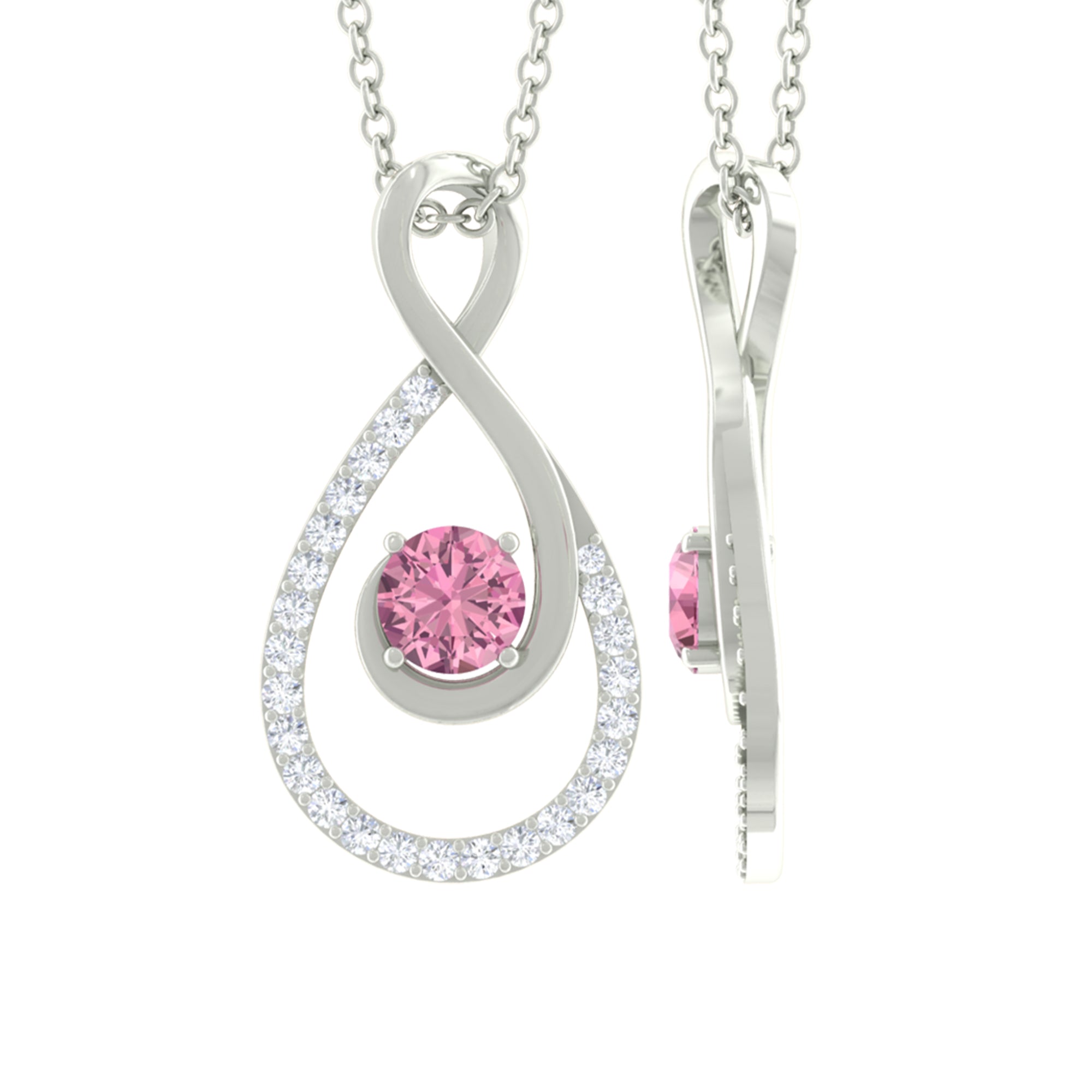 Experience the captivating beauty of the Infinity Pendant Necklace, where a sparkling Solitaire Pink Tourmaline gracefully dances at its center. Surrounding this stunning Pink Tourmaline, brilliant Round Diamond is elegantly encased, enhancing the shimmer and elegance of the Teardrop Pendant Necklace. It serves as a perfect gift for your special person on Valentines Day or your anniversary, showcasing your love and appreciation. Embrace the allure of this gorgeous piece, and let it be a symbol of your enduring affection and timeless style.
