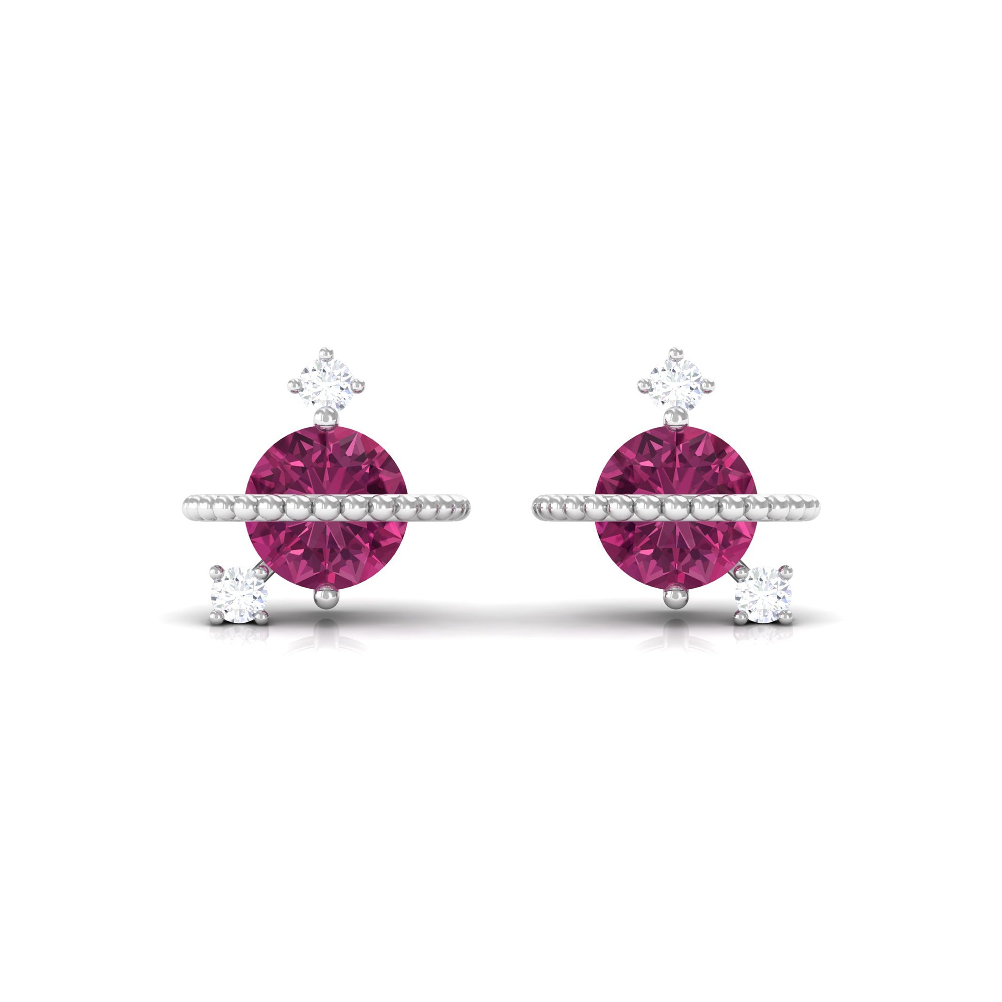 Pink Tourmaline Celestial Stud Earrings with Diamond