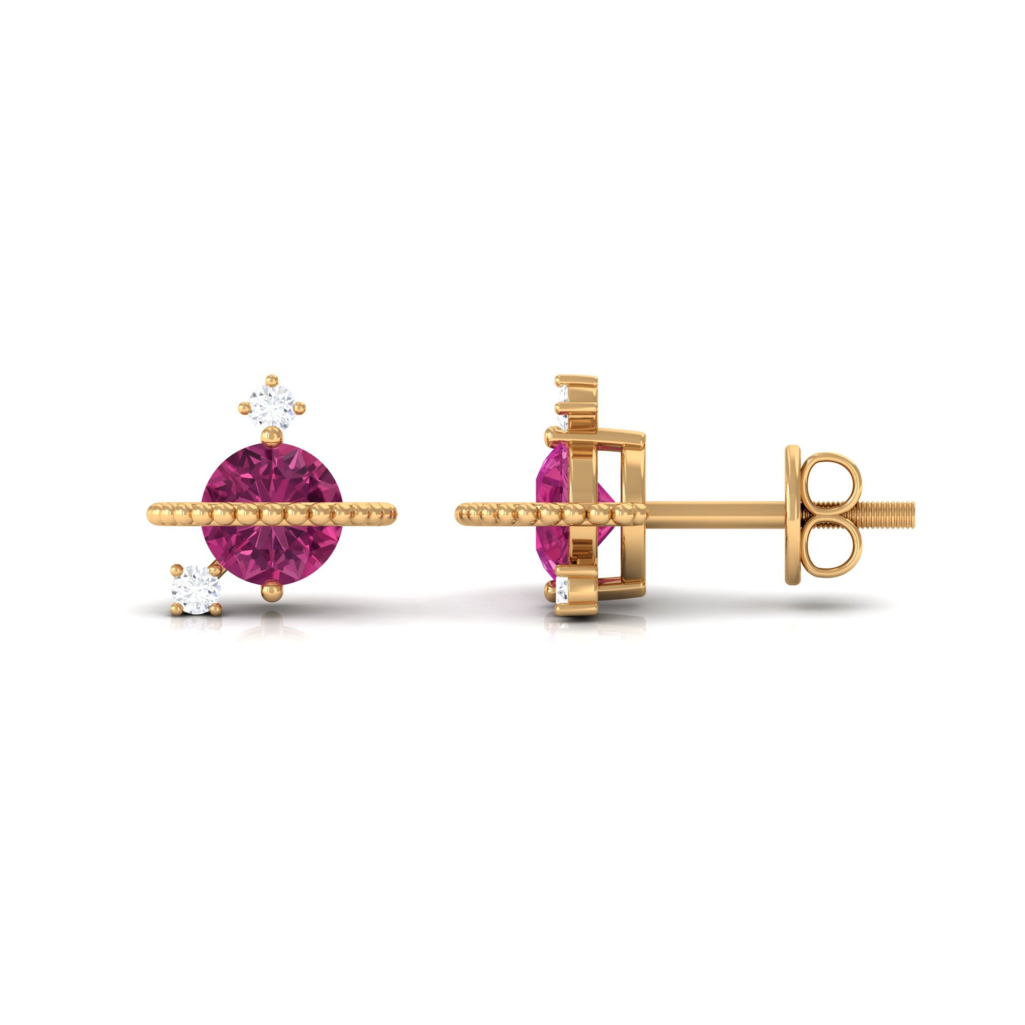 Add a celestial touch to your style with these Pink Tourmaline Celestial Stud Earrings. Sparkling Diamond enhances their enchanting and captivating design.