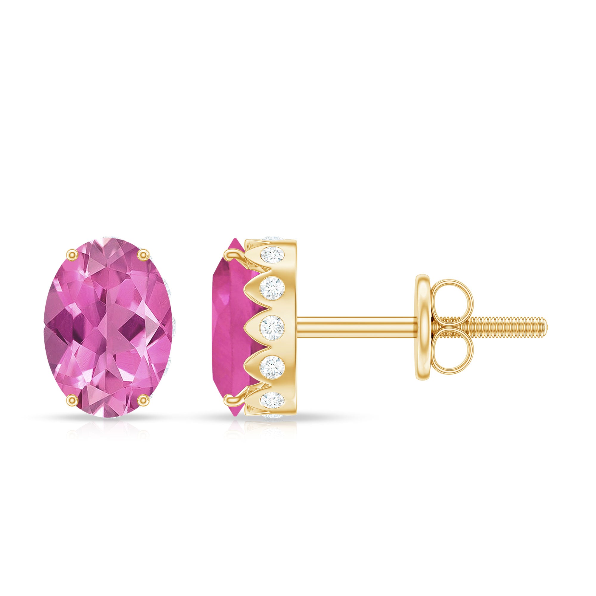 Pink Tourmaline Oval Stud Earrings with Diamond