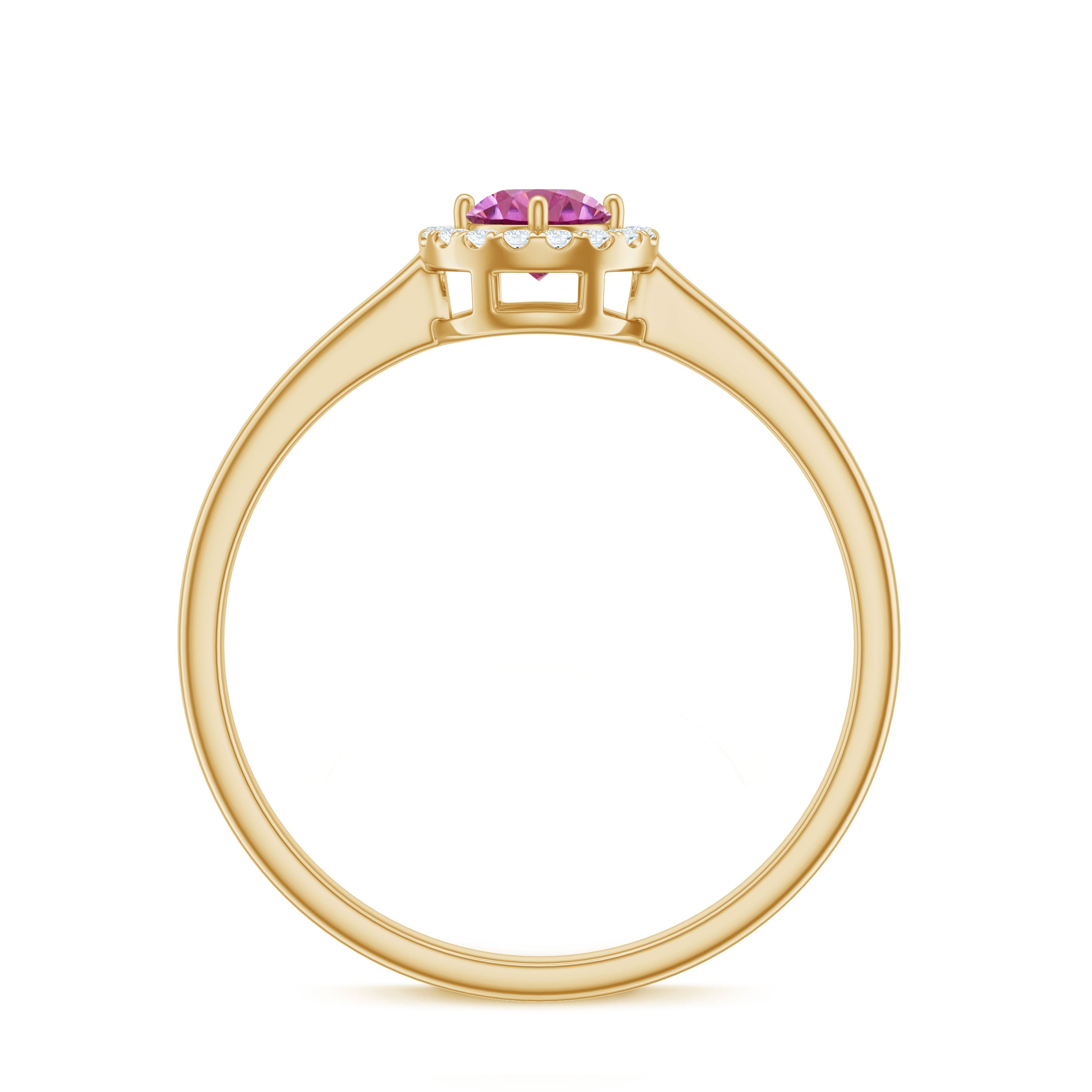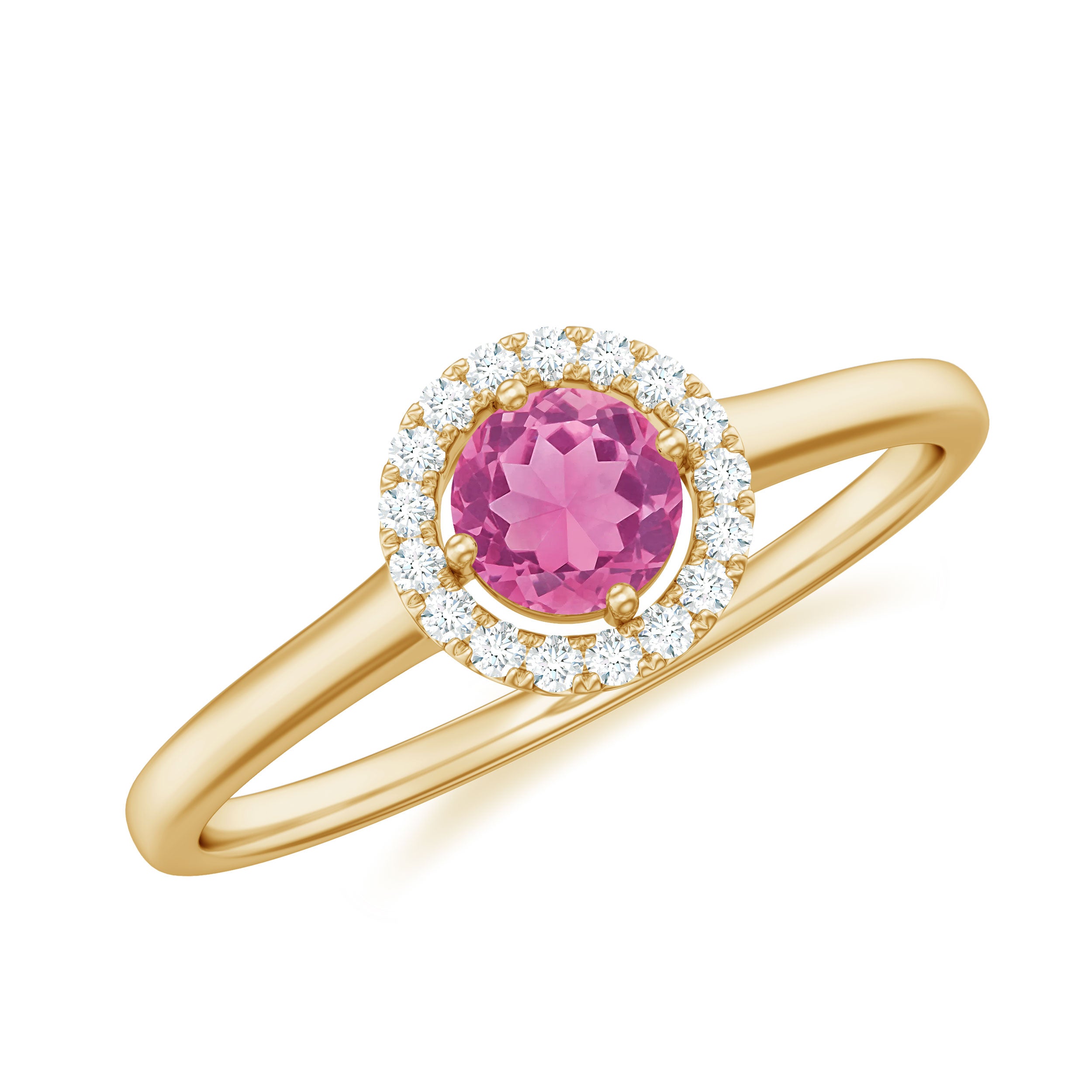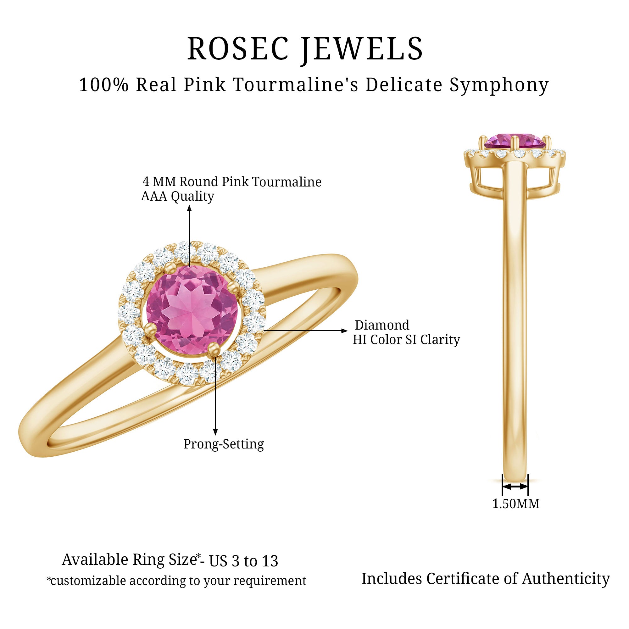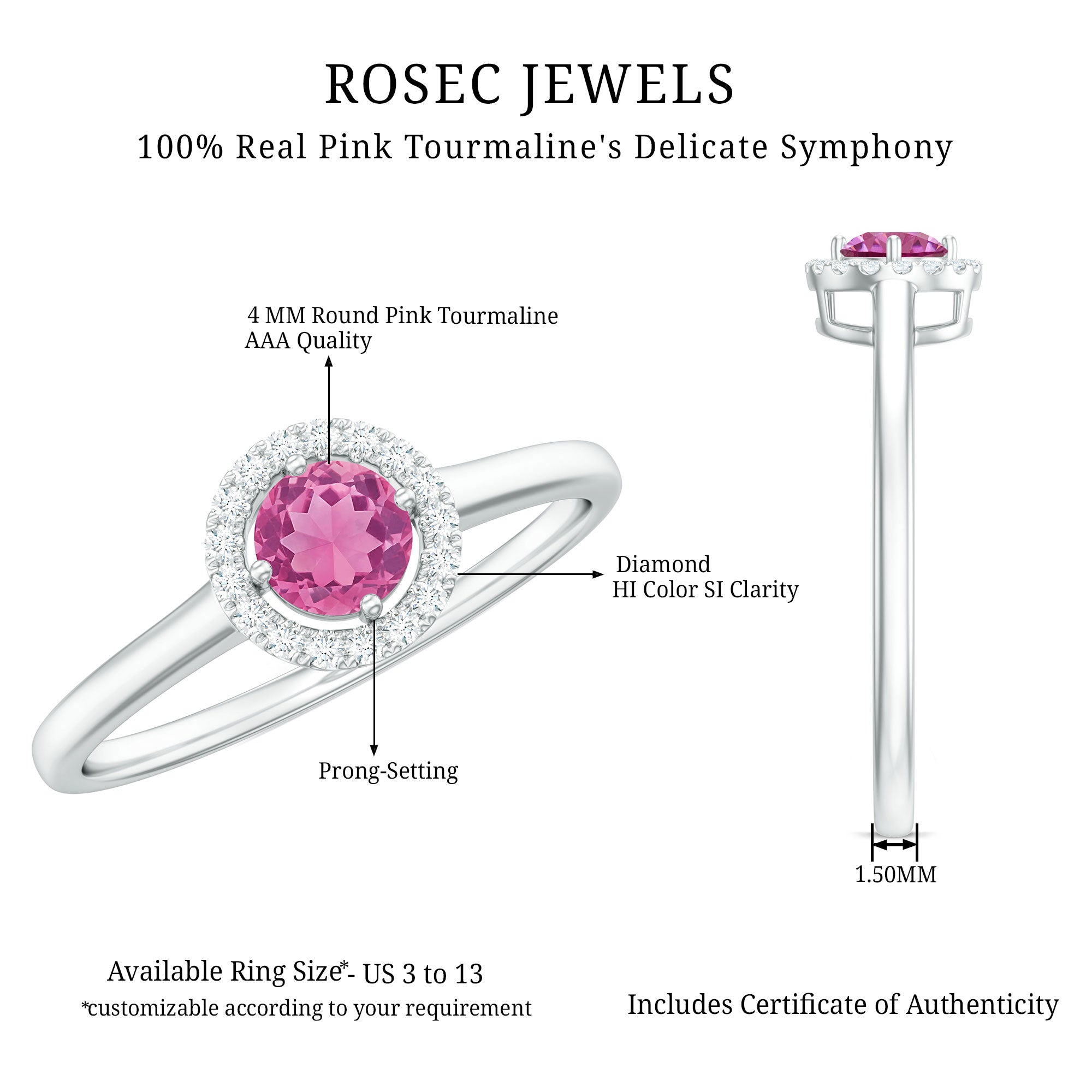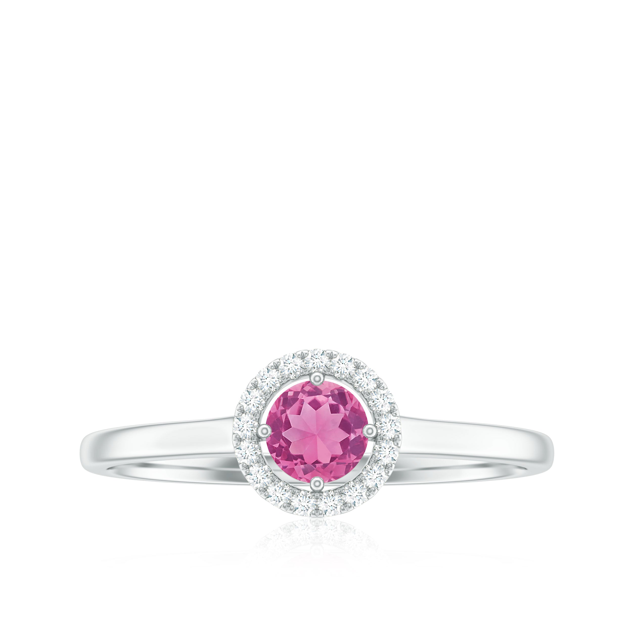 Capture the essence of a heartfelt promise with this Promise Ring. A captivating Pink Tourmaline gemstone symbolizes affection and sincerity. Embraced by a brilliant halo of Diamond gemstones, it radiates elegance and charm. Crafted with precision and care, it serves as a radiant reminder of your enduring devotion and cherished moments together.