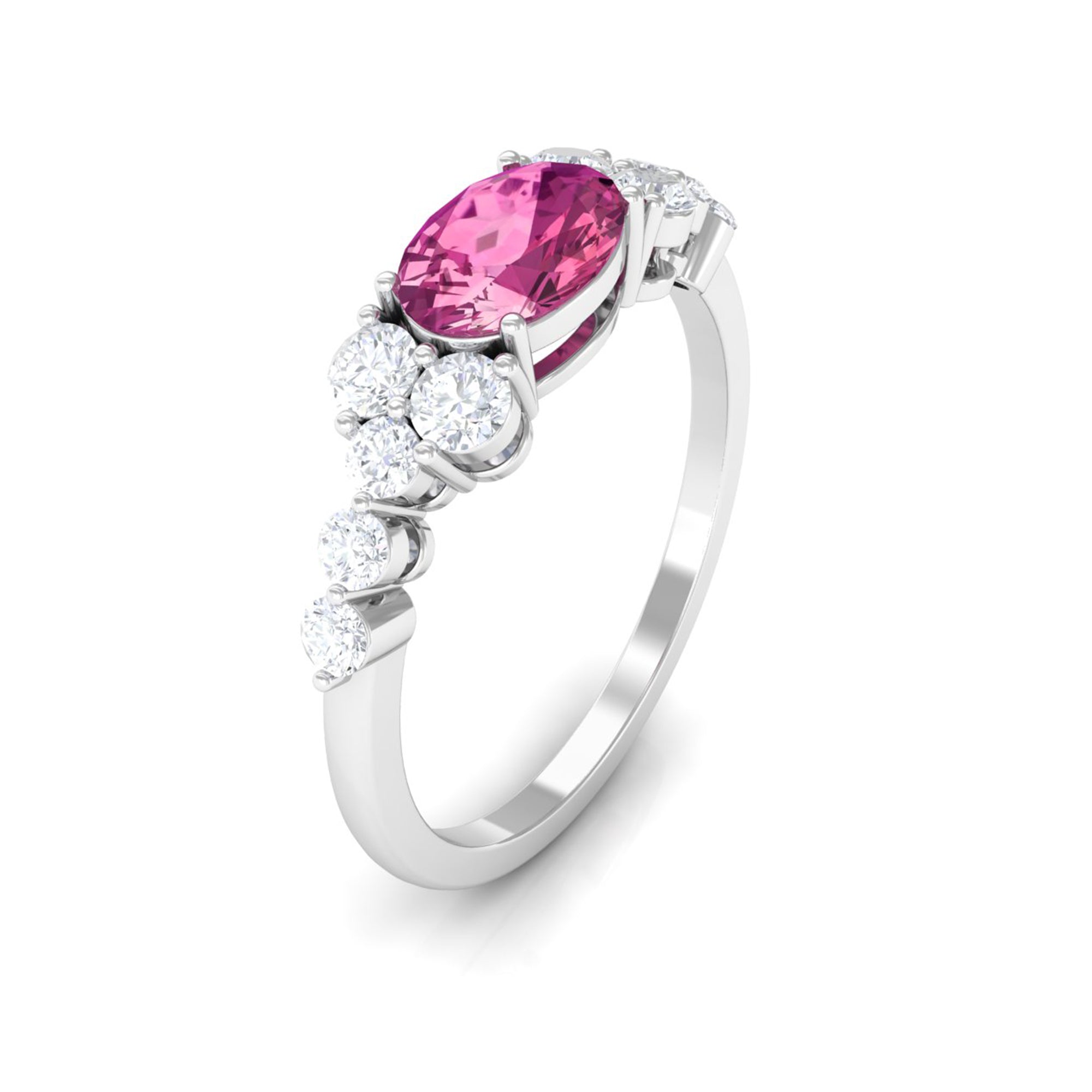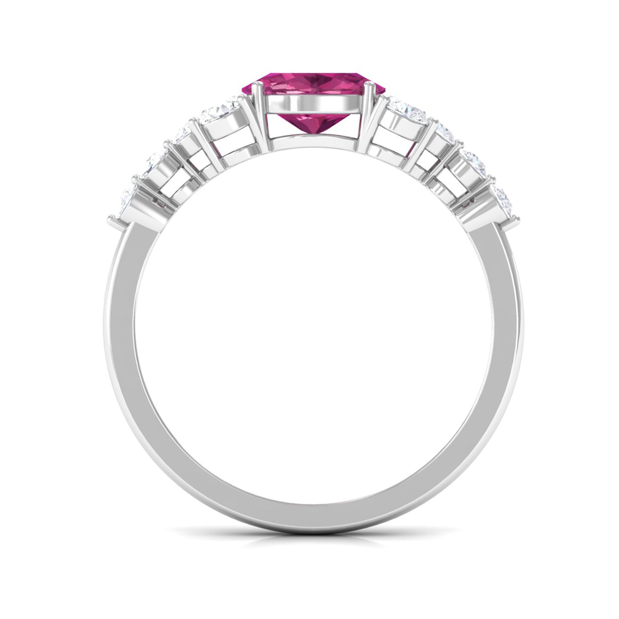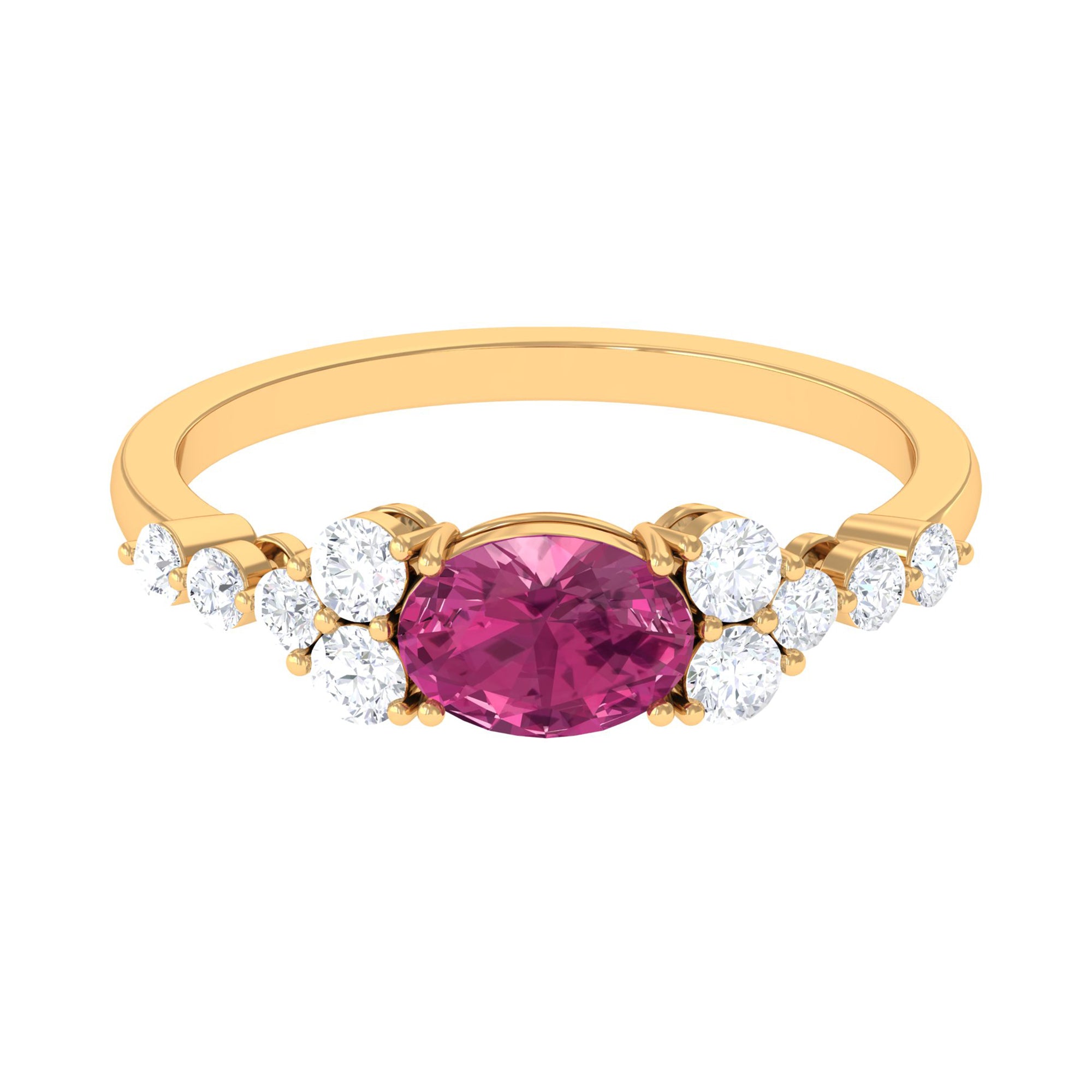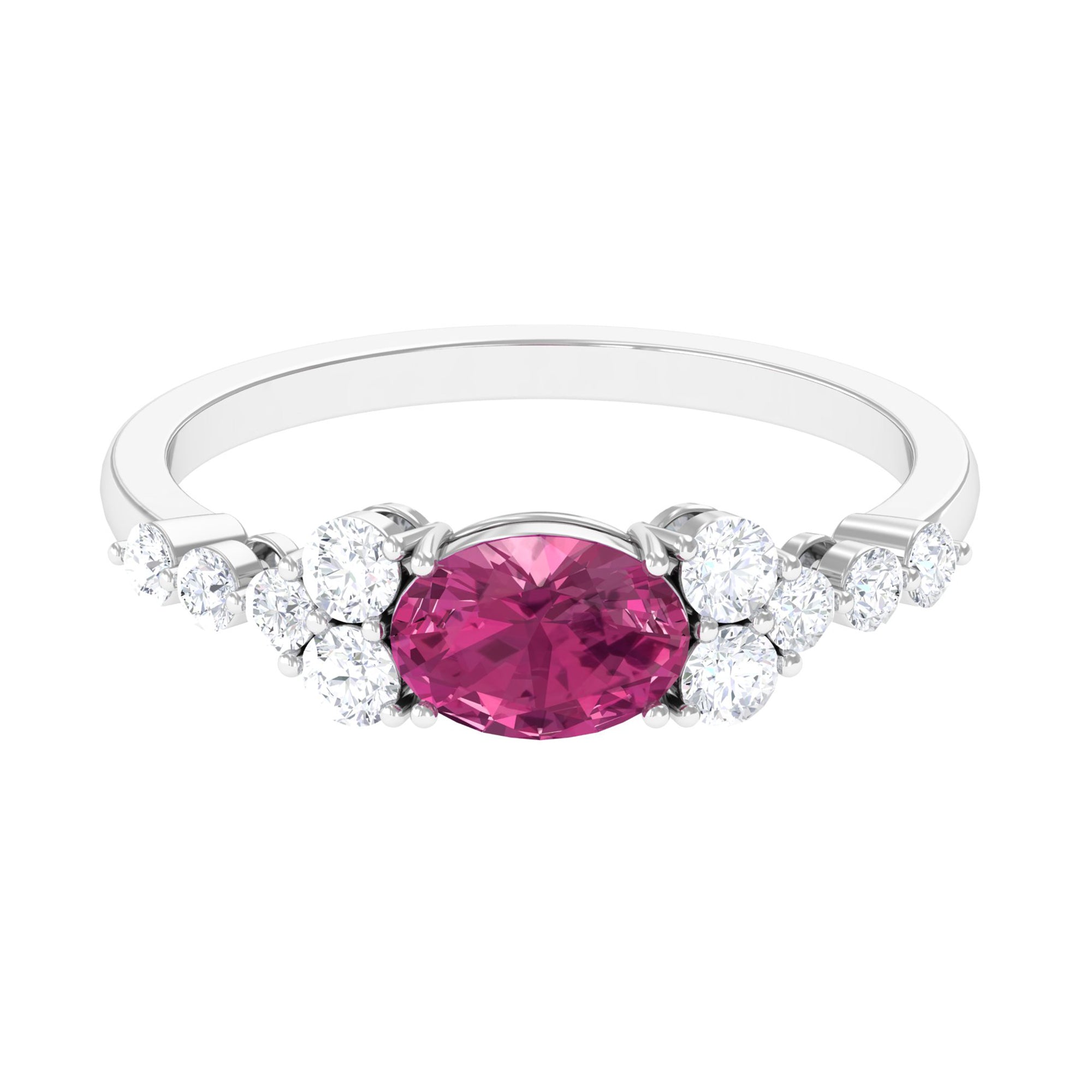 Pink Tourmaline Solitaire East West Ring with Diamond Side Stones