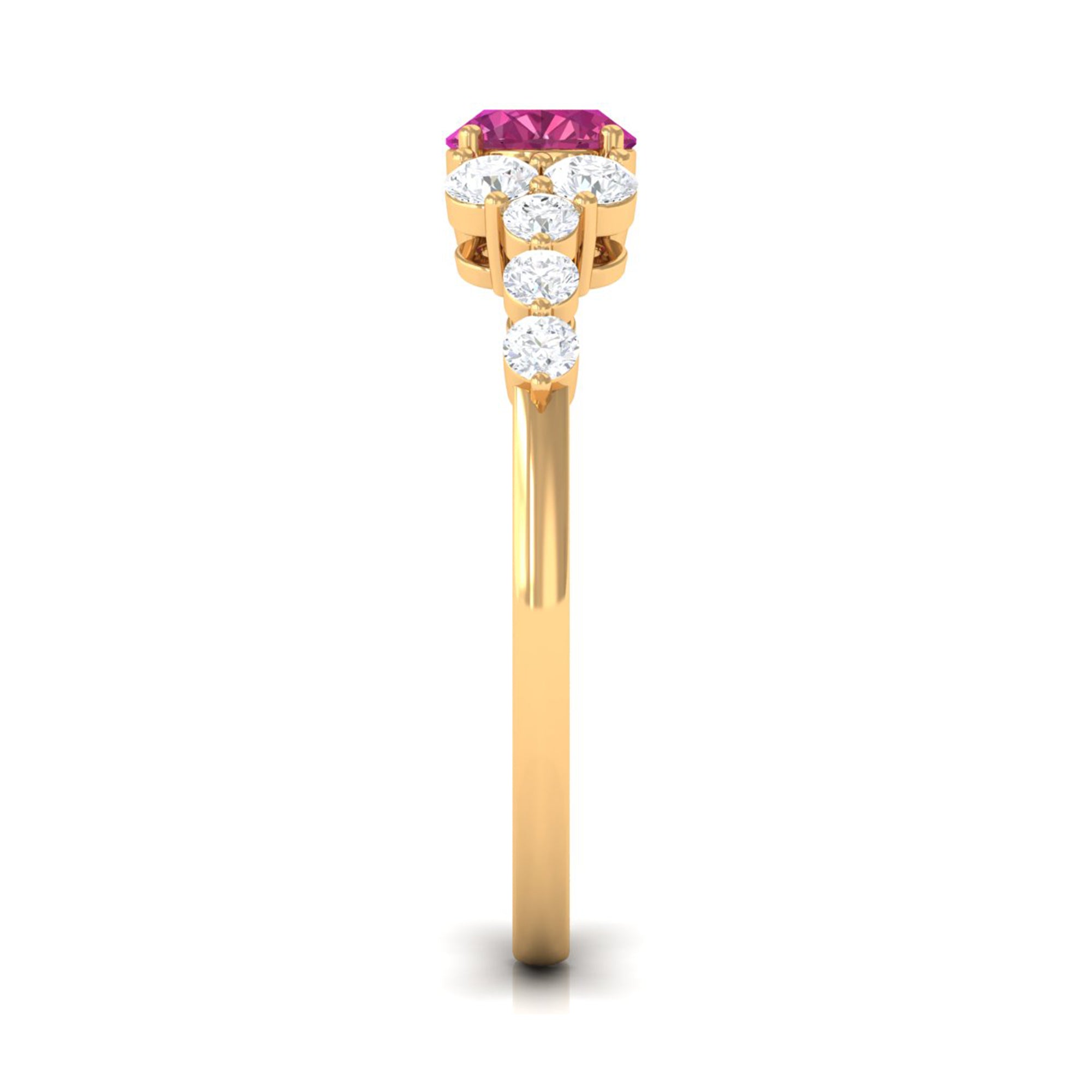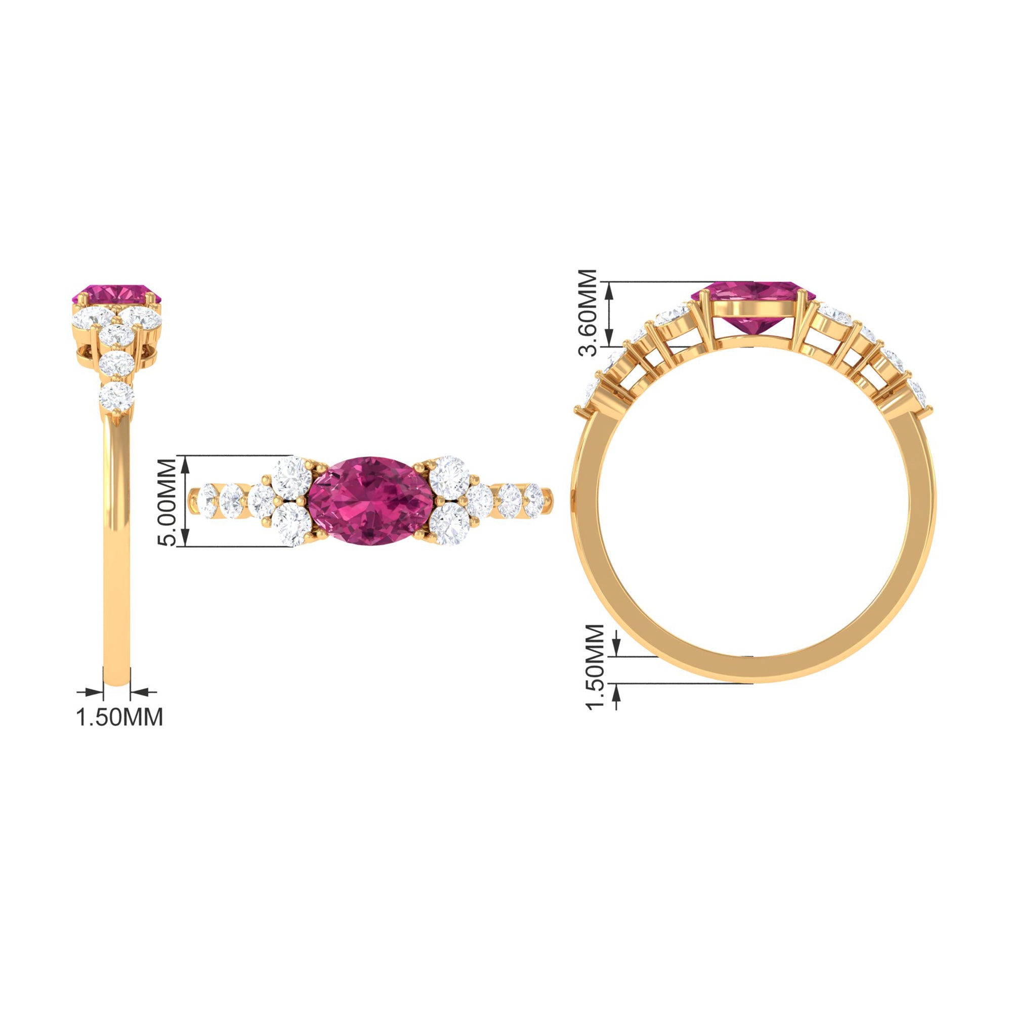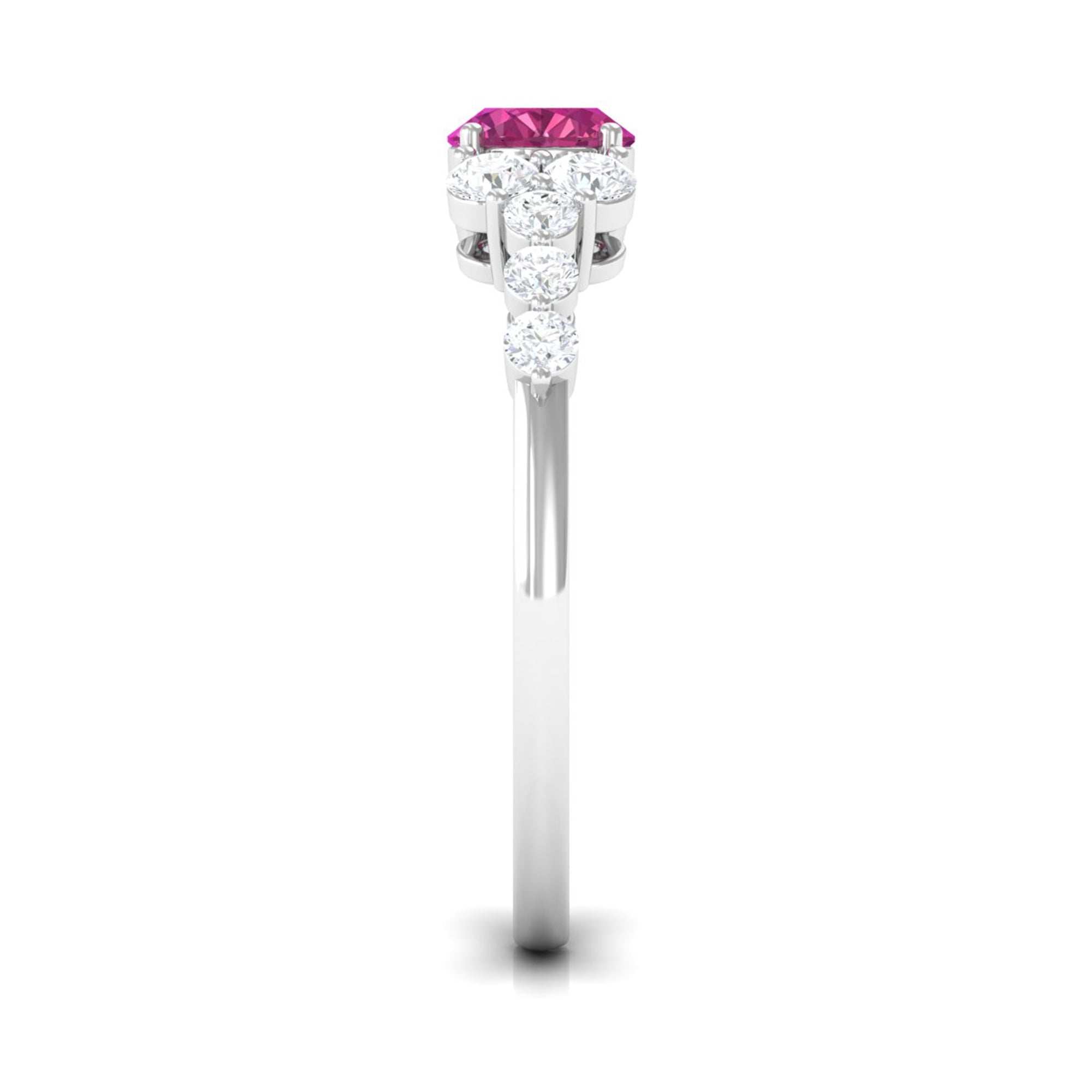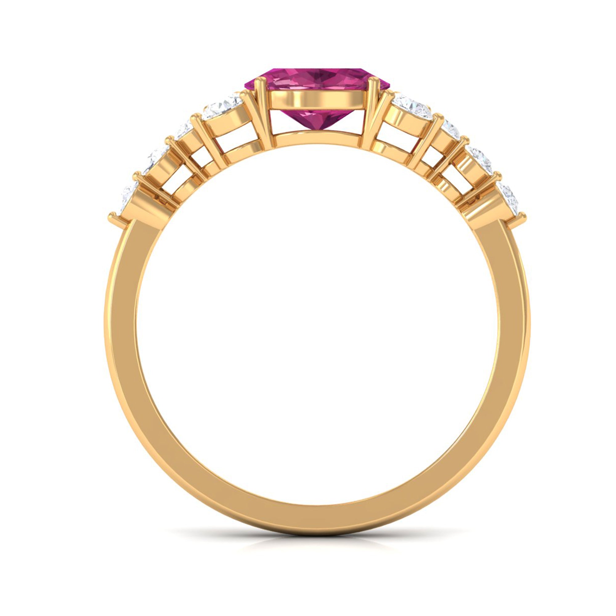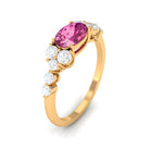 Pink Tourmaline Solitaire East West Ring with Diamond Side Stones