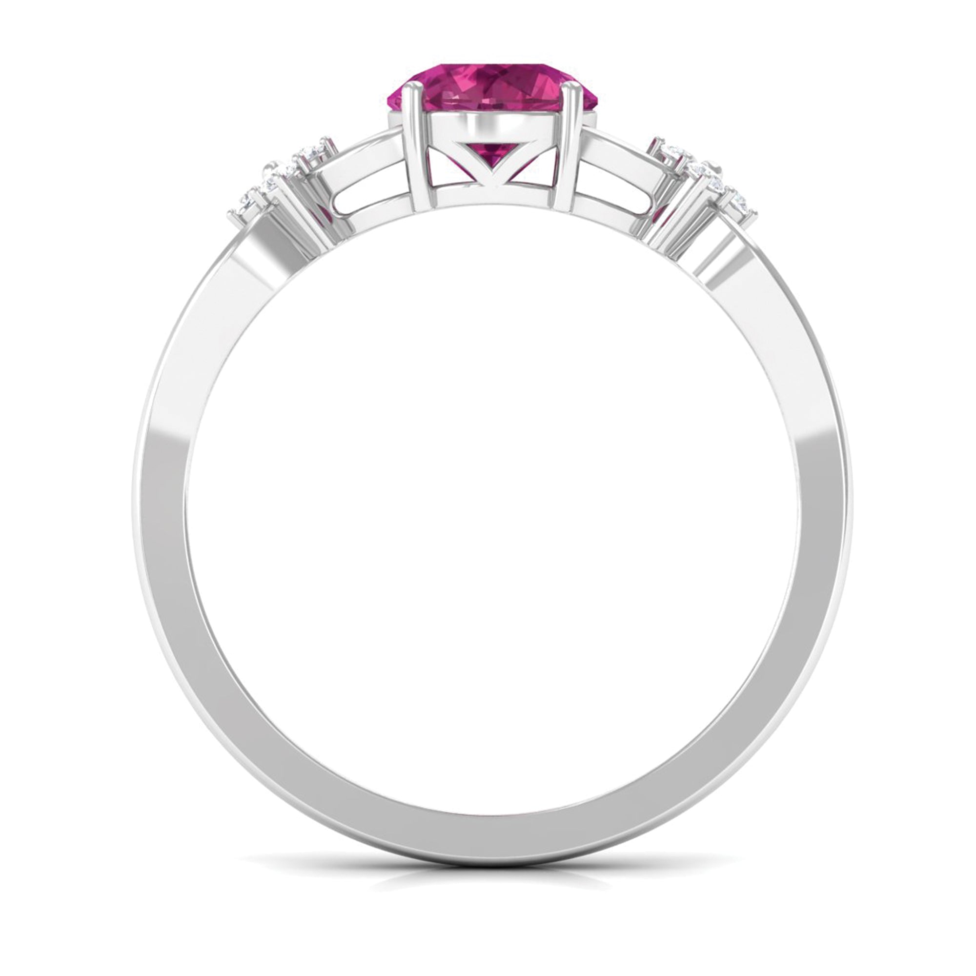 Pink Tourmaline Solitaire Floral Ring with Diamond