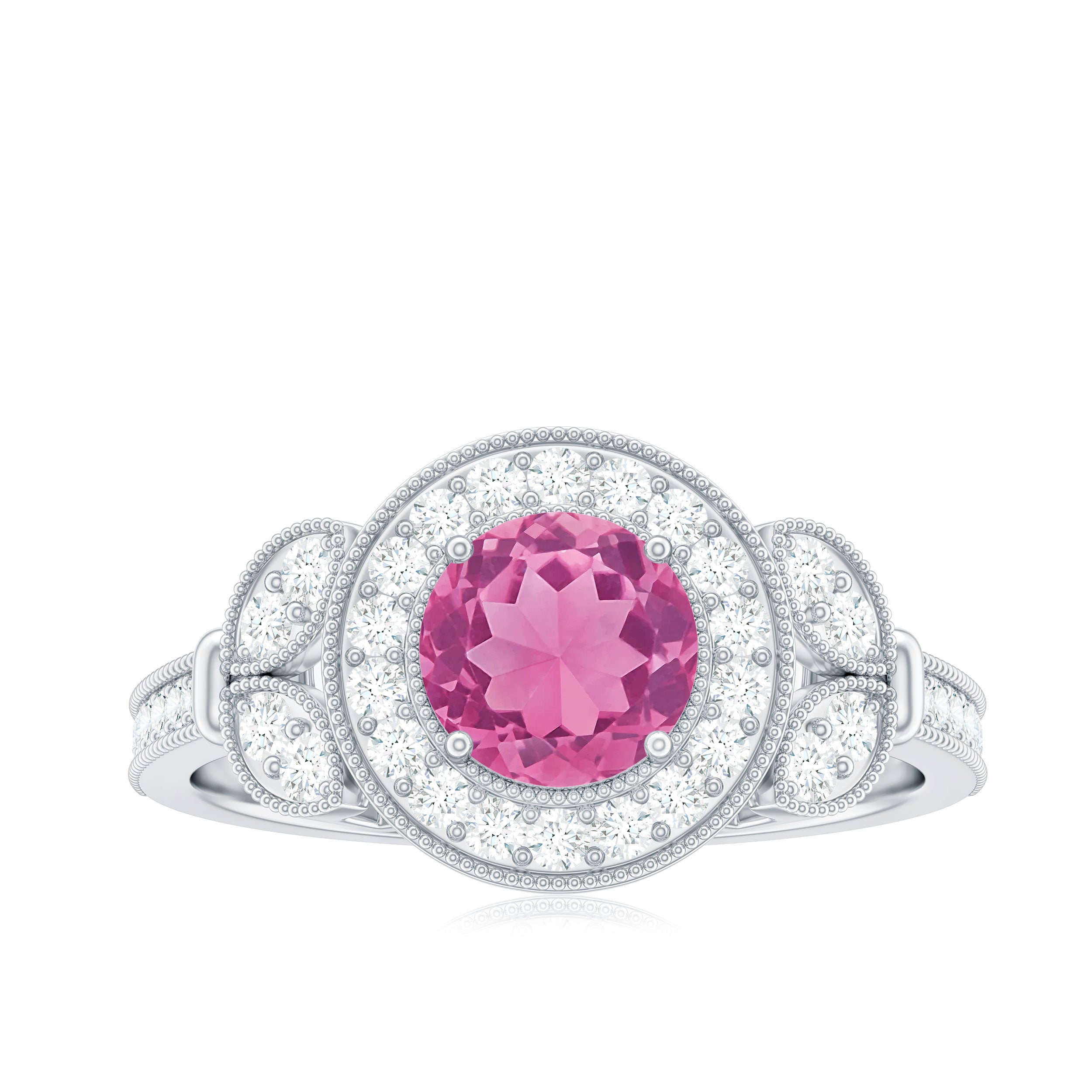 Pink Tourmaline Vintage Style Engagement Ring with Diamond