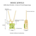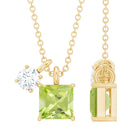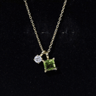 Princess Cut 6 MM Genuine Peridot Necklace with Silver Chain