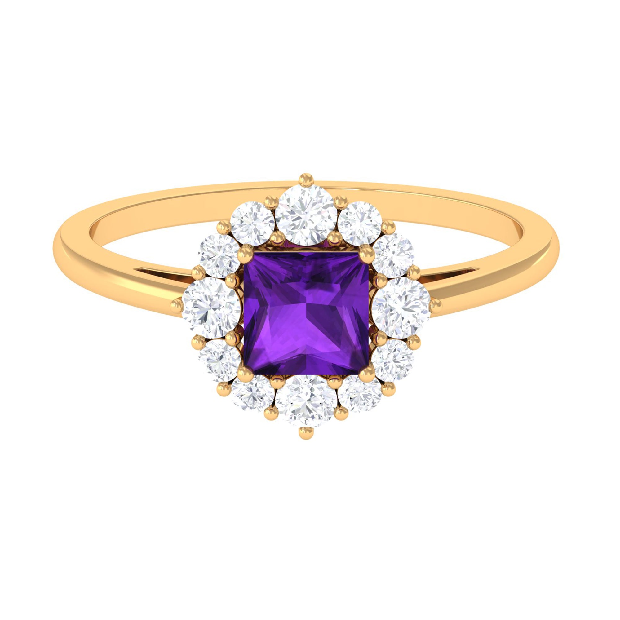 Princess Cut Amethyst and Diamond Halo Engagement Ring