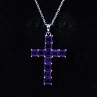 Princess Cut Amethyst Cross Pendant Necklace with Chain