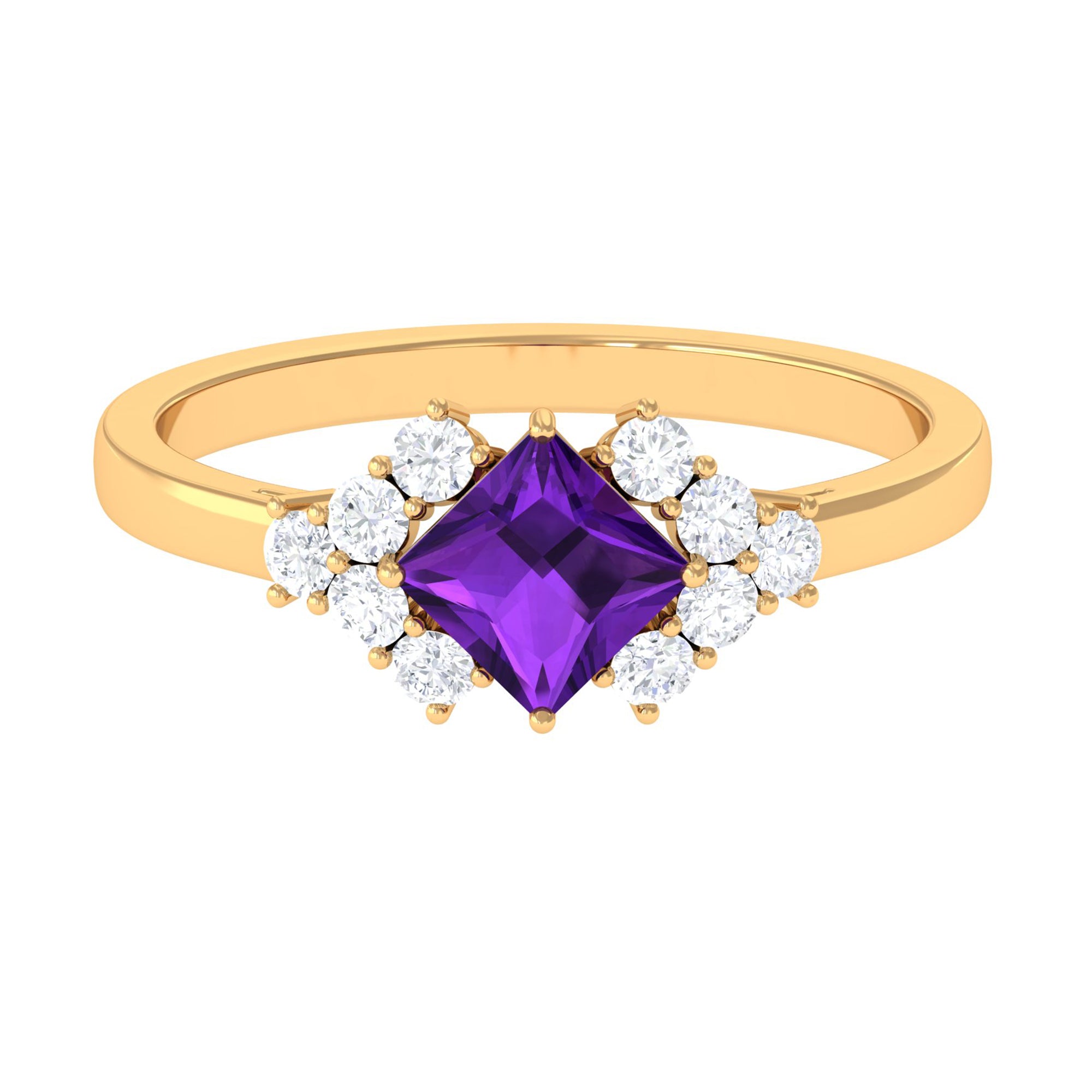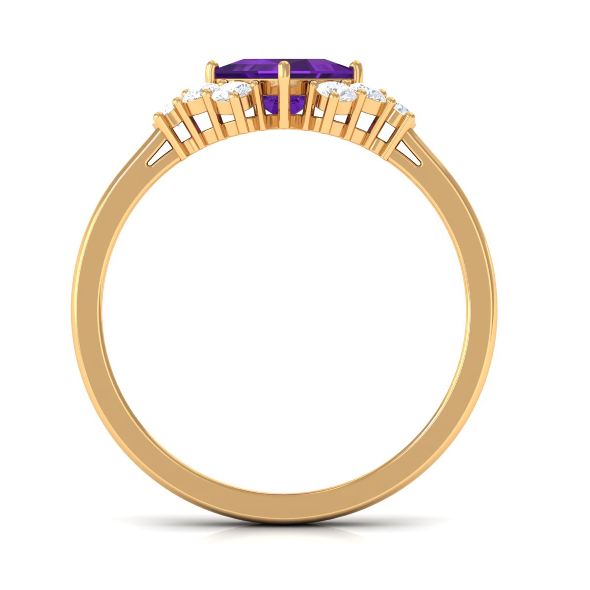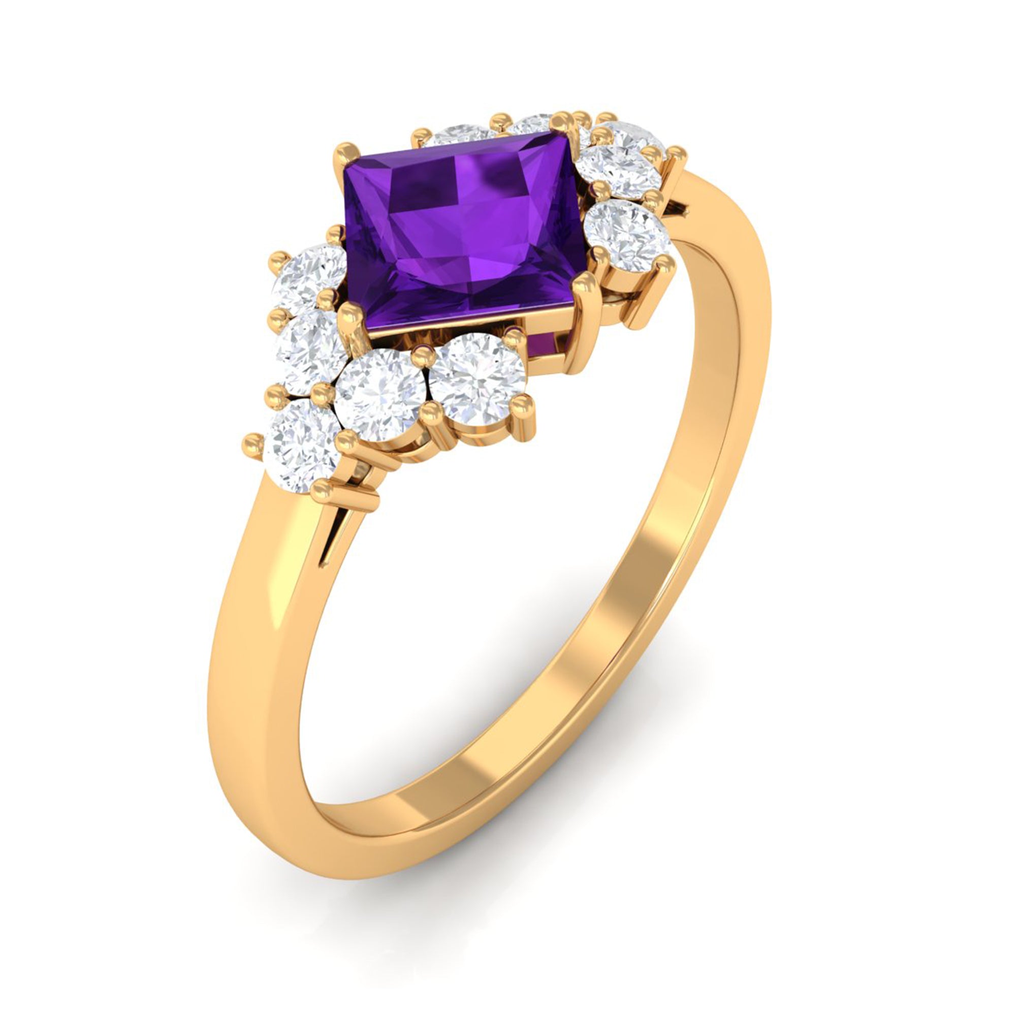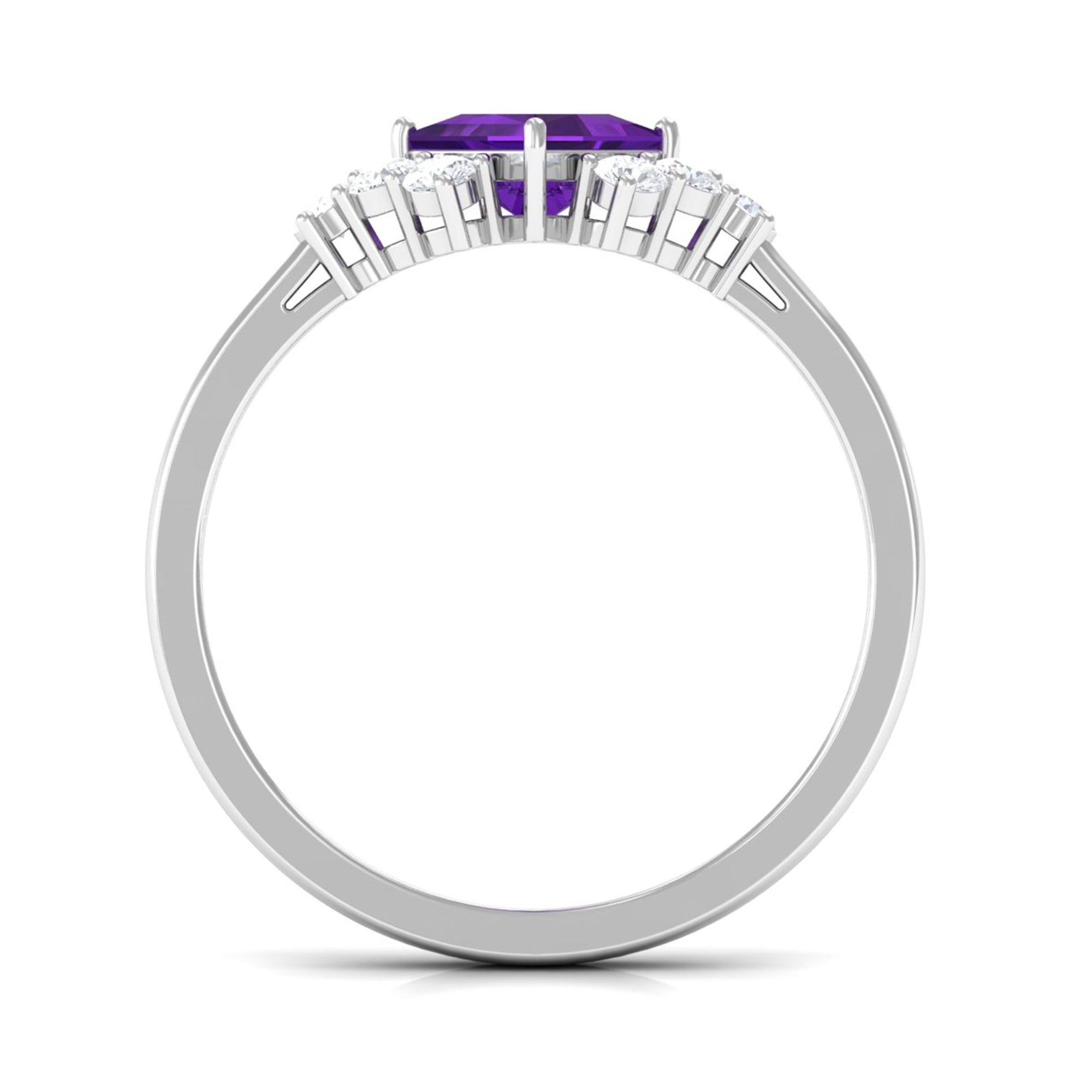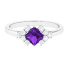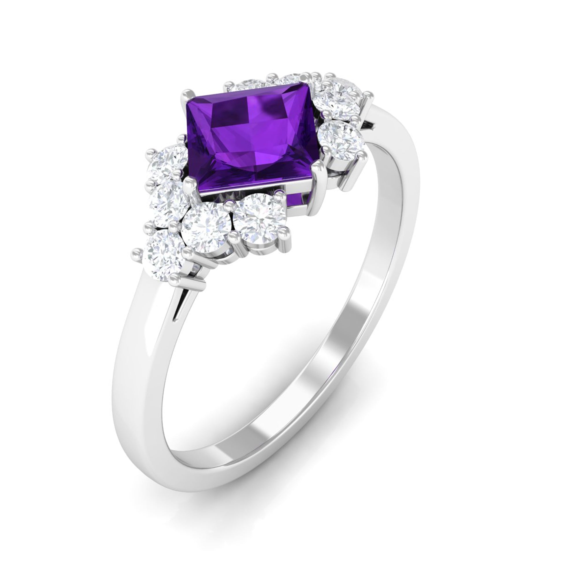 Princess Cut Amethyst Designer Engagement Ring with Diamond
