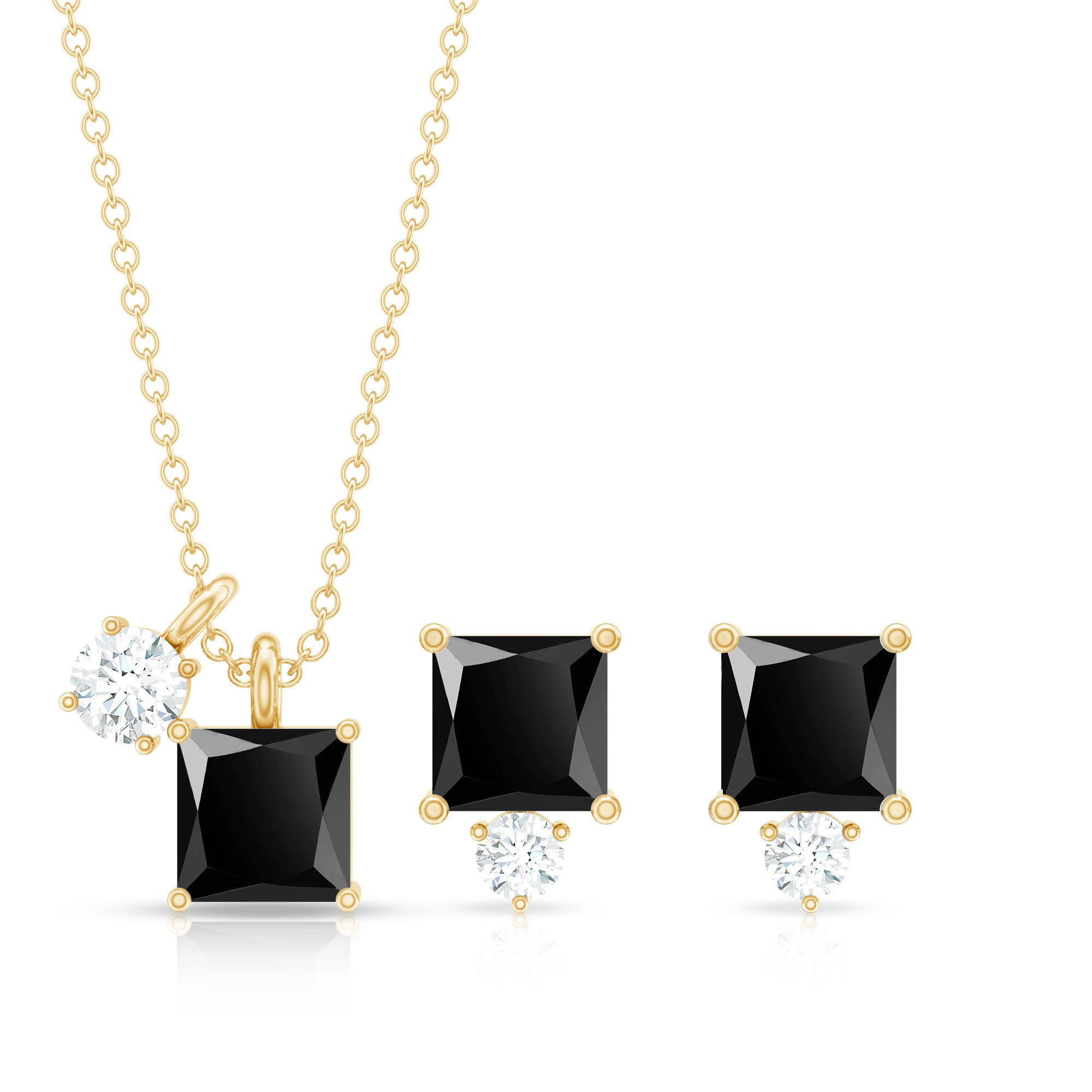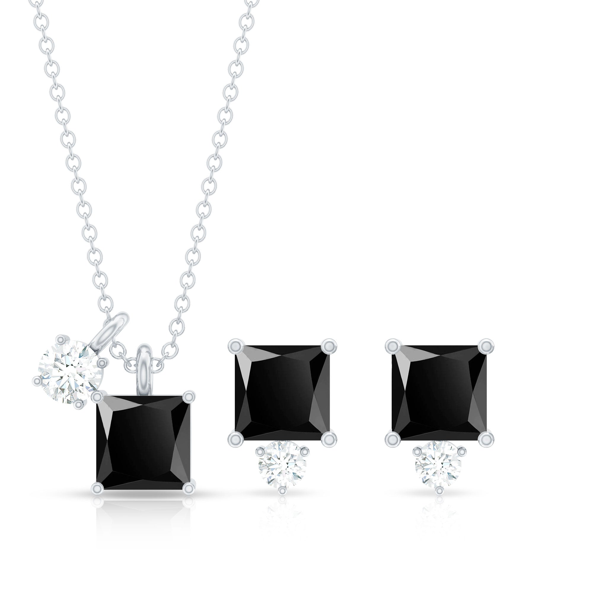 Princess Cut Black Onyx Jewelry Set with Diamond