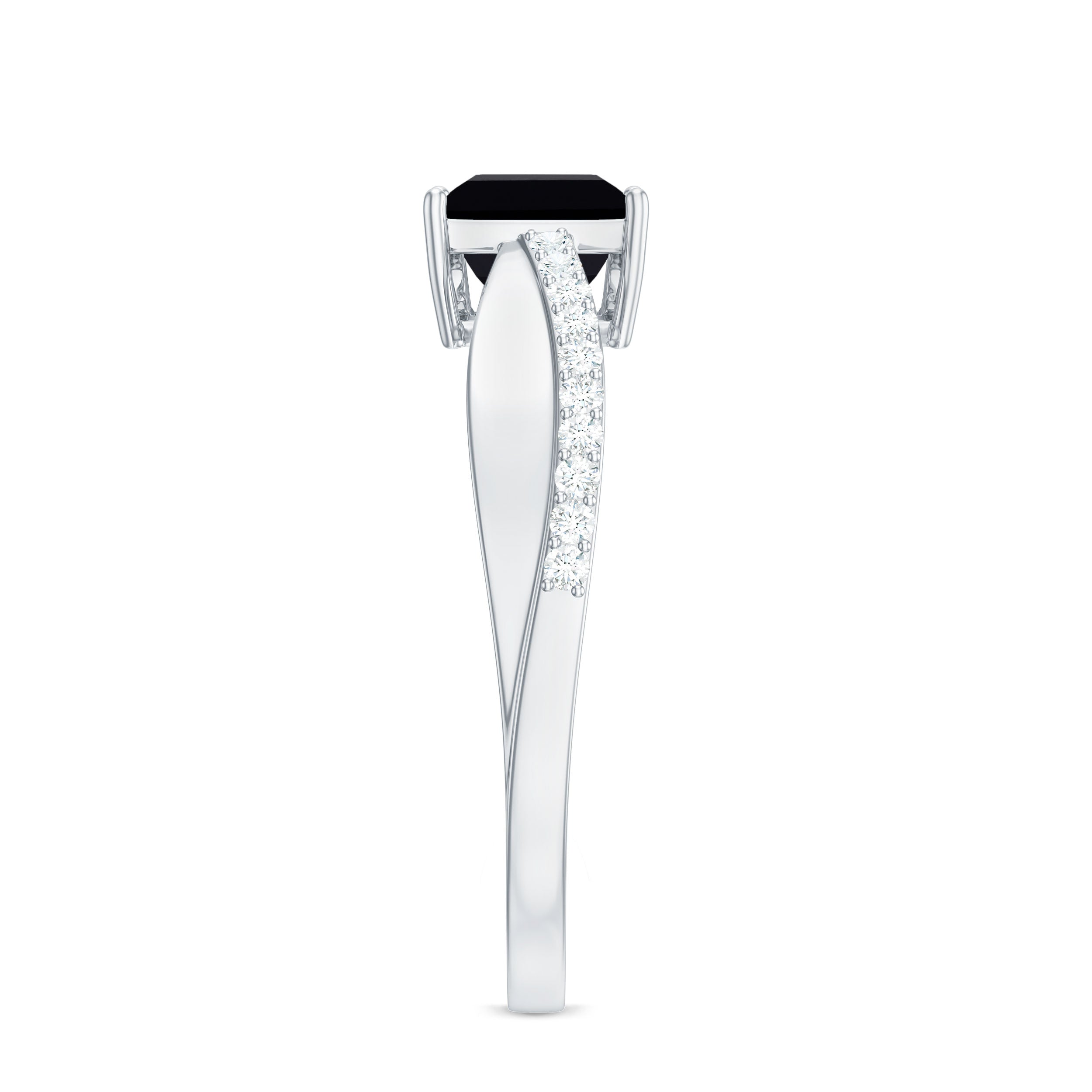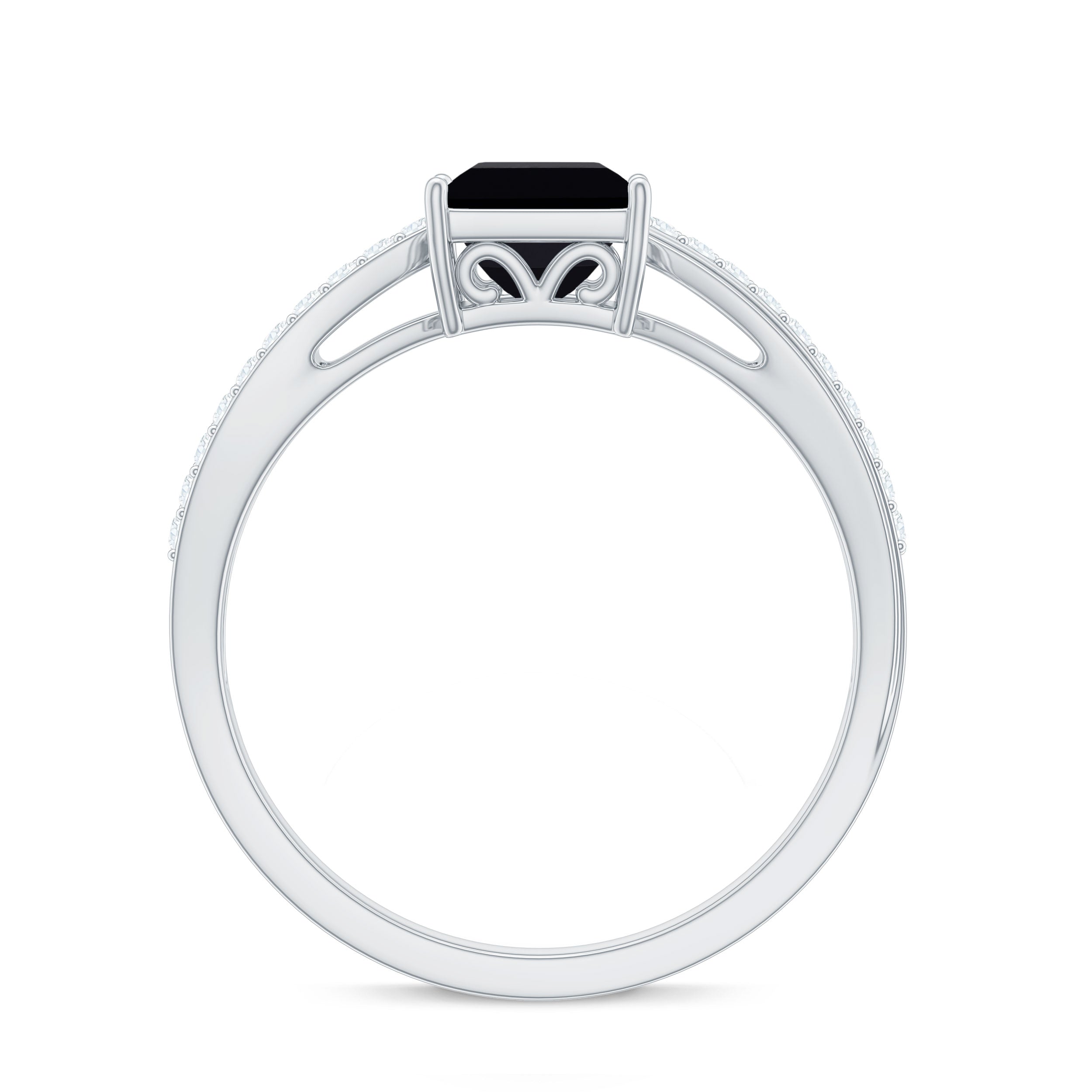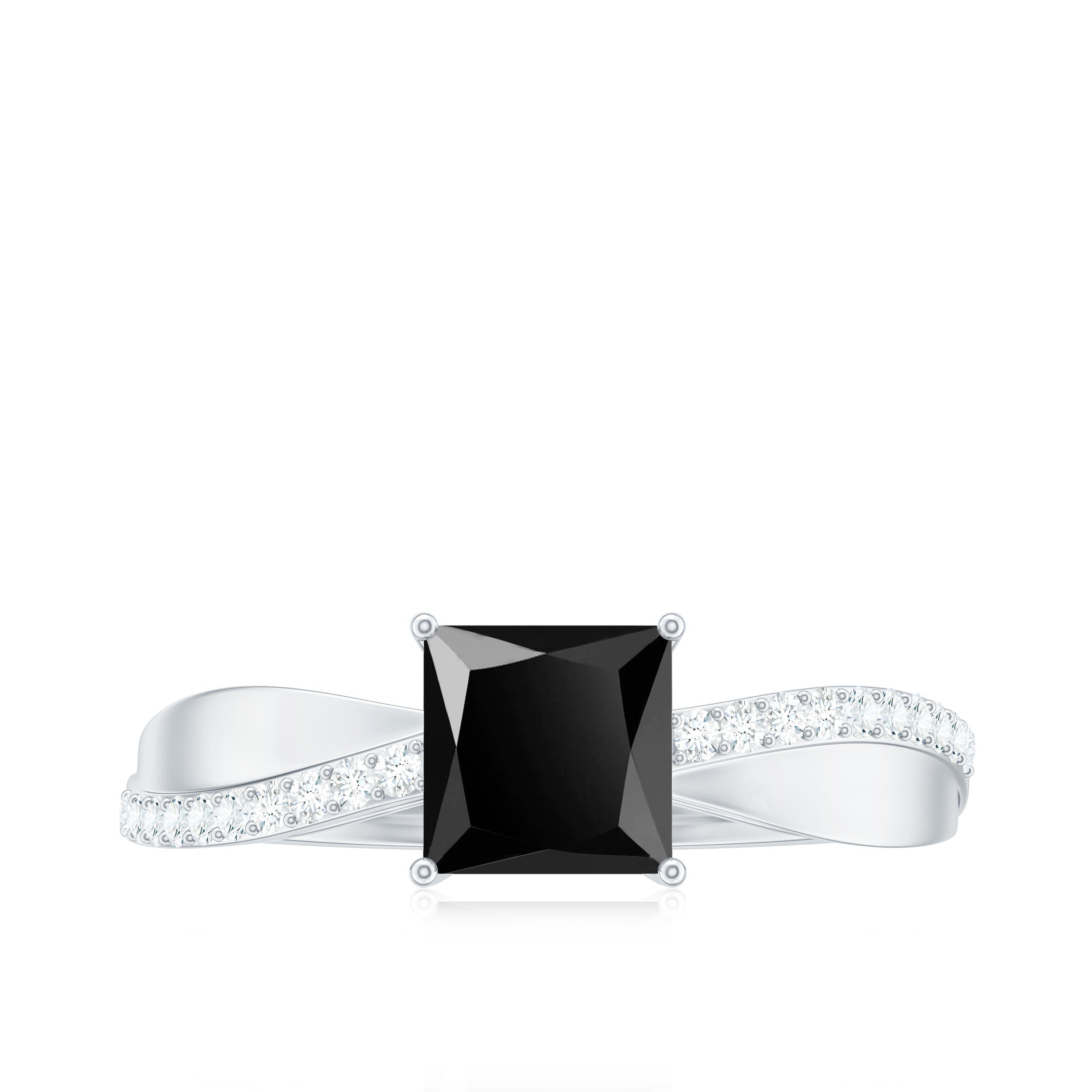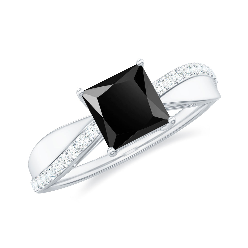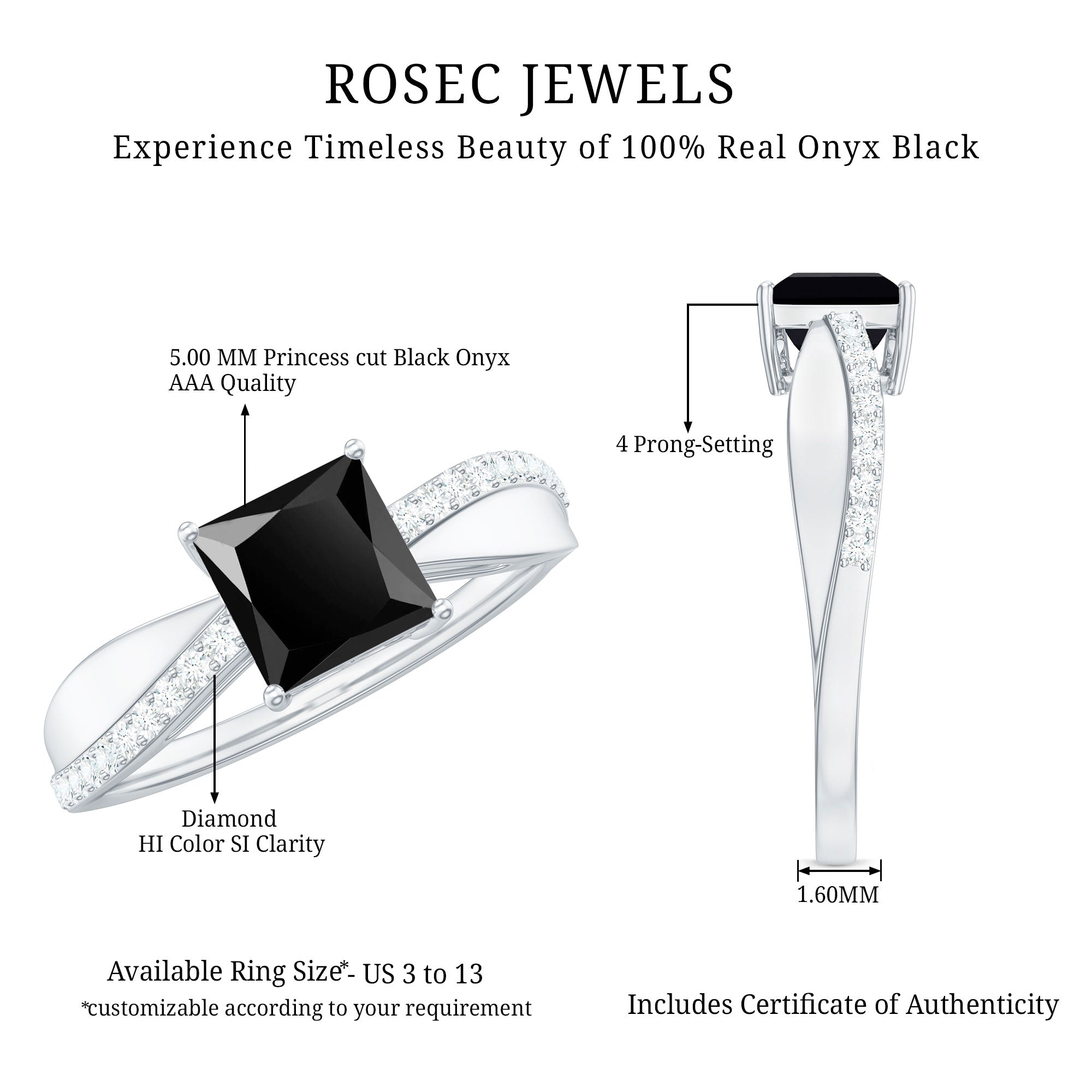 5mm Princess Cut Black Onyx Solitaire Engagement Ring with Diamond