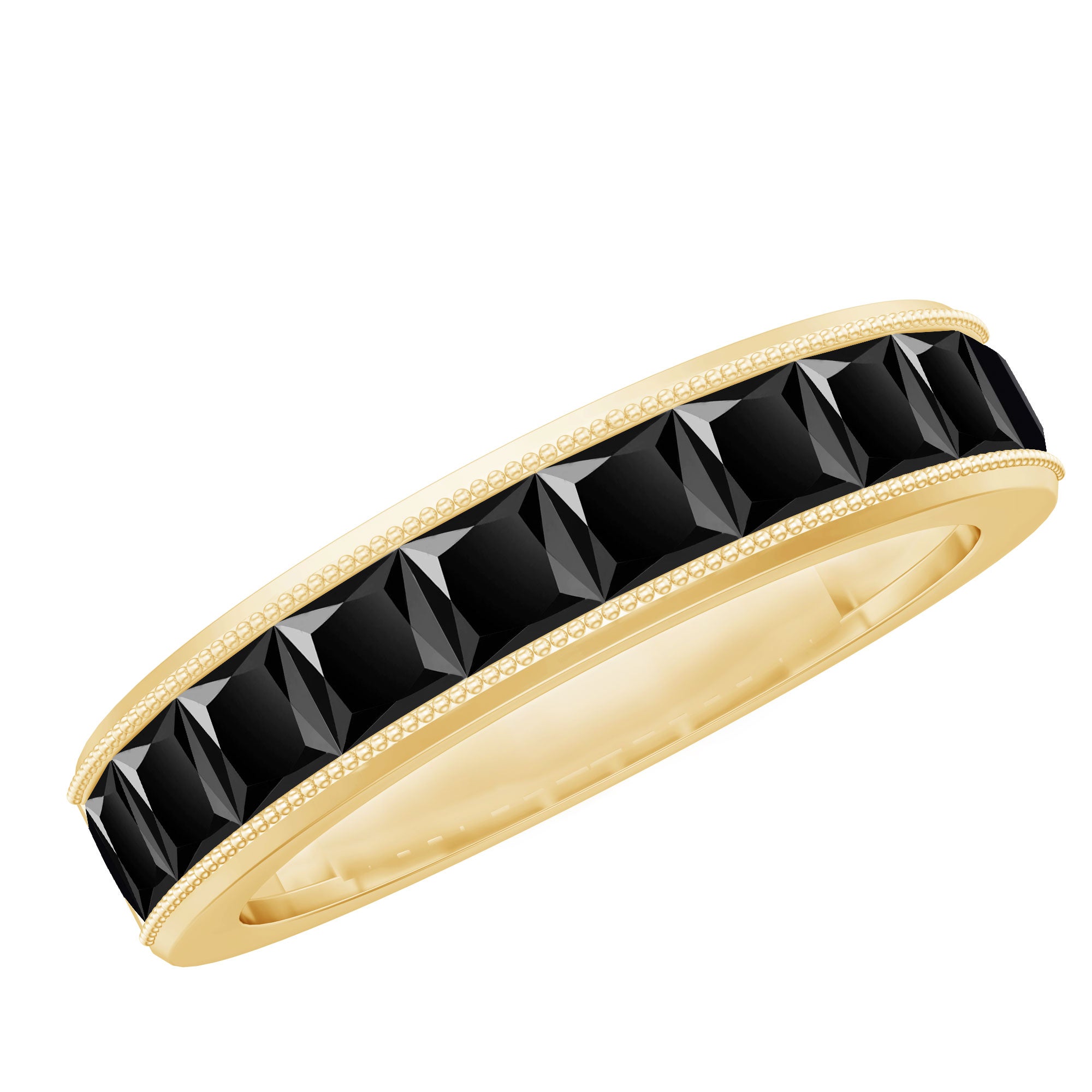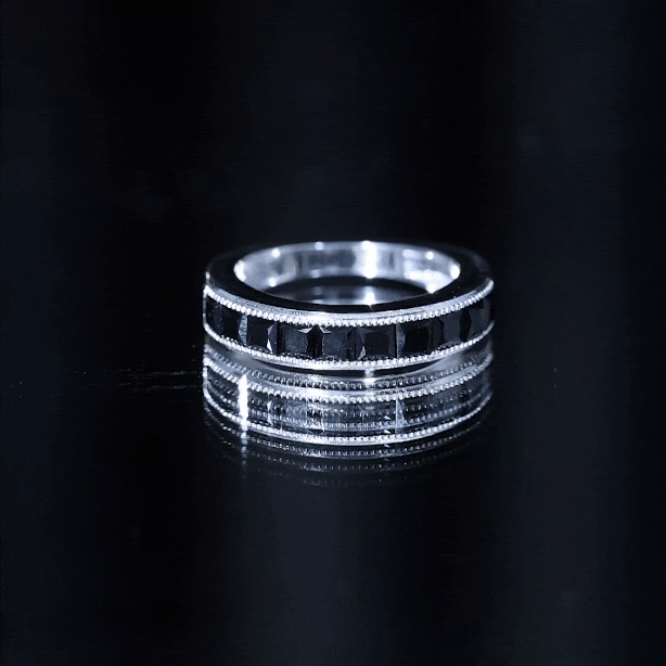 Princess Cut Black Spinel Half Eternity Band Ring with Beaded Detailing