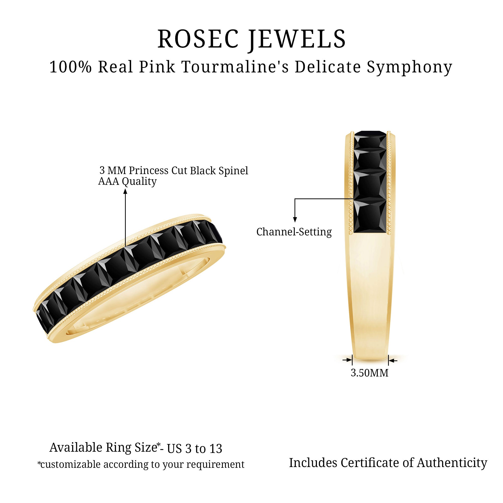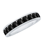Enhance your elegance with this timeless Eternity Band Ring adorned with Princess Cut Black Spinel gems, expertly cradled in a graceful Channel Setting. This Half Eternity Band Ring featuring Black Spinel exudes simplicity and sophistication.